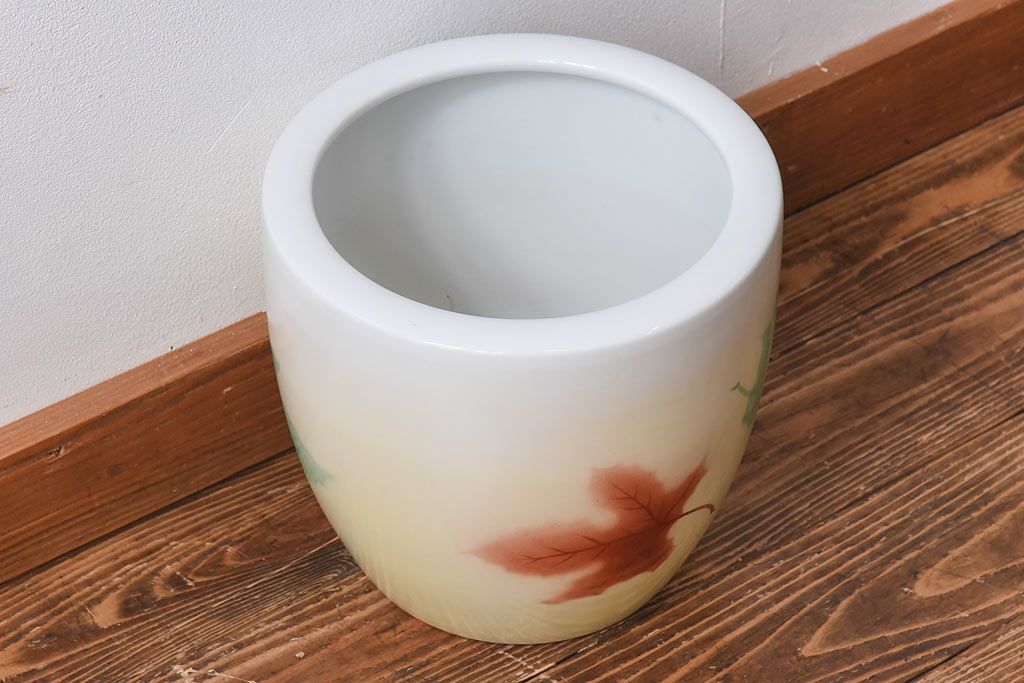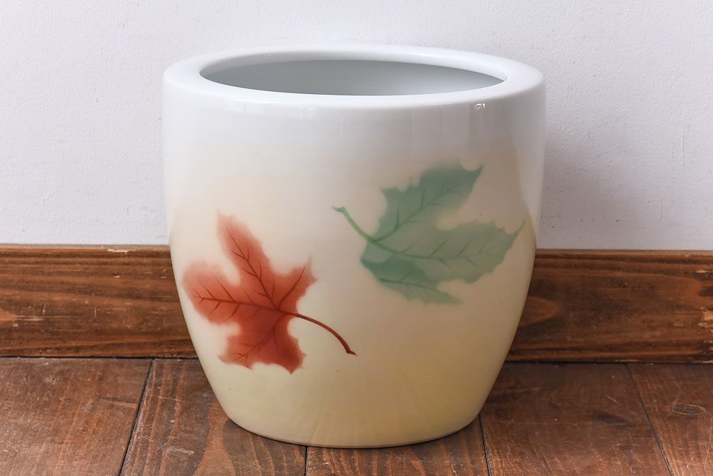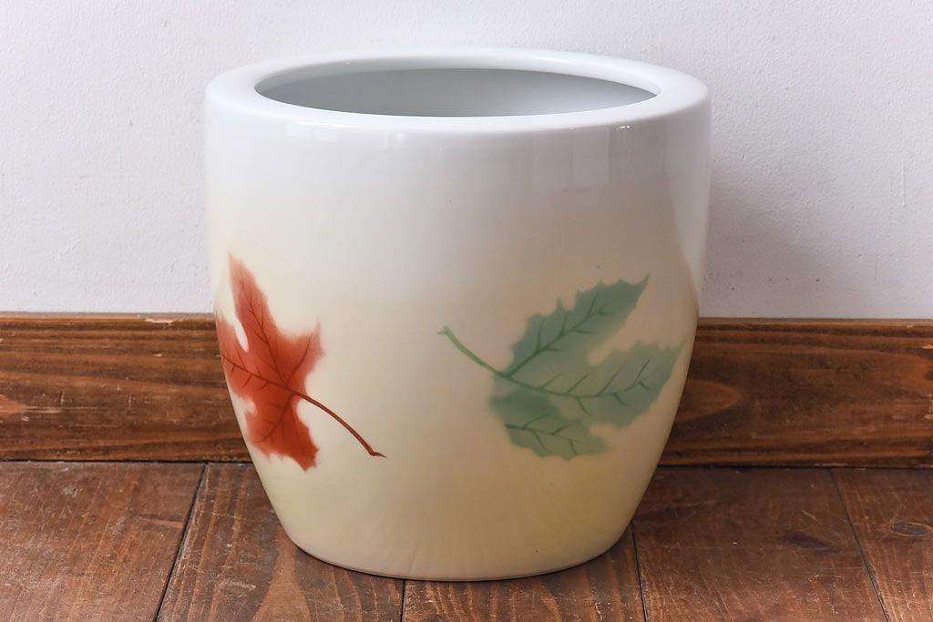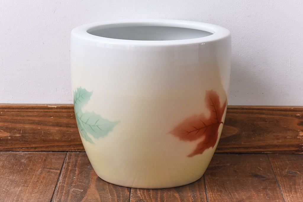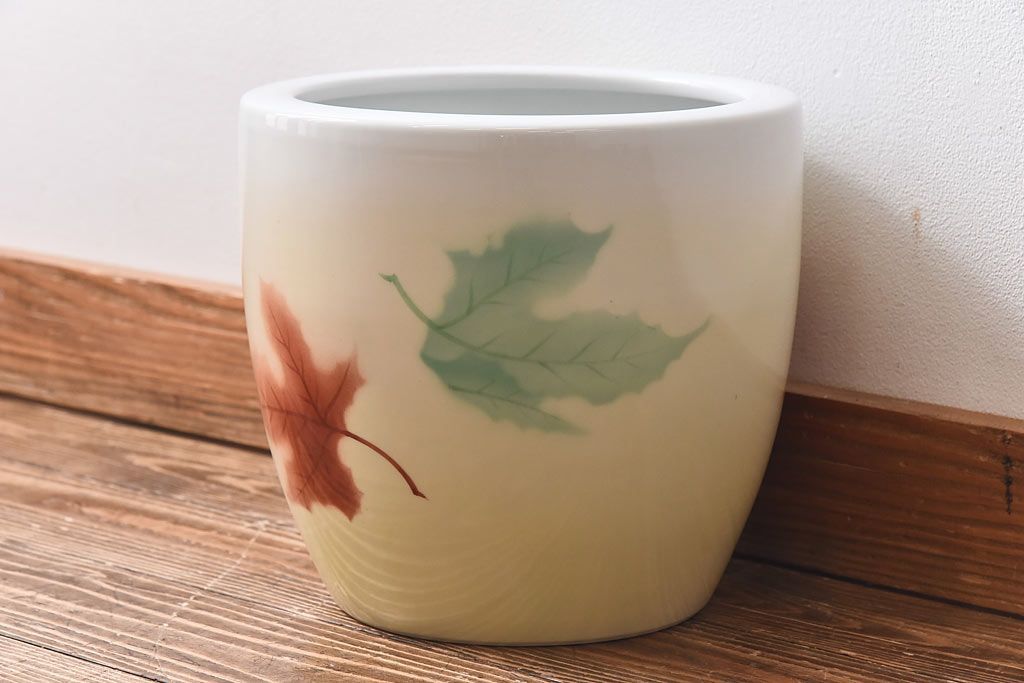 アンティーク雑貨 ノリタケ・則武(日陶) 楓の図 シンプルなデザインの火鉢(手あぶり、鉢カバー)
