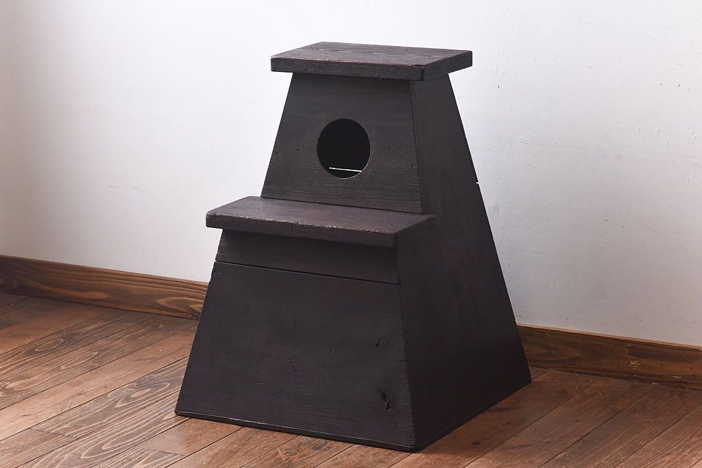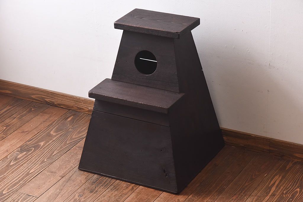 和製アンティーク 古い木が渋さを感じさせる大正昭和期の踏み台(花台)です。