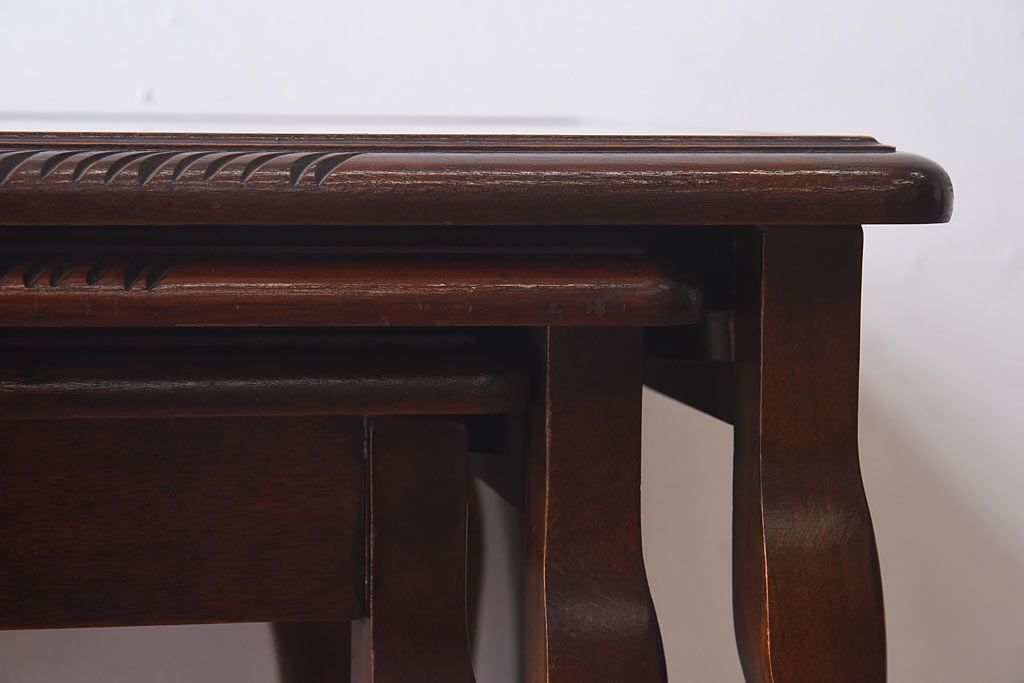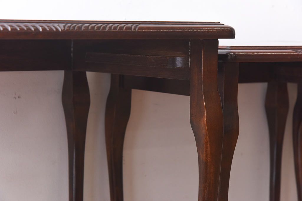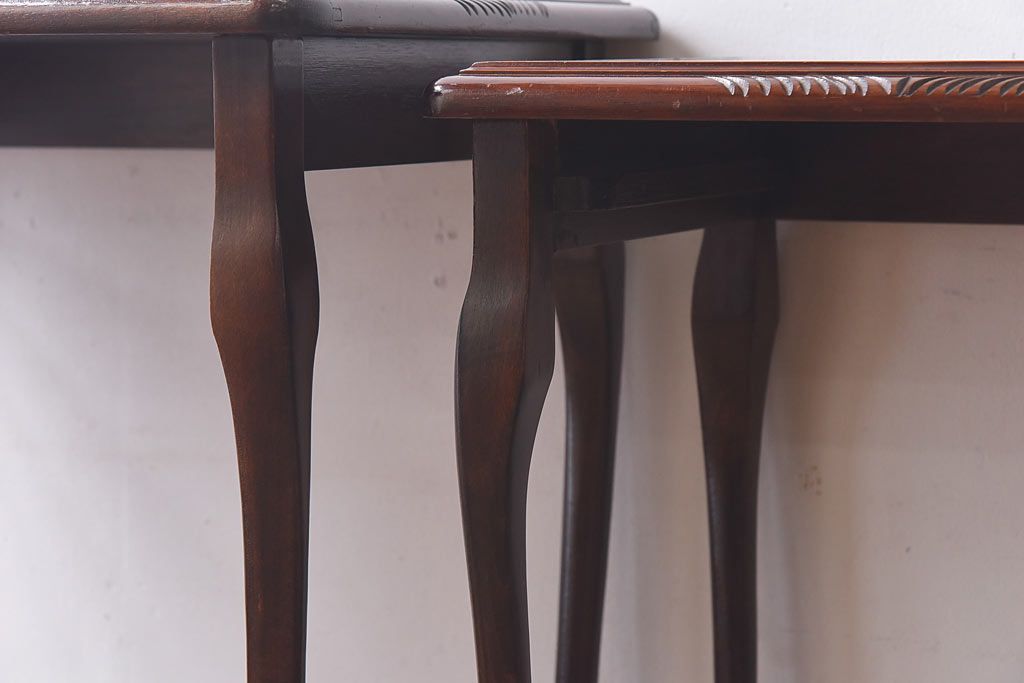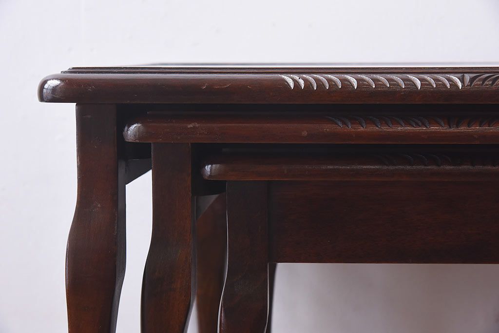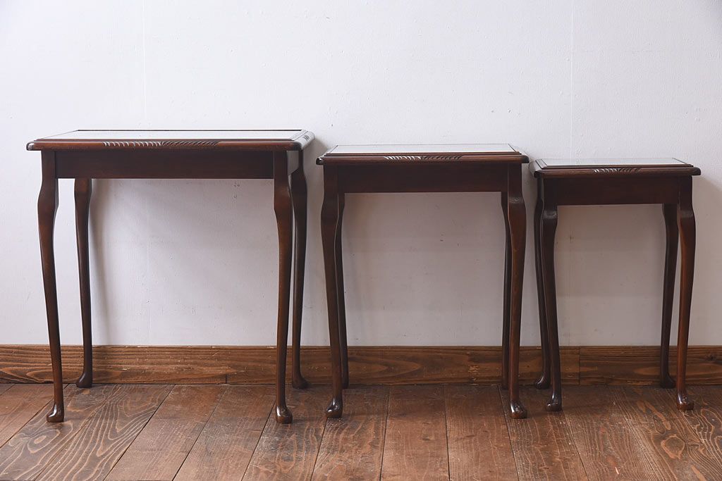 ラフジュ工房> テーブル> ネストテーブル > アンティーク雑貨 イギリス家具 高級感あるレザートップのネストテーブル(入れ子式テーブル、サイドテーブル、コーヒーテーブル、花台)(1)
