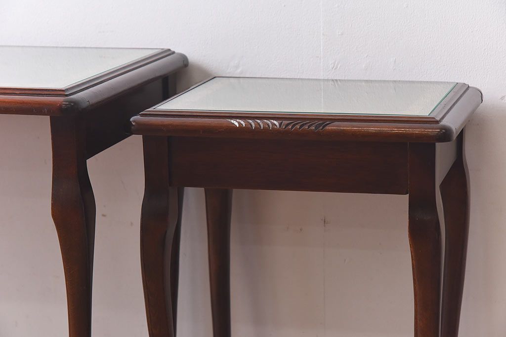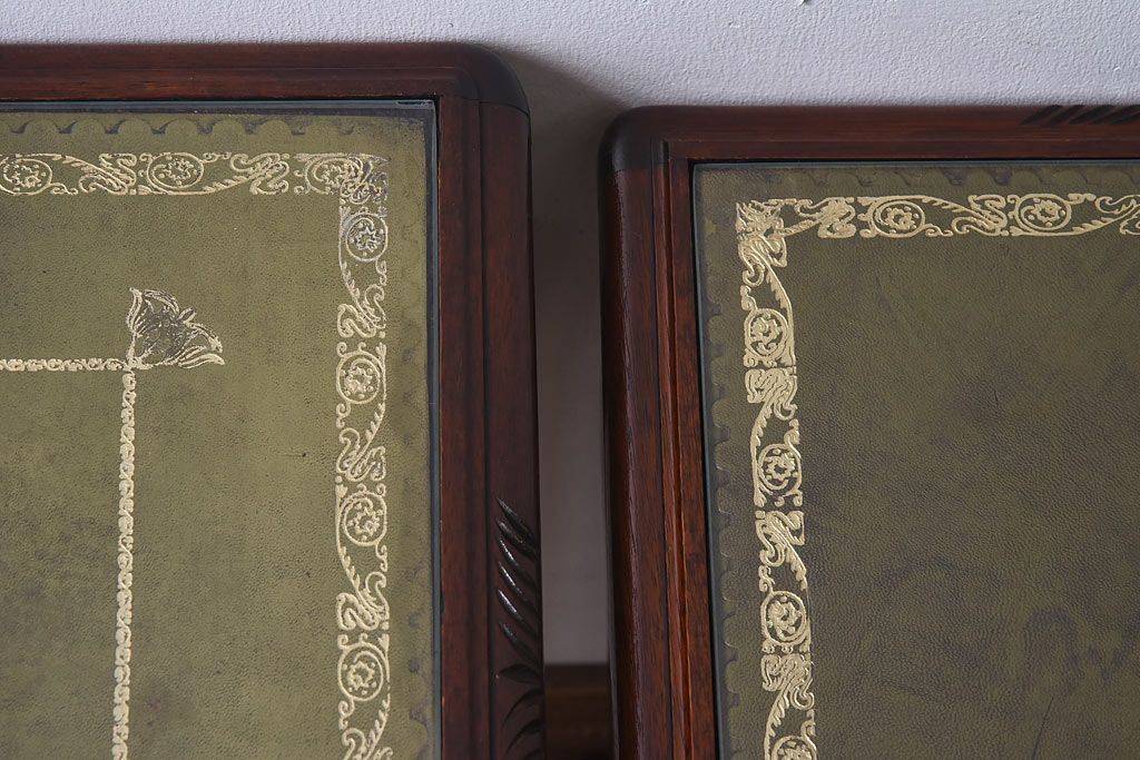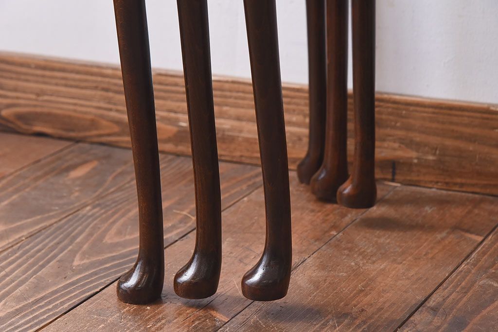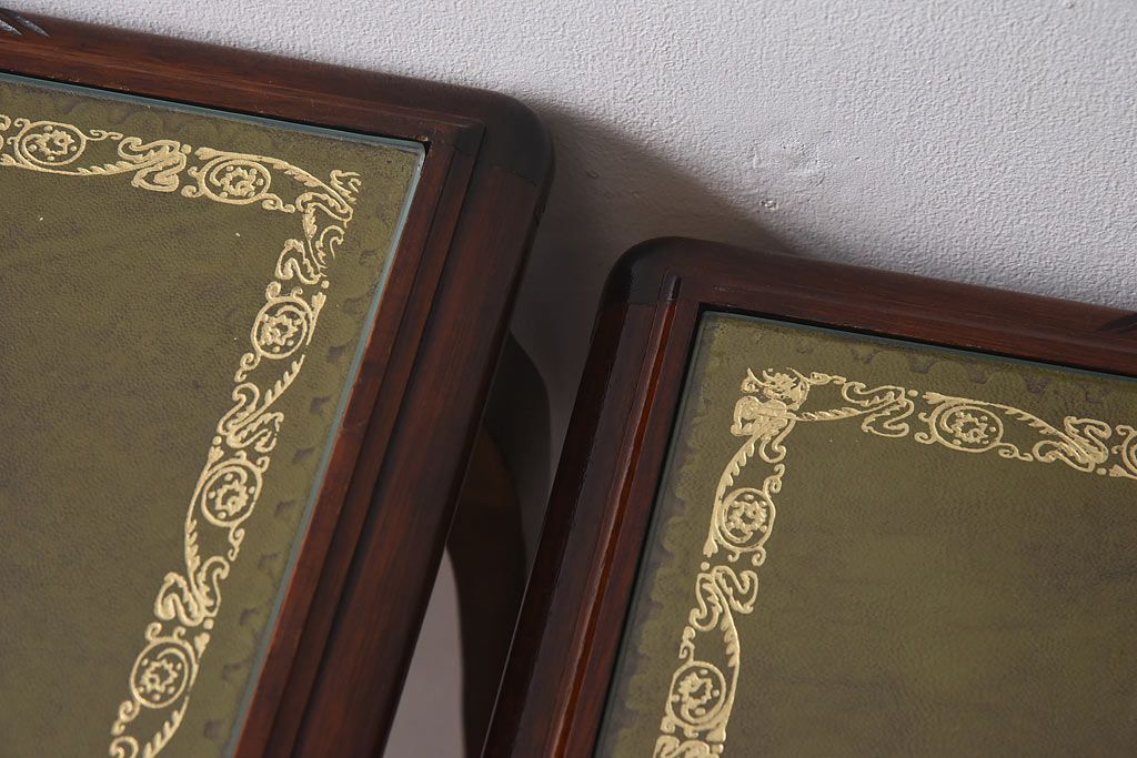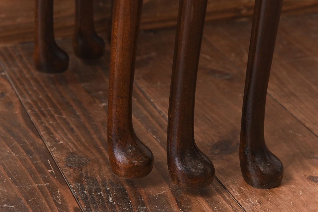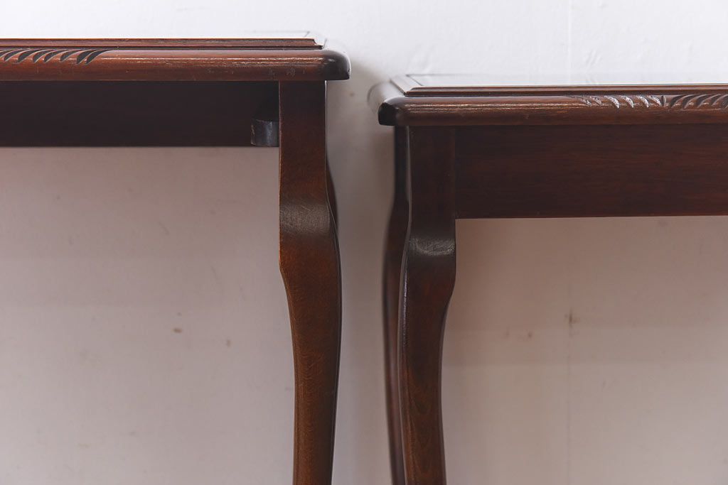 ラフジュ工房> 花台・飾り台 > アンティーク雑貨 イギリス家具 高級感あるレザートップのネストテーブル(入れ子式テーブル、サイドテーブル、コーヒーテーブル、花台)(1)