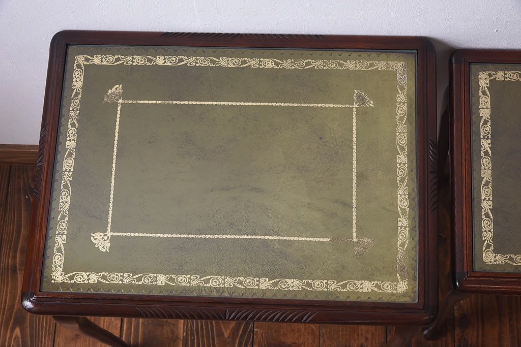 ラフジュ工房> テーブル> サイドテーブル > アンティーク雑貨 イギリス家具 高級感あるレザートップのネストテーブル(入れ子式テーブル、サイドテーブル、コーヒーテーブル、花台)(1)