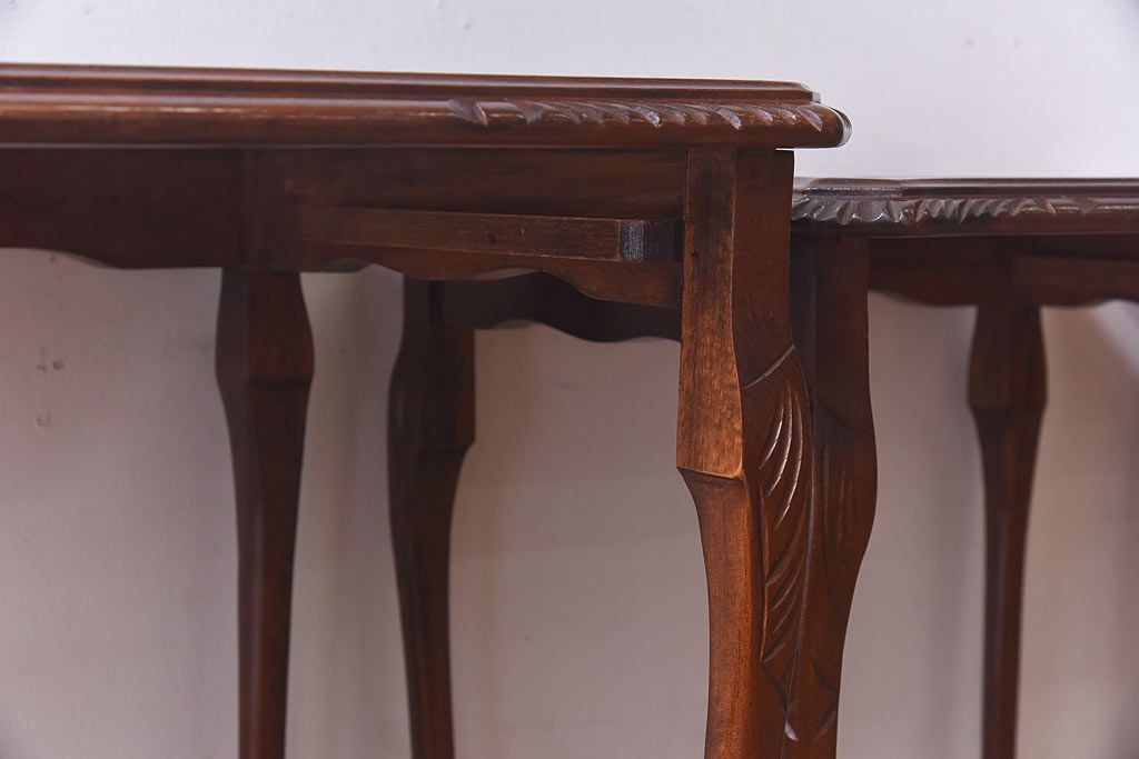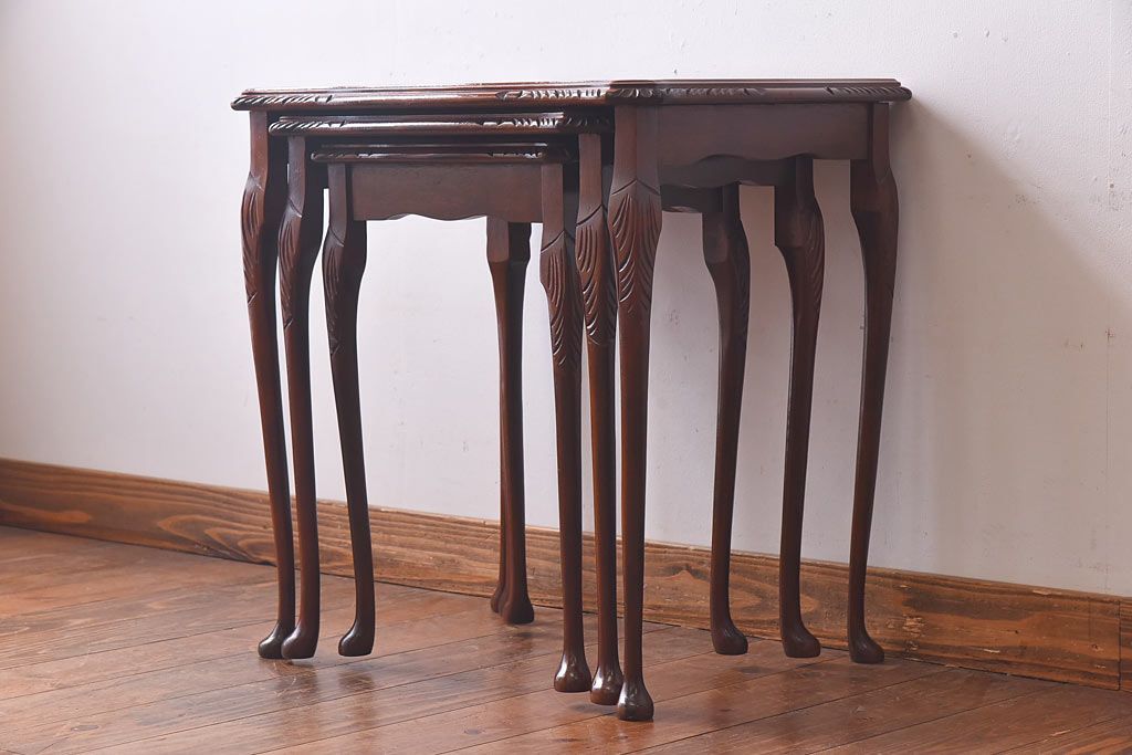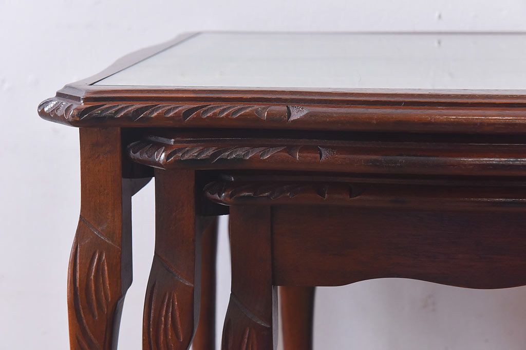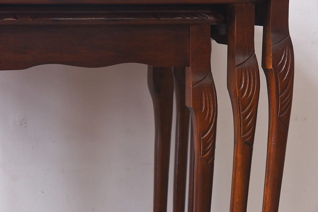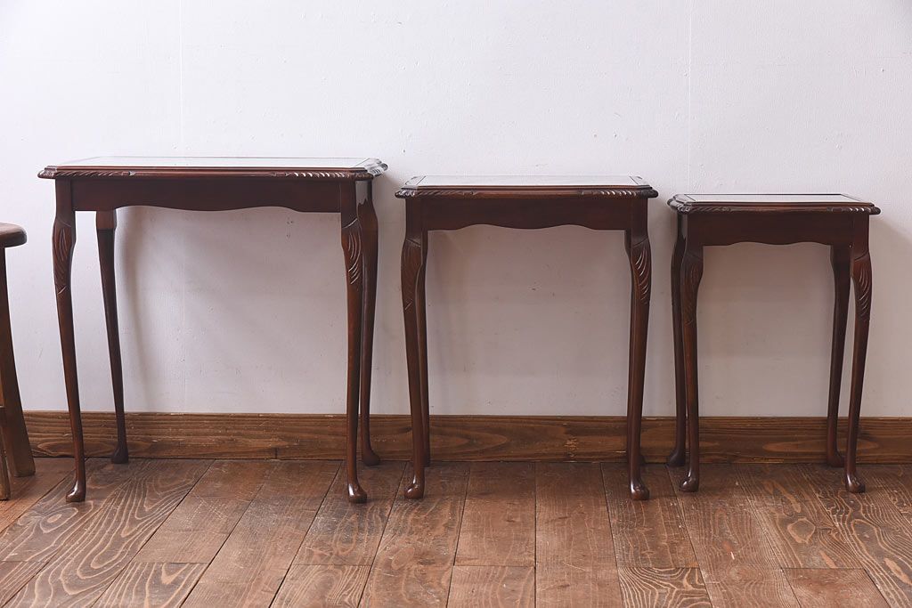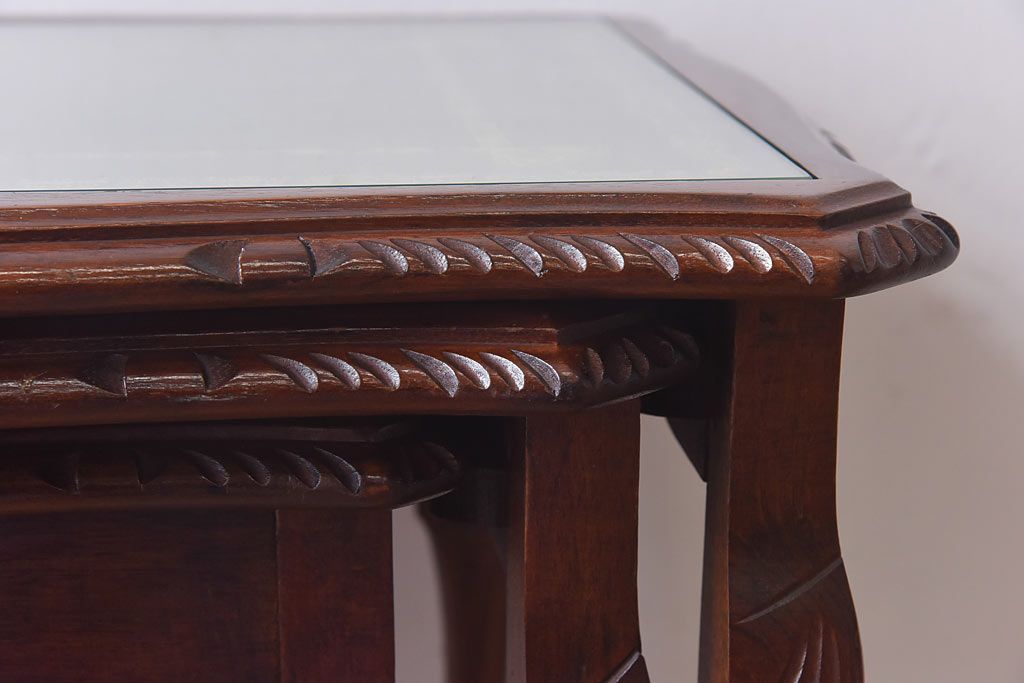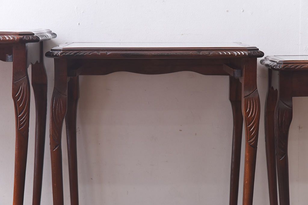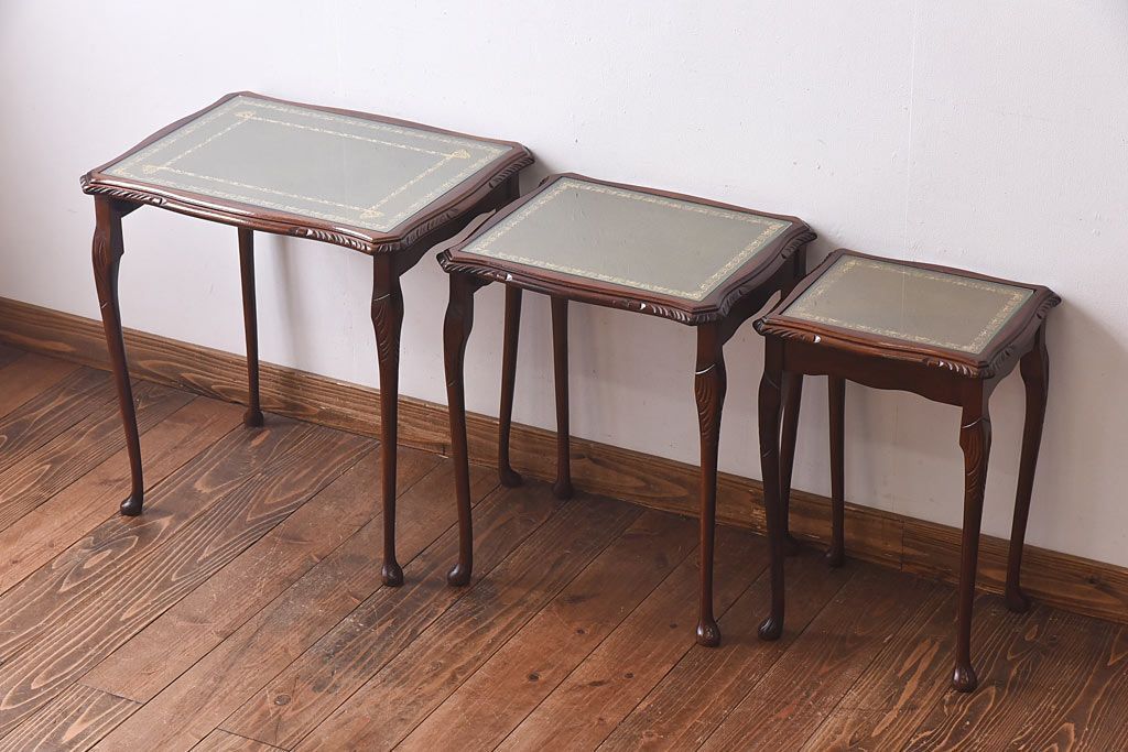 ラフジュ工房> テーブル> ネストテーブル > アンティーク雑貨 イギリス家具 高級感あるレザートップのネストテーブル(入れ子式テーブル、サイドテーブル、コーヒーテーブル、花台)(2)