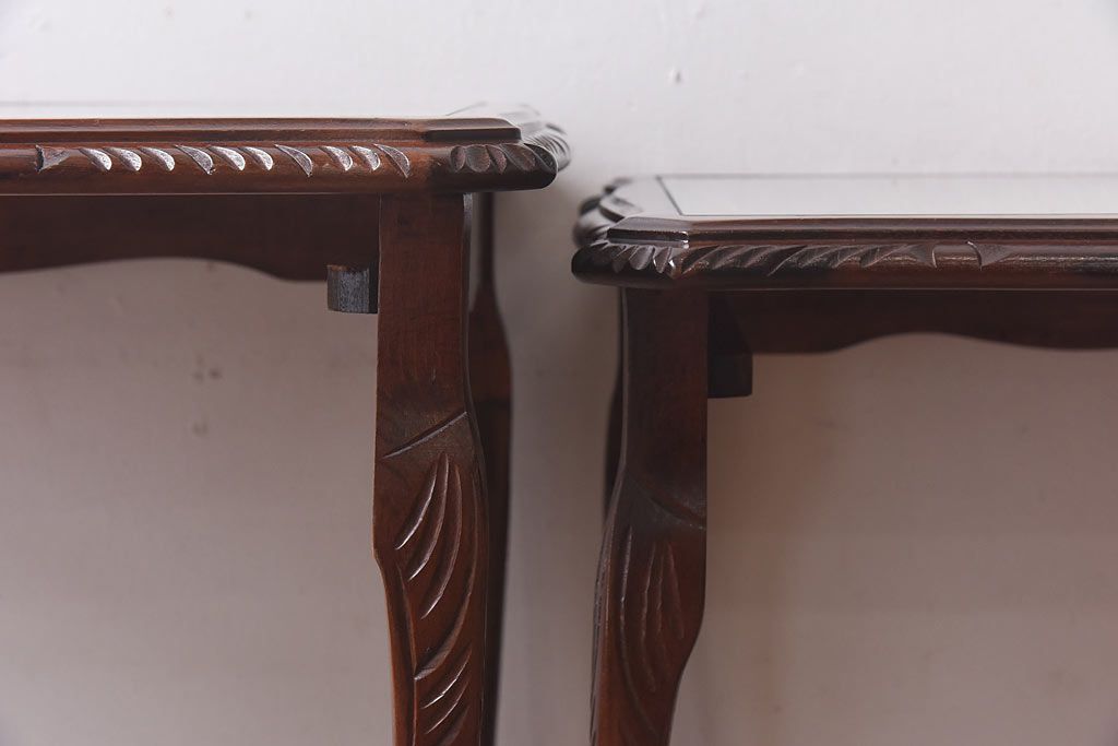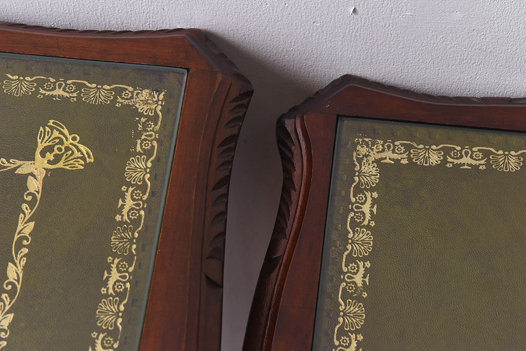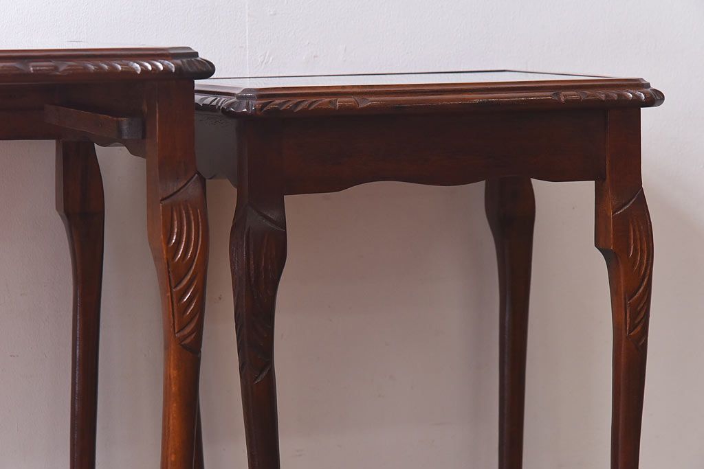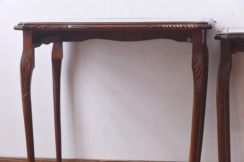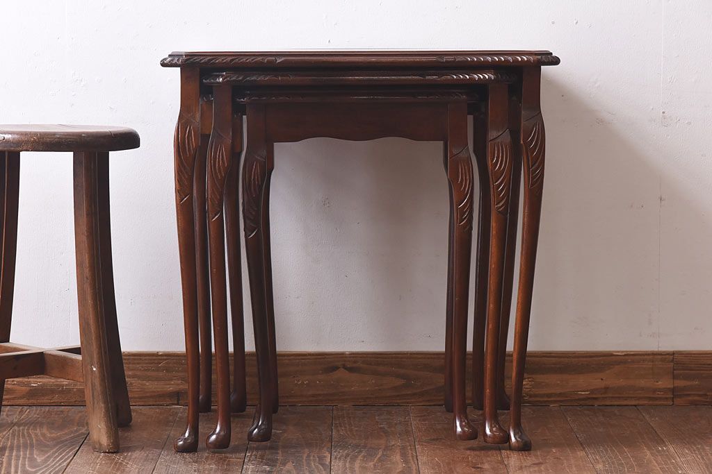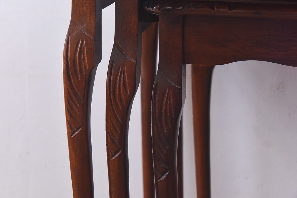 ラフジュ工房> 花台・飾り台 > アンティーク雑貨 イギリス家具 高級感あるレザートップのネストテーブル(入れ子式テーブル、サイドテーブル、コーヒーテーブル、花台)(2)