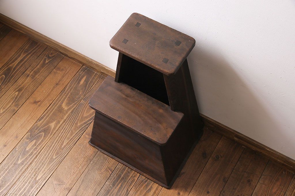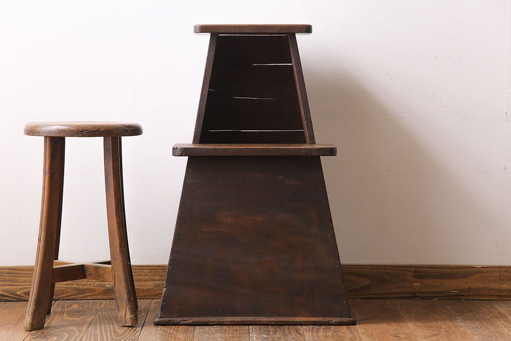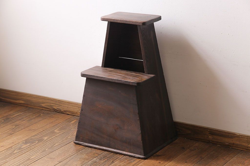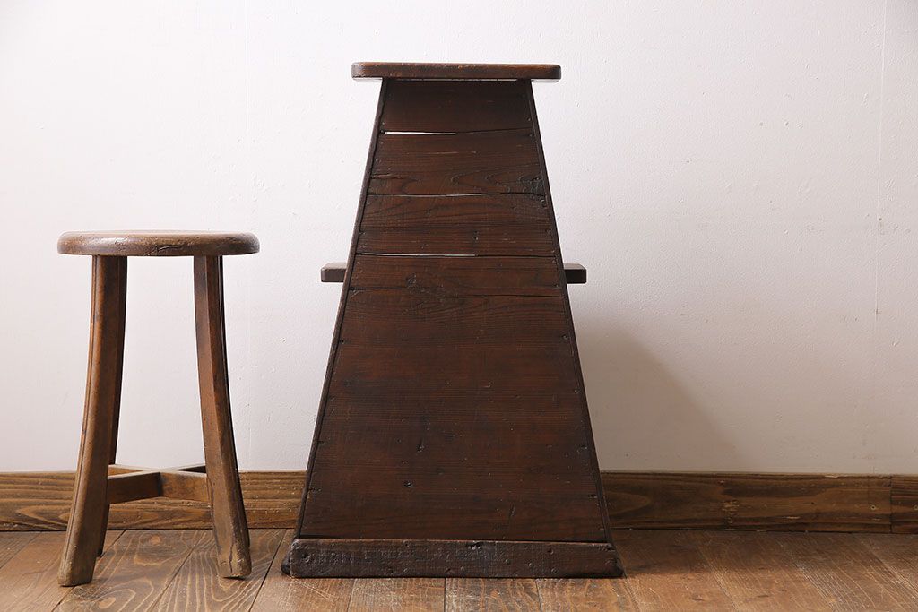 アンティーク雑貨 和製アンティーク 古い木が味わい深いシンプルな踏み台(花台)