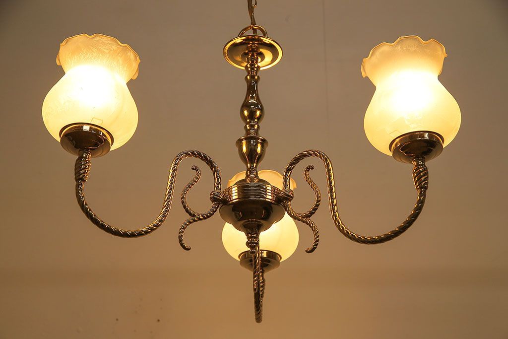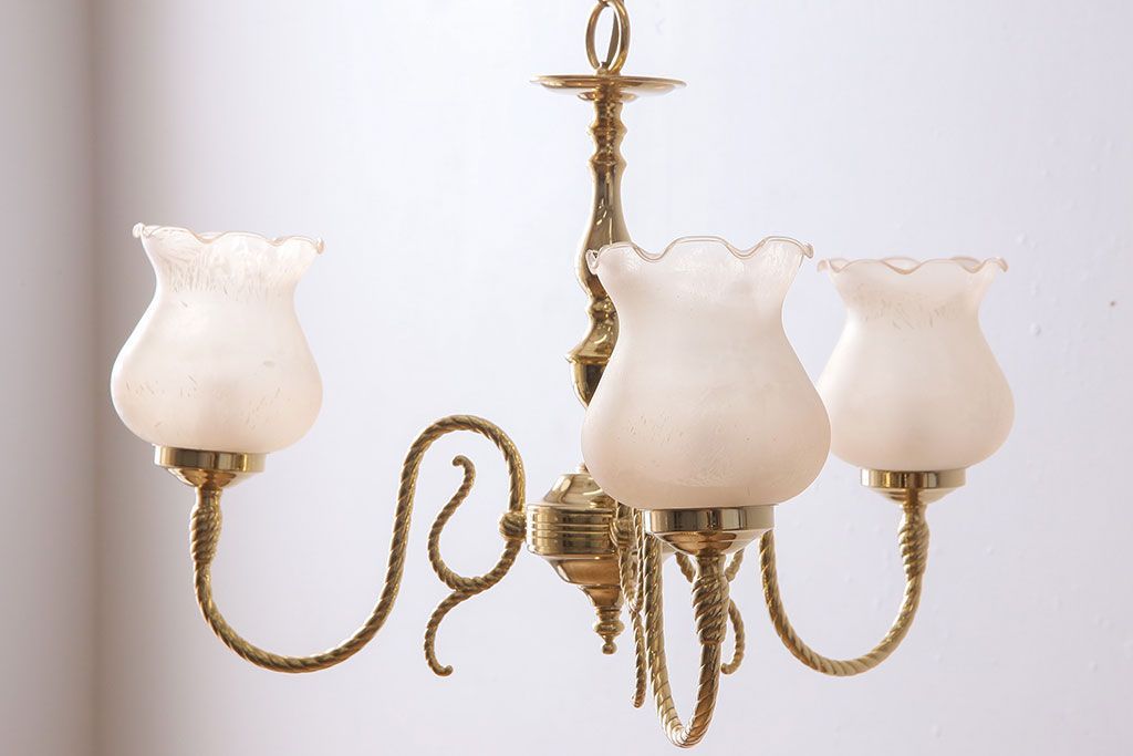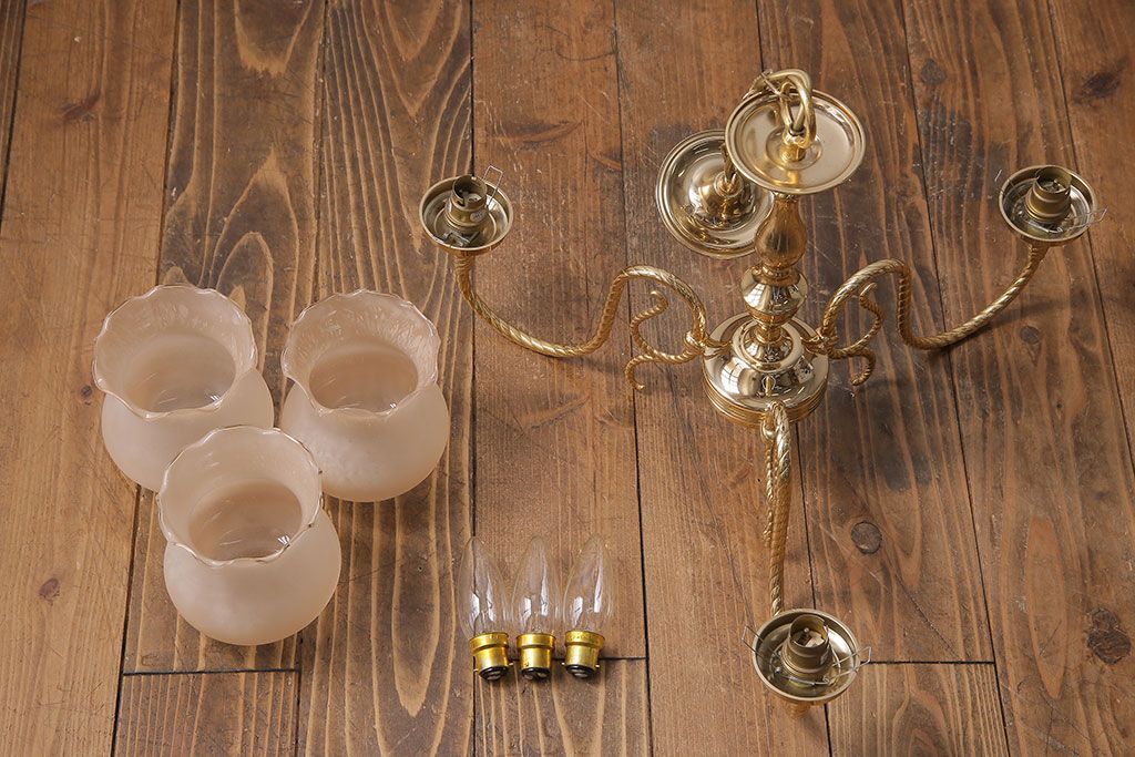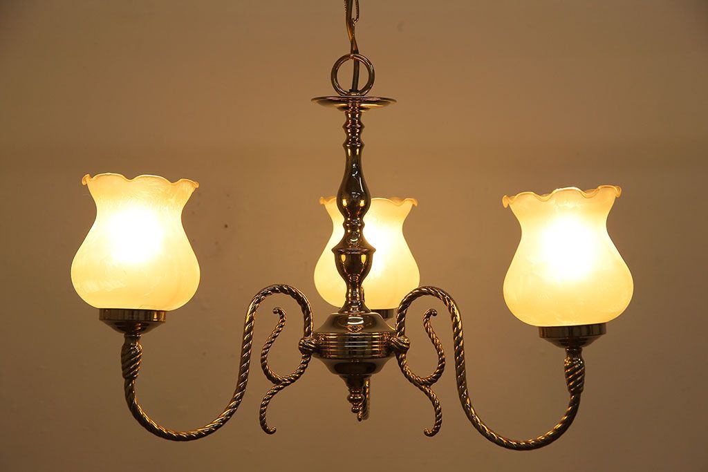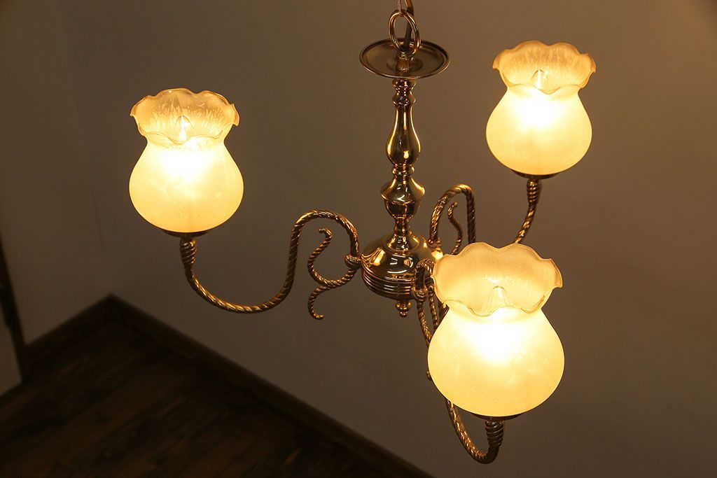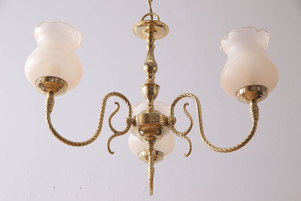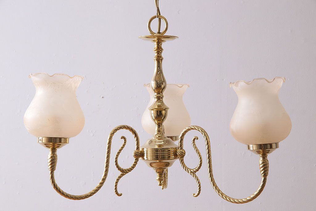 イギリスビンテージ つぼみのようなガラスシェードが可愛らしい天井照明(シャンデリア、ランプ)