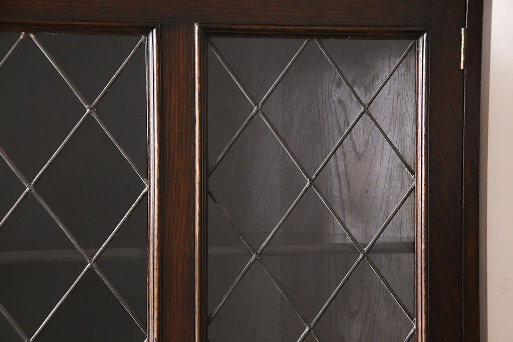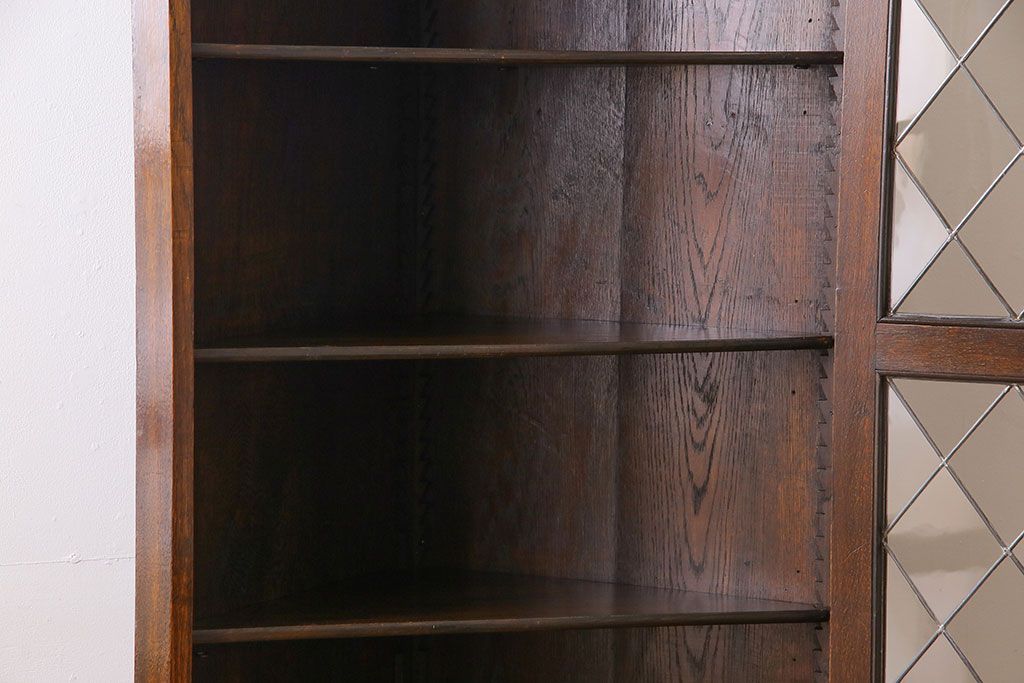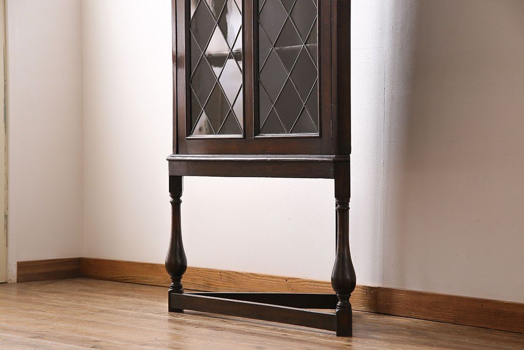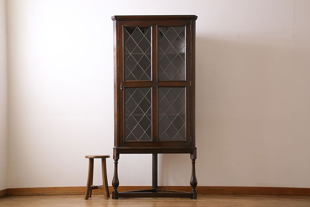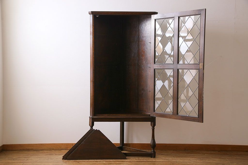 アンティーク家具 イギリスアンティーク ステンドグラスの大振りなコーナーキャビネット(収納棚、ブックケース、本棚)