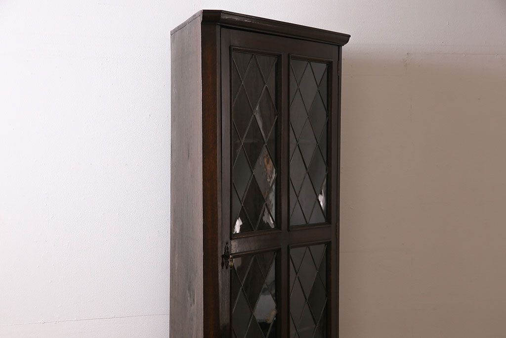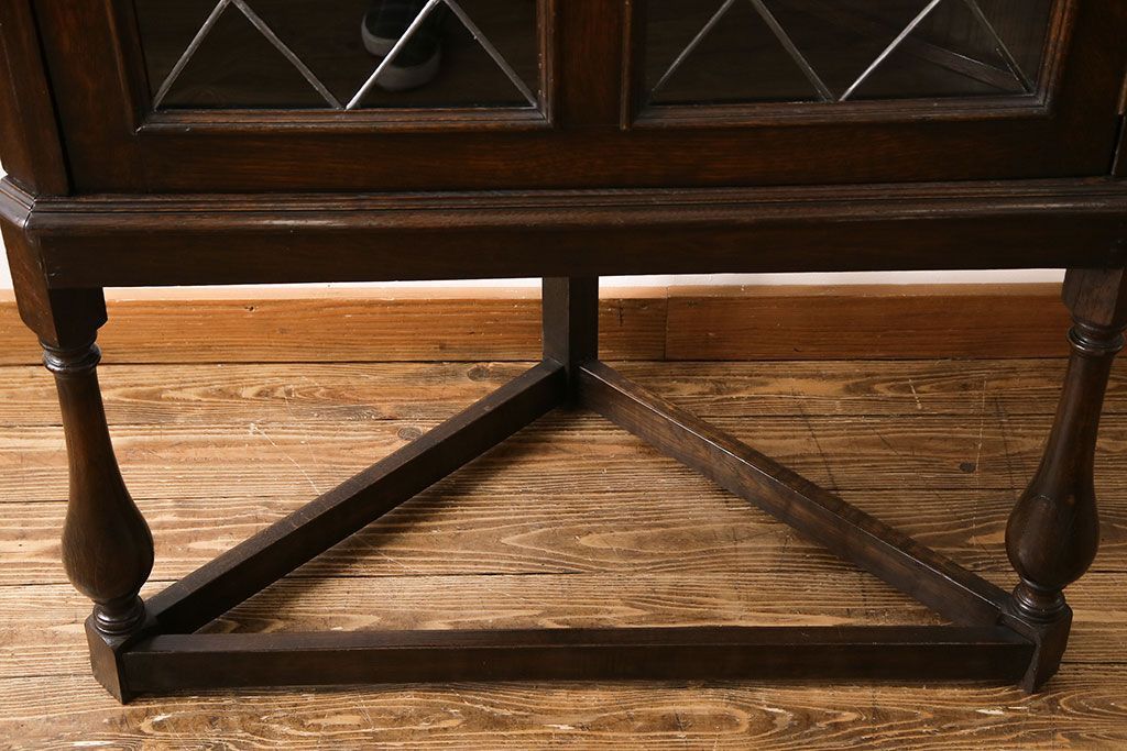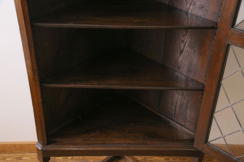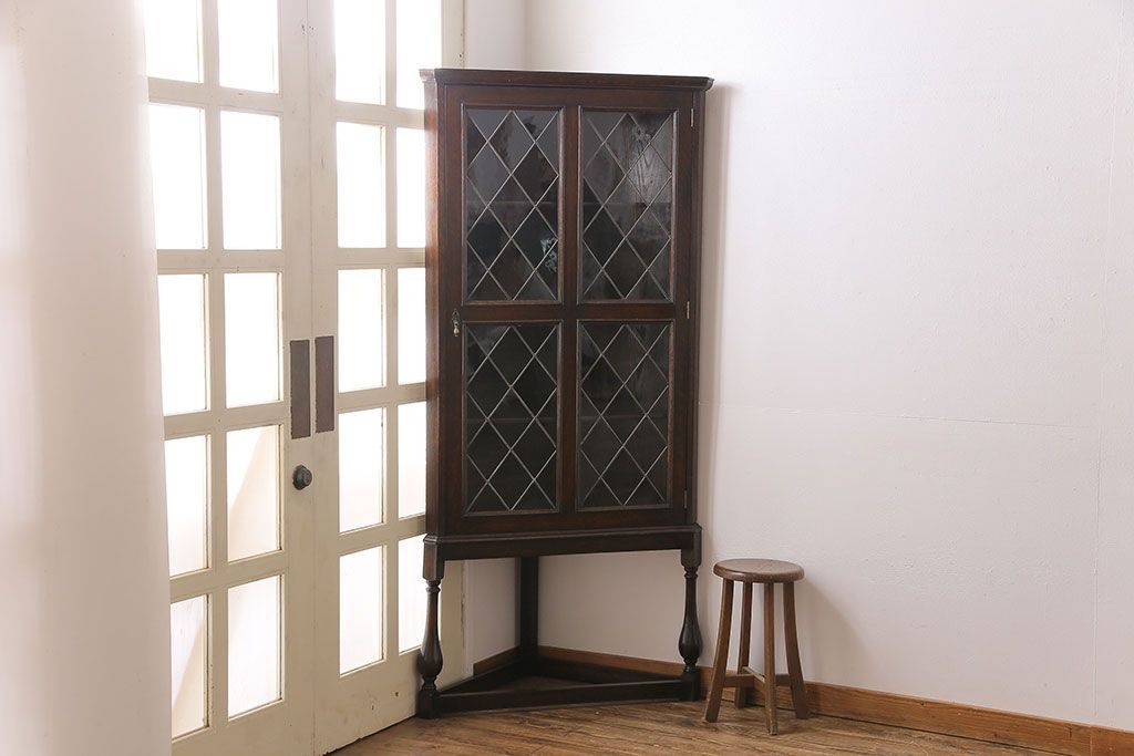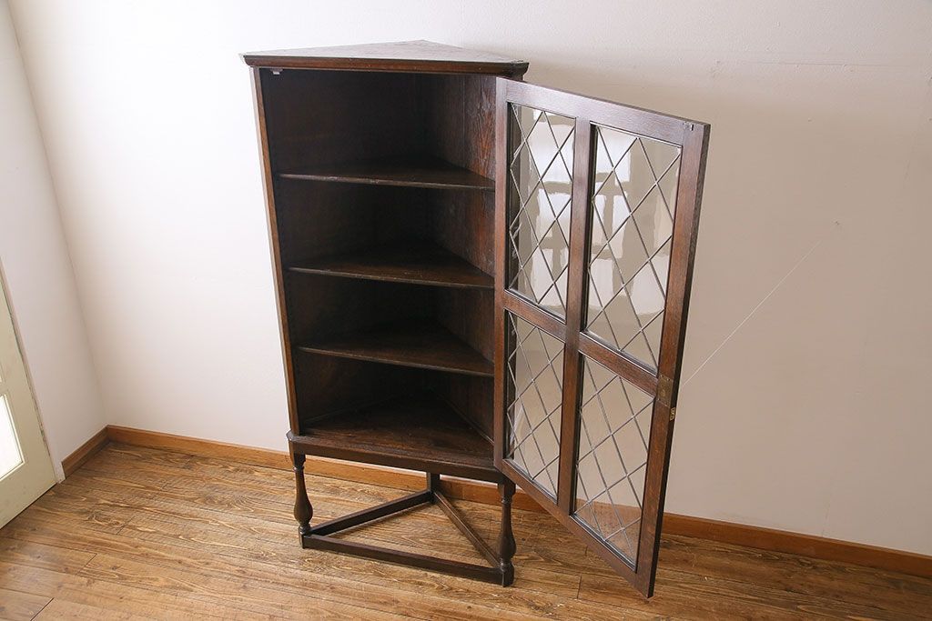 ラフジュ工房> キャビネット・戸棚> コーナーキャビネット > アンティーク家具 イギリスアンティーク ステンドグラスの大振りなコーナーキャビネット(収納棚、ブックケース、本棚)