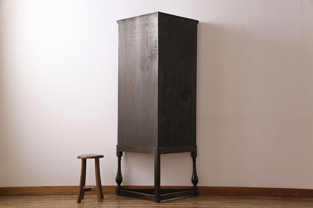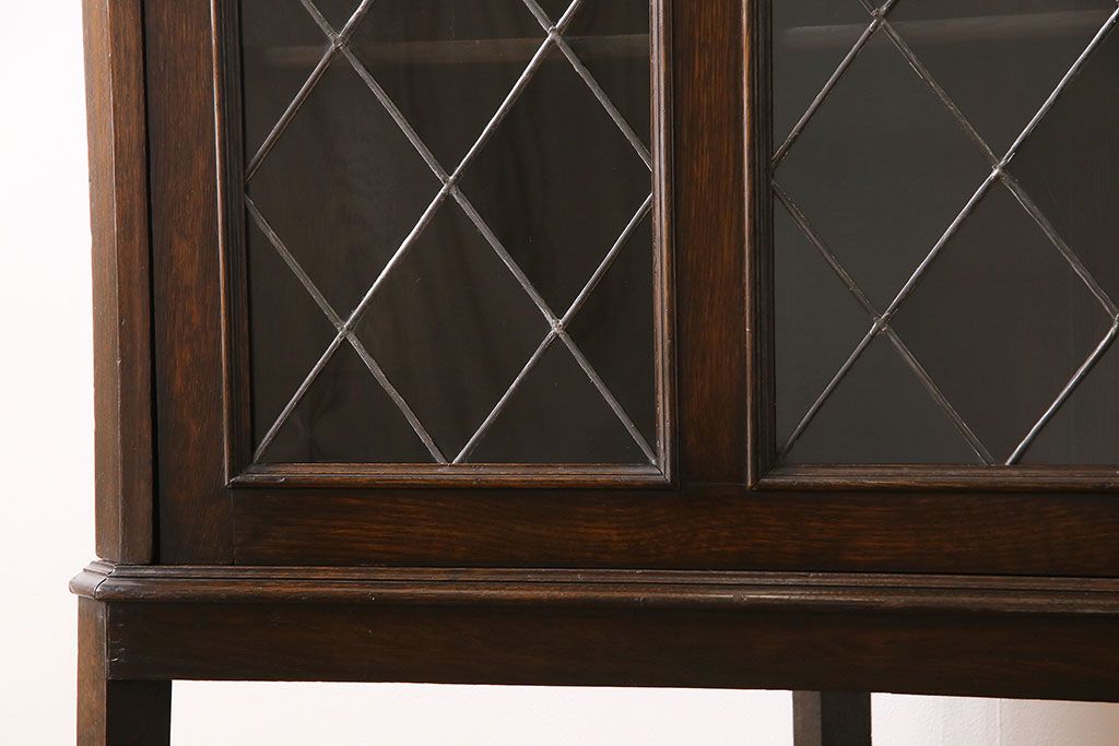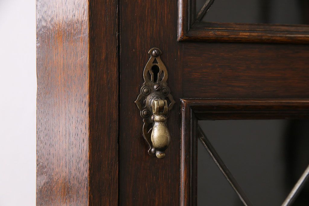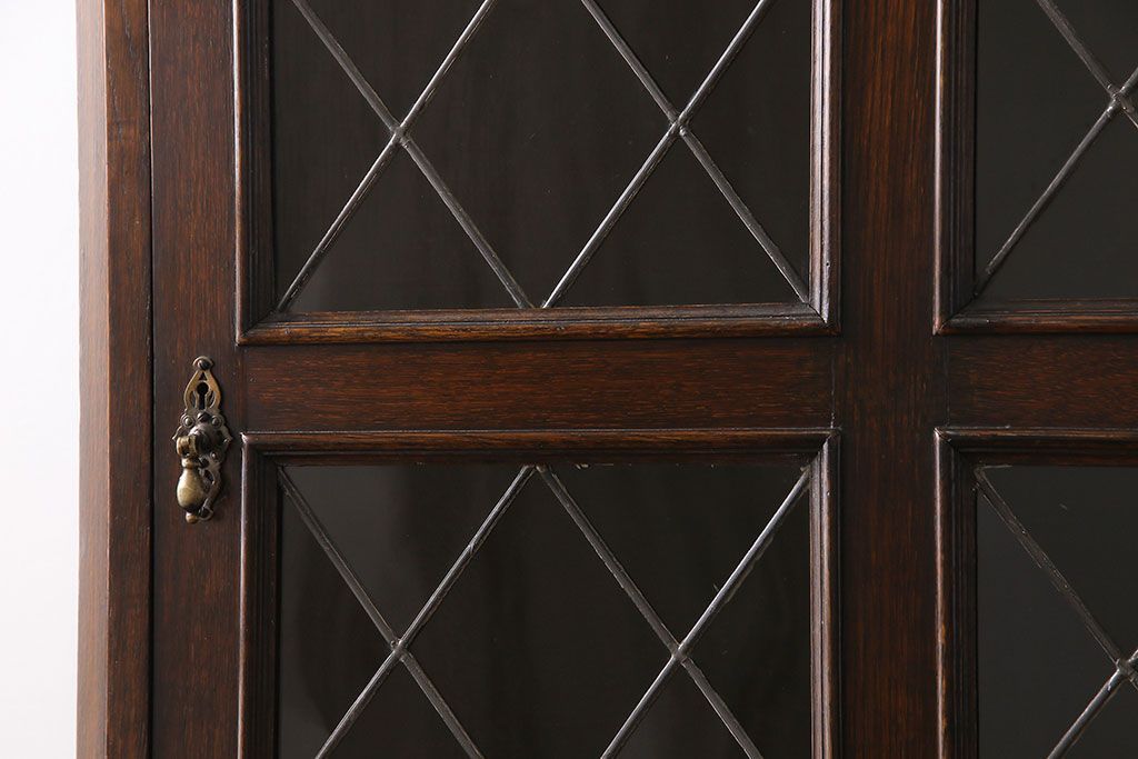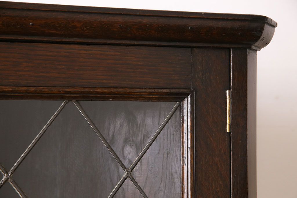 ラフジュ工房> キャビネット・戸棚> コーナーキャビネット > アンティーク家具 イギリスアンティーク ステンドグラスの大振りなコーナーキャビネット(収納棚、ブックケース、本棚)