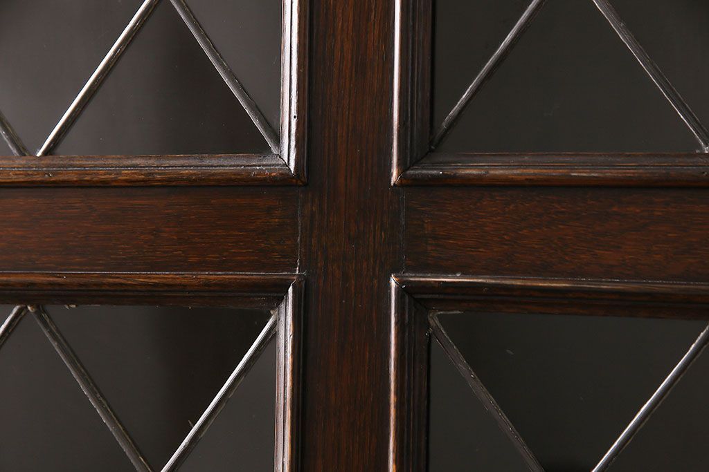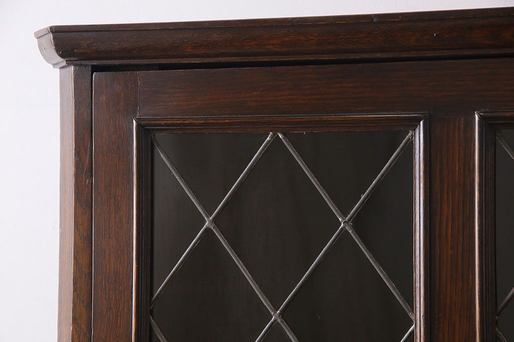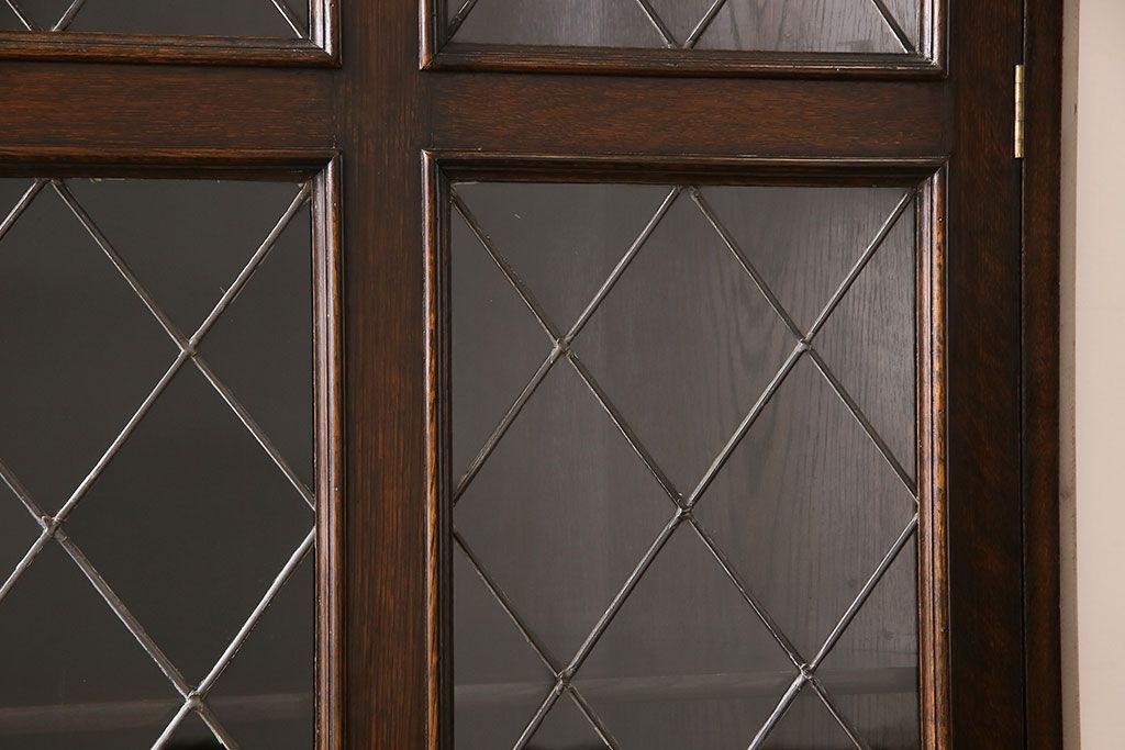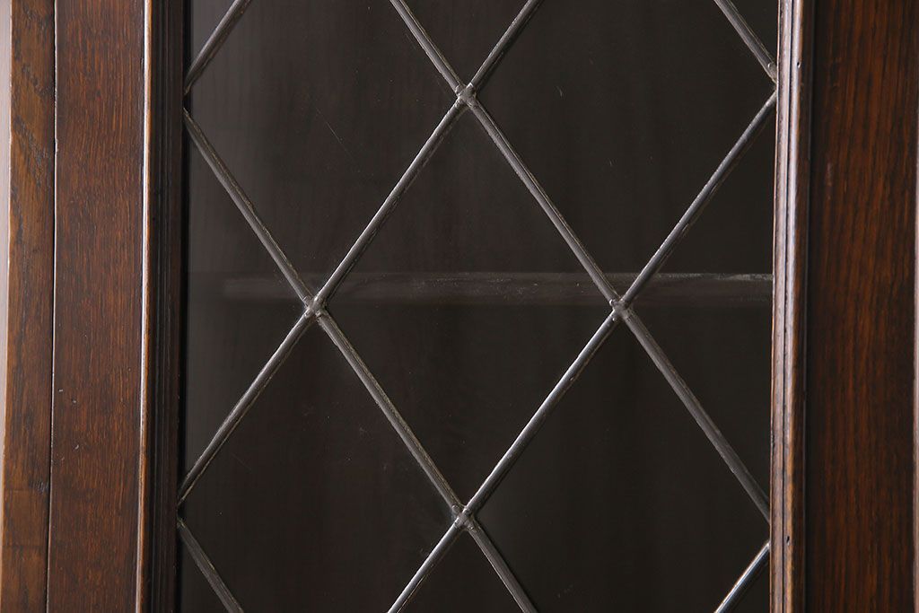 ラフジュ工房> ステンドグラス > アンティーク家具 イギリスアンティーク ステンドグラスの大振りなコーナーキャビネット(収納棚、ブックケース、本棚)