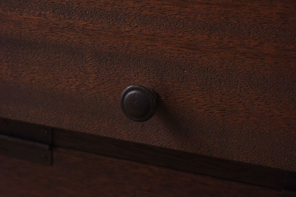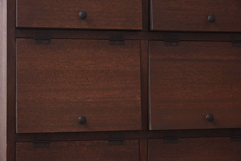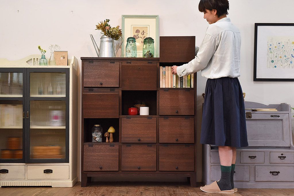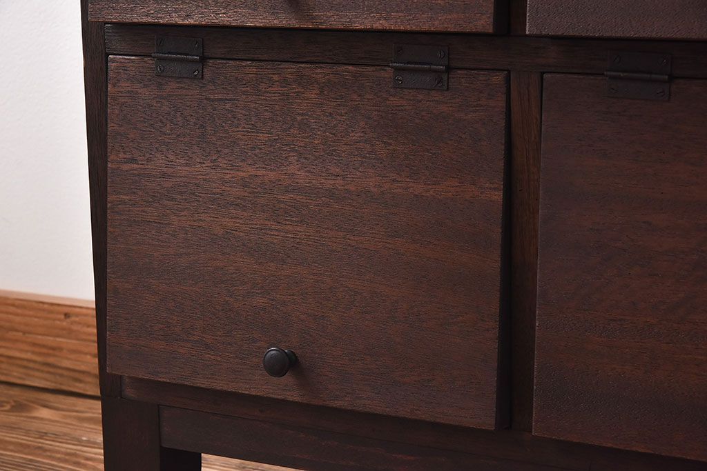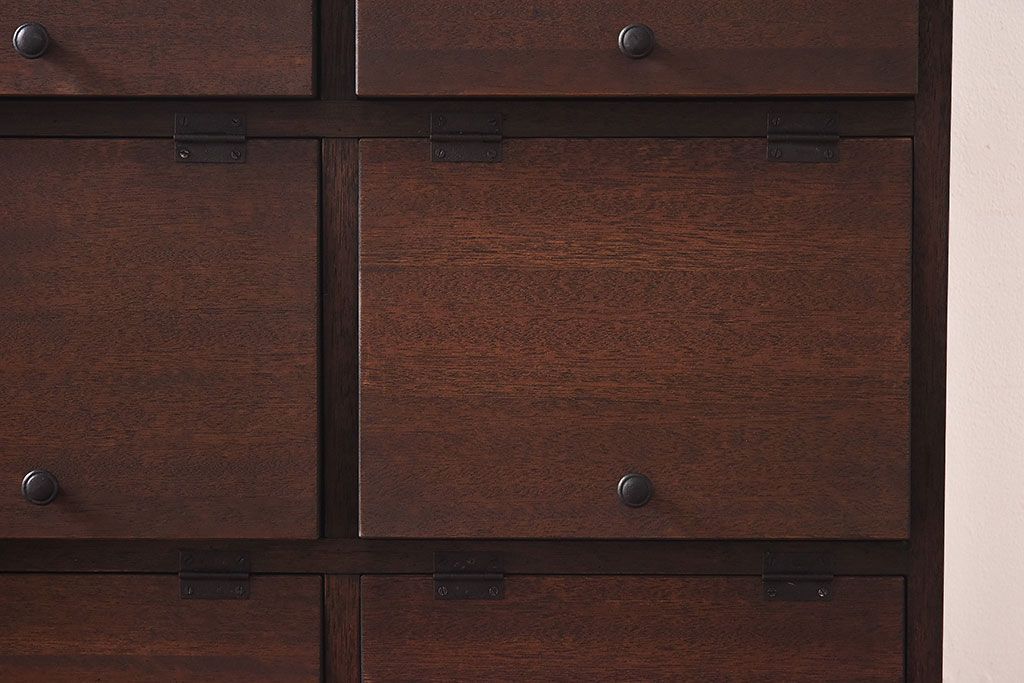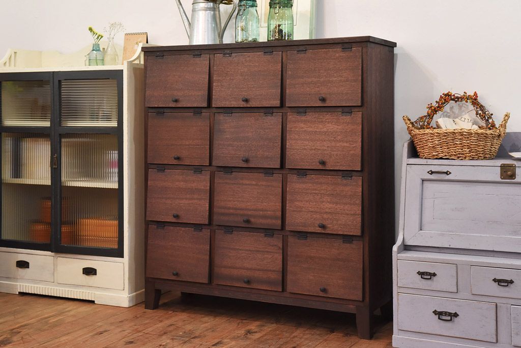 ラフジュ工房オリジナル 古材使用 4×3マス 丸い取っ手が愛らしいパタパタ扉付き収納棚(キャビネット、下駄箱、ロッカー)