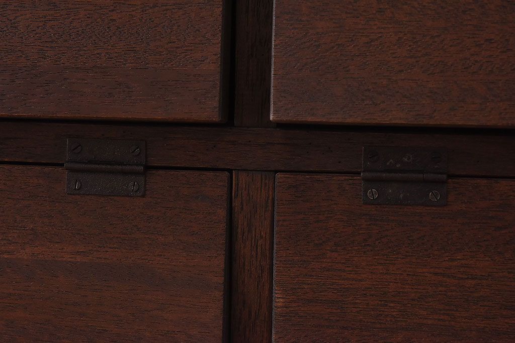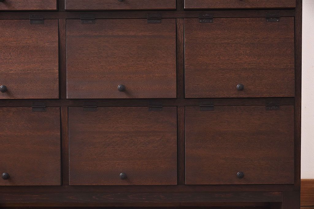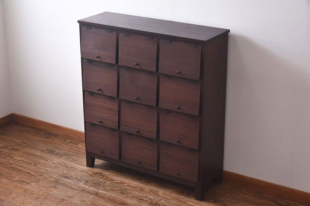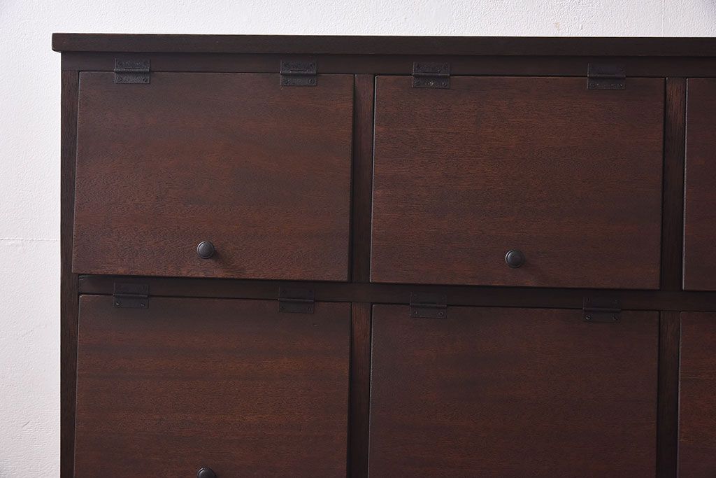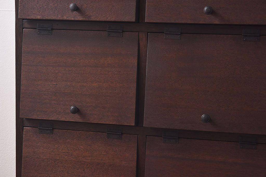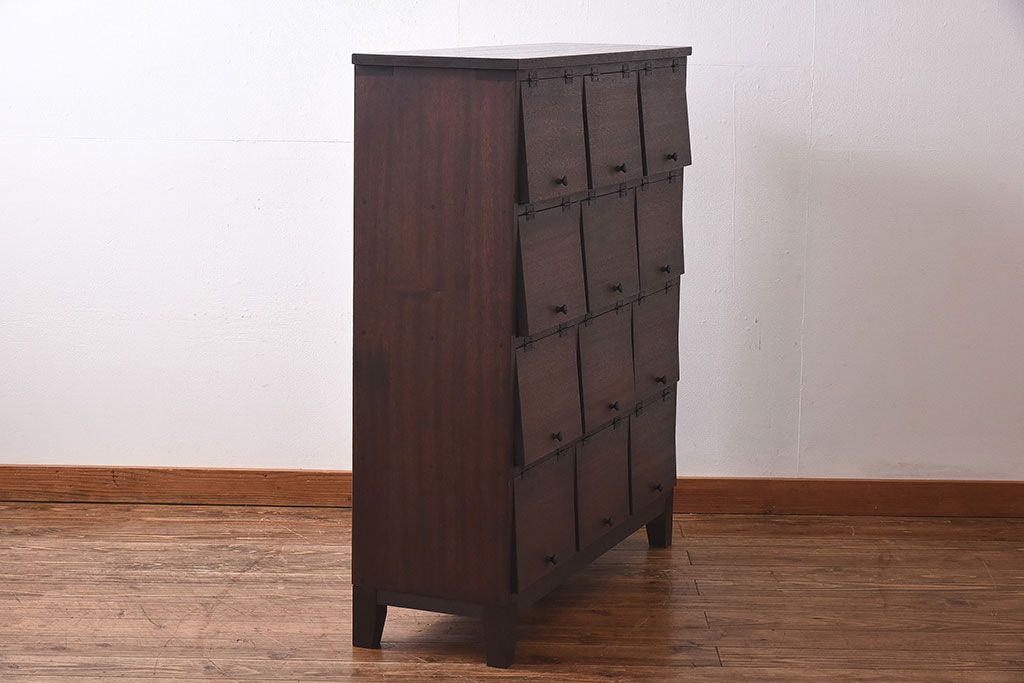 ラフジュ工房オリジナル 古材使用 4×3マス 丸い取っ手が愛らしいパタパタ扉付き収納棚(キャビネット、下駄箱、ロッカー)です。