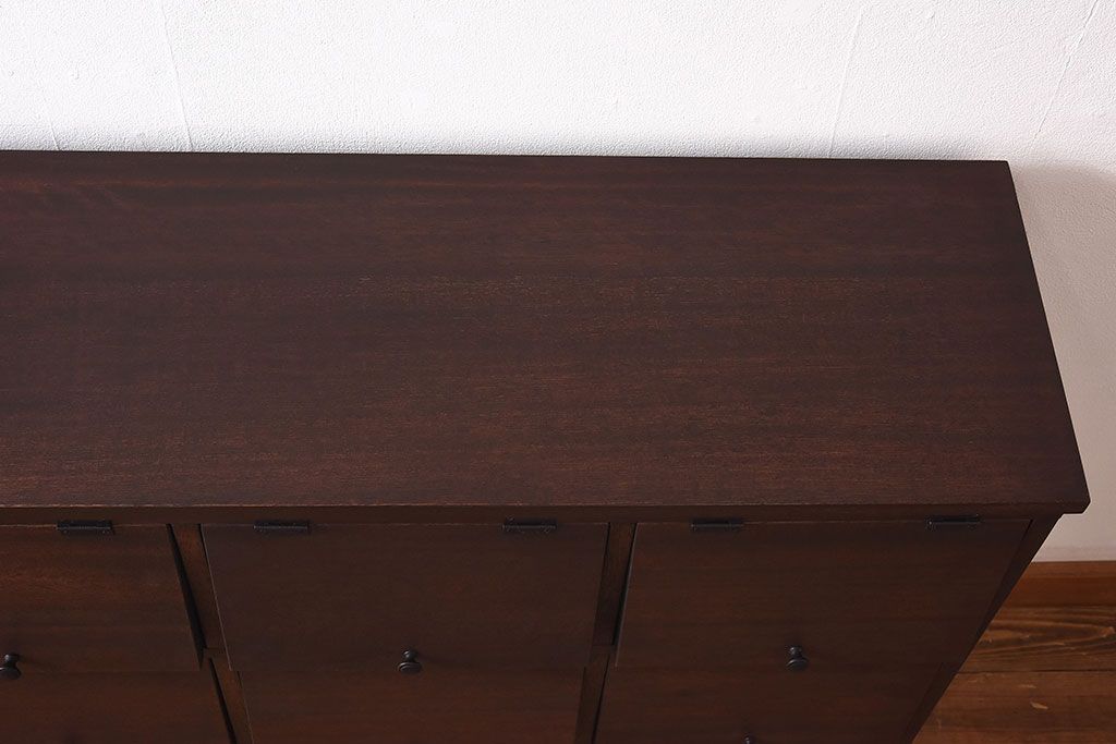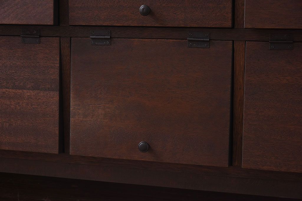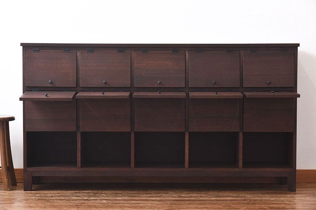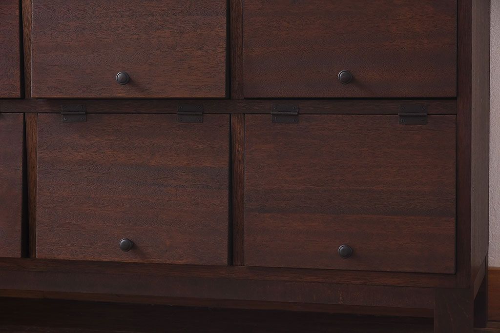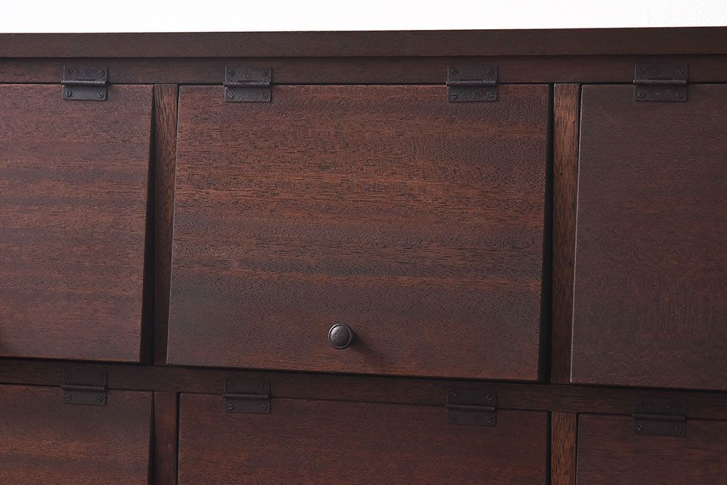 ラフジュ工房> キャビネット・戸棚> サイドキャビネット > ラフジュ工房オリジナル 3×5マス ラワン古材のパタパタ扉付き横型・収納棚(キャビネット、下駄箱、ロッカー)