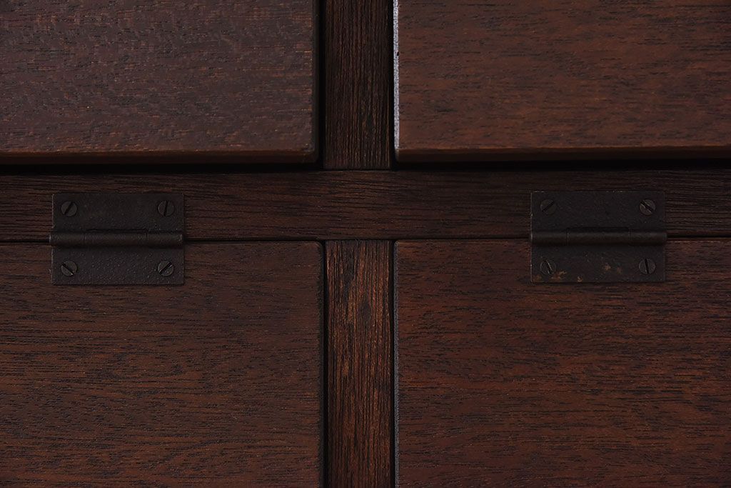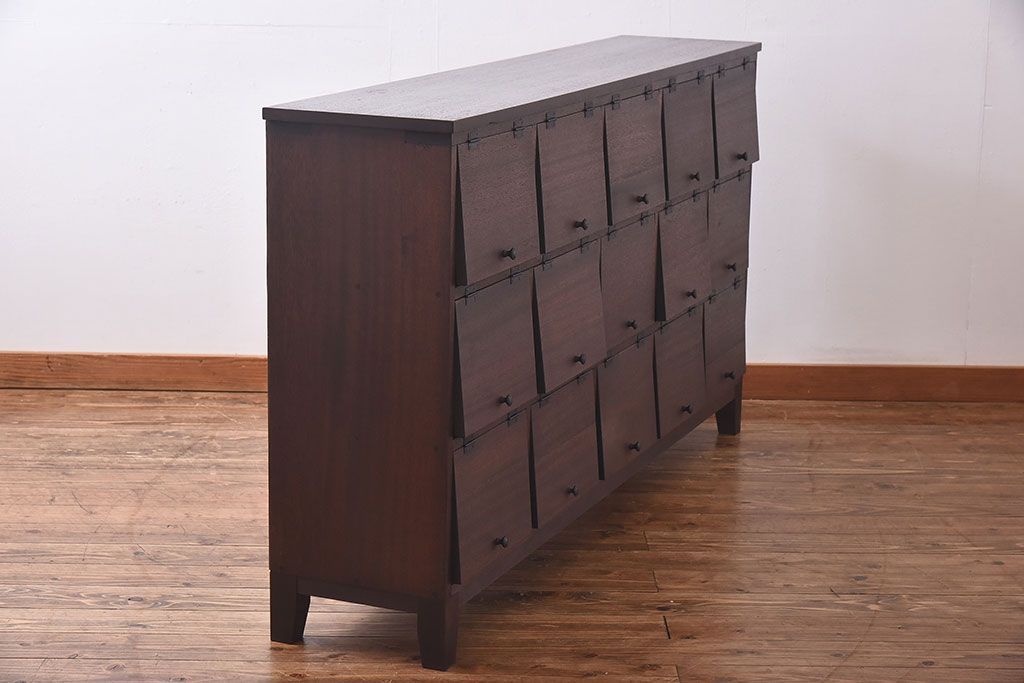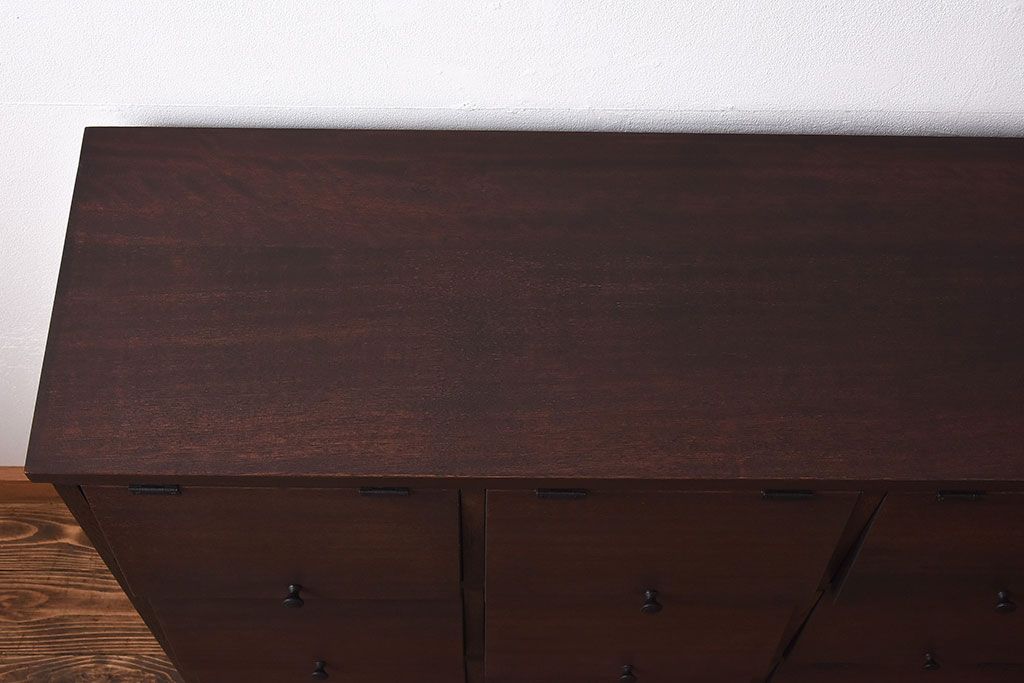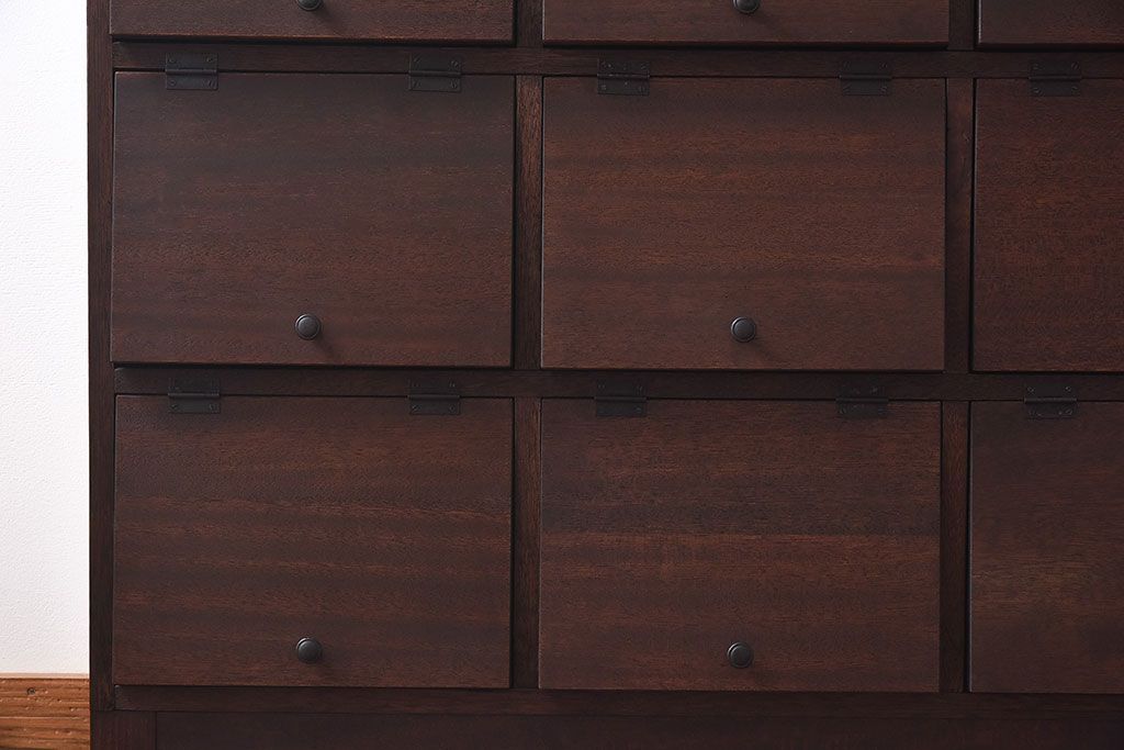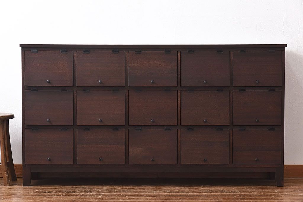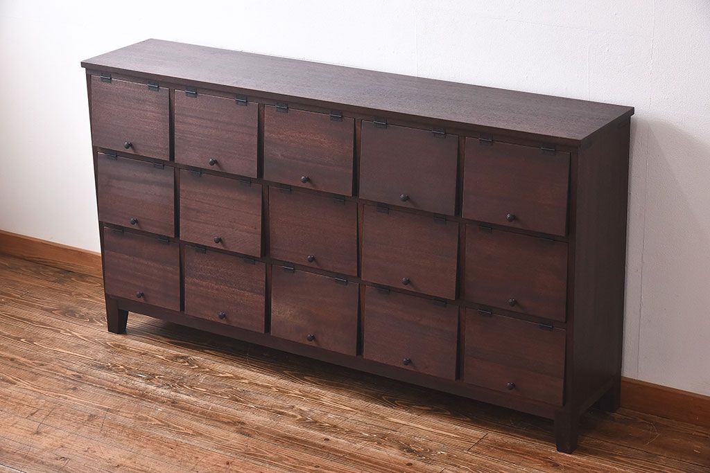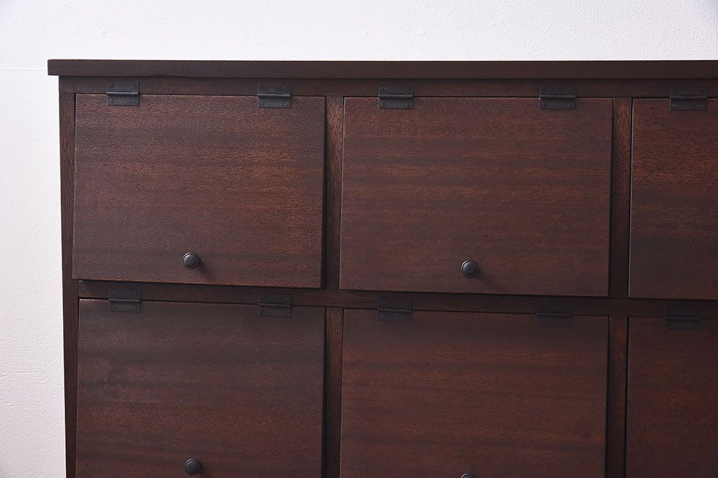 ラフジュ工房> ワードローブ・ロッカー > ラフジュ工房オリジナル 3×5マス ラワン古材のパタパタ扉付き横型・収納棚(キャビネット、下駄箱、ロッカー)