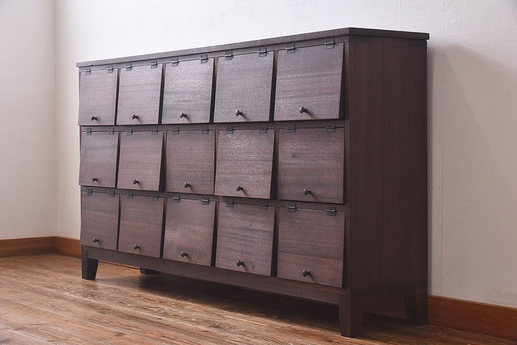 ラフジュ工房> ワードローブ・ロッカー> ロッカー > ラフジュ工房オリジナル 3×5マス ラワン古材のパタパタ扉付き横型・収納棚(キャビネット、下駄箱、ロッカー)