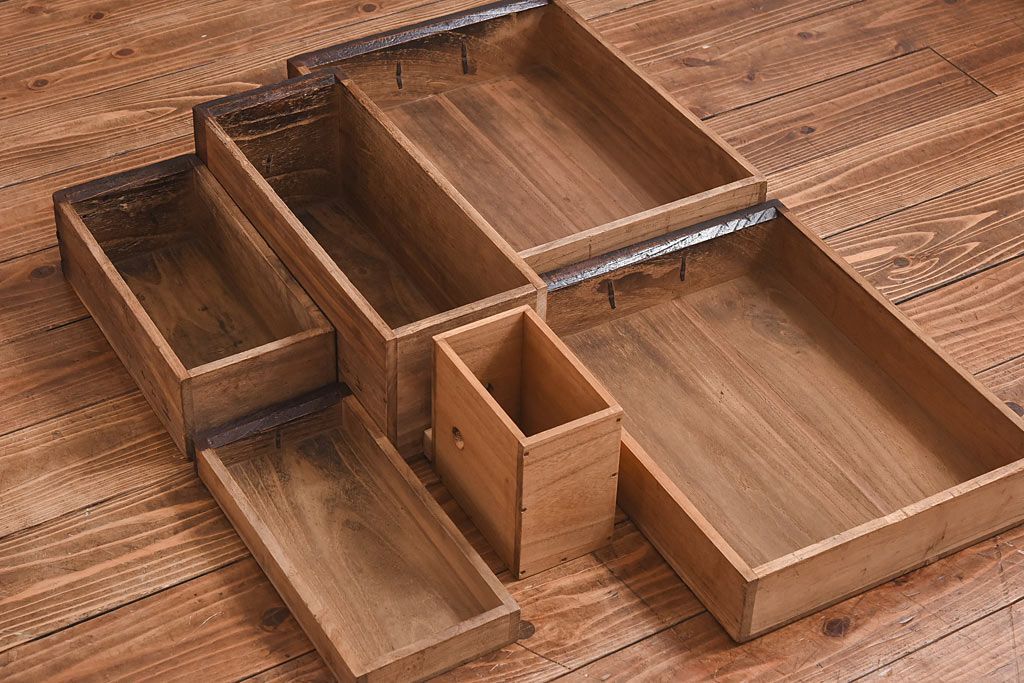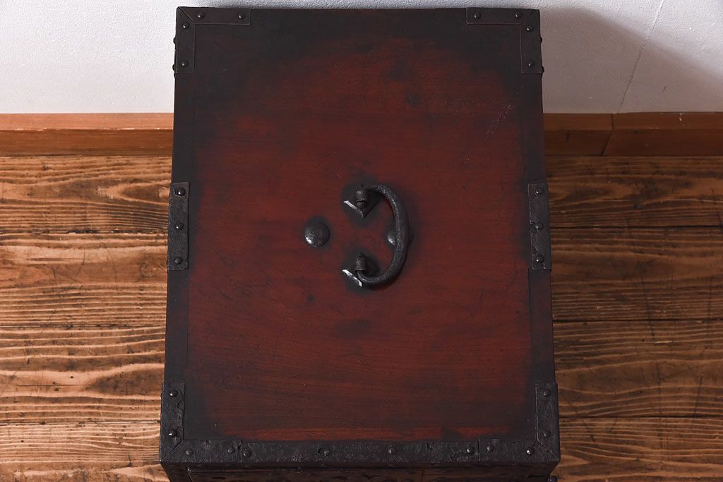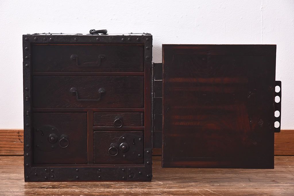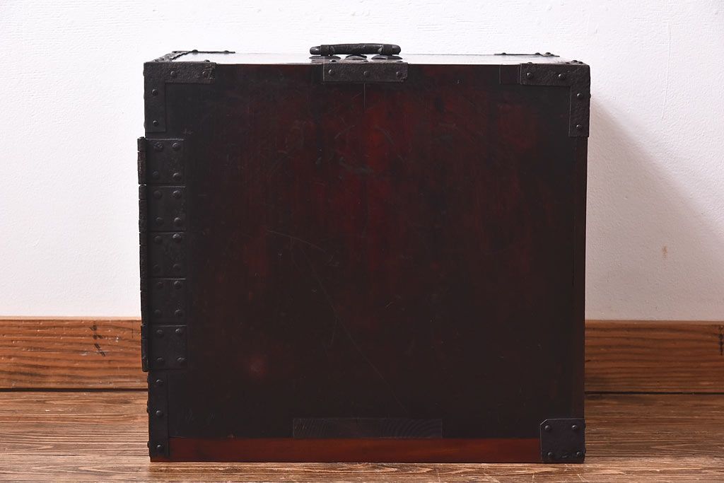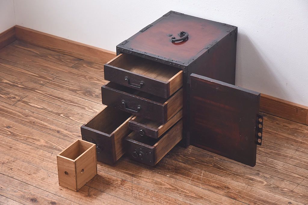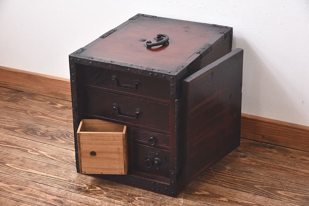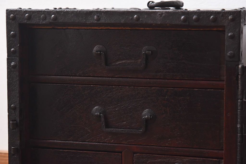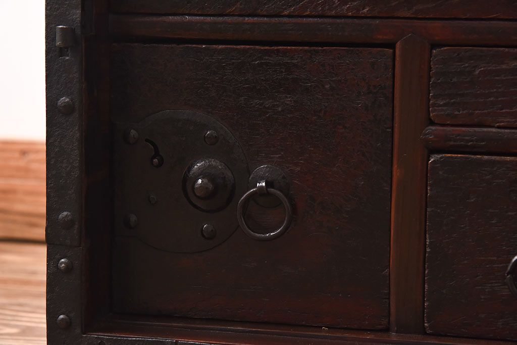 ラフジュ工房> 小物収納・トランク> 小引き出し > アンティーク家具 古民具 ケヤキ材 重厚な佇まいが魅力的な明治期の船箪笥(掛硯型、懸硯型、舟箪笥、タンス)(小)