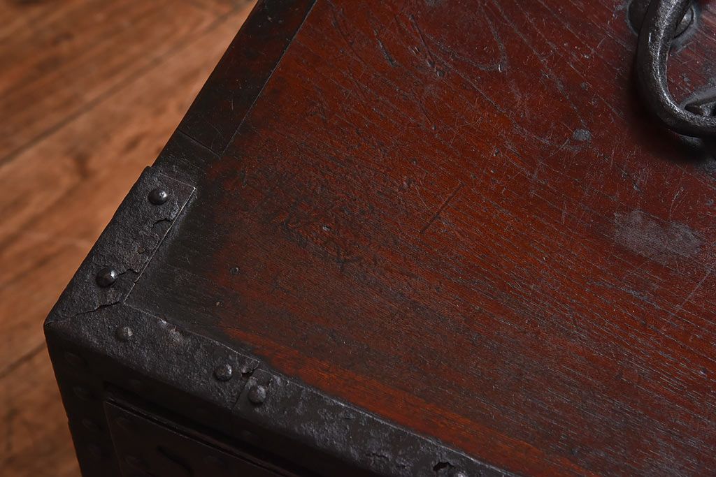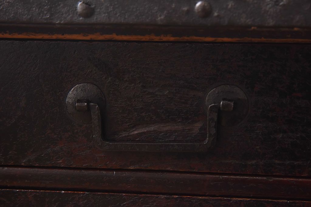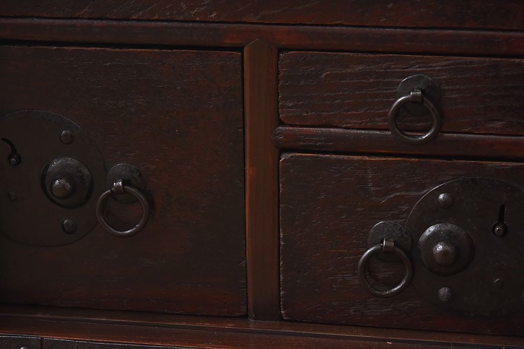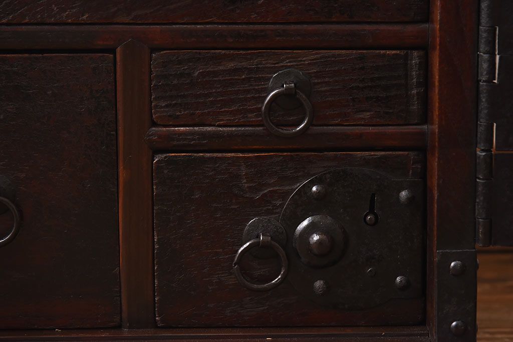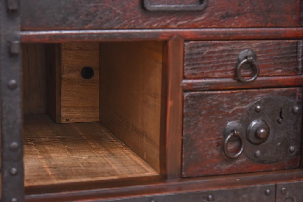 ラフジュ工房> 和箪笥> 船箪笥 > アンティーク家具 古民具 ケヤキ材 重厚な佇まいが魅力的な明治期の船箪笥(掛硯型、懸硯型、舟箪笥、タンス)(小)
