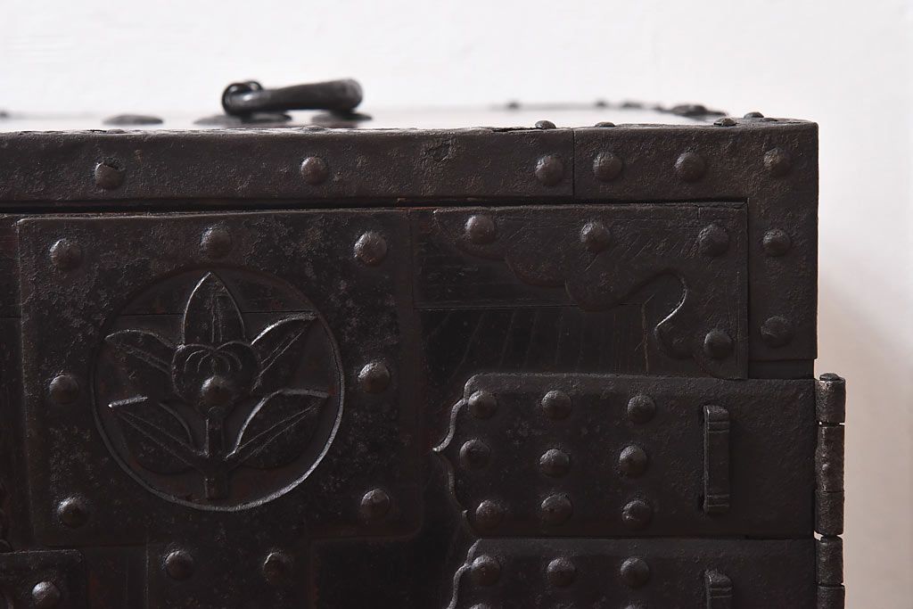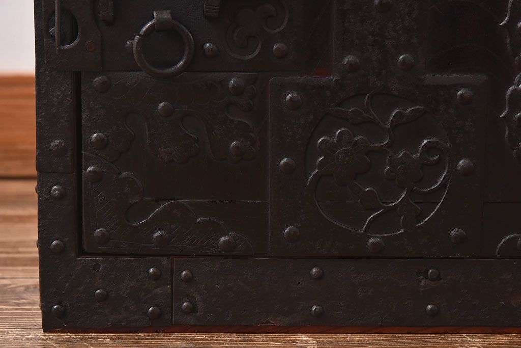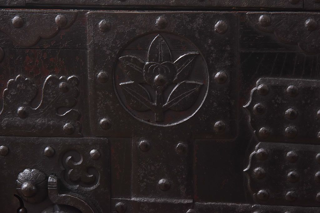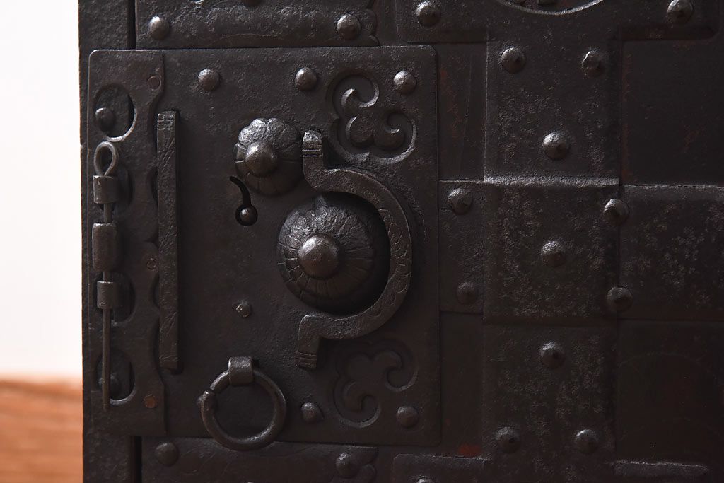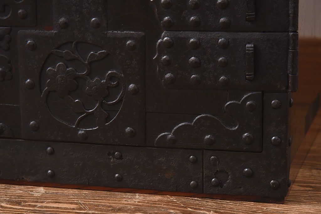 ラフジュ工房> 和箪笥> 船箪笥 > アンティーク家具 古民具 ケヤキ材 重厚な佇まいが魅力的な明治期の船箪笥(掛硯型、懸硯型、舟箪笥、タンス)(小)