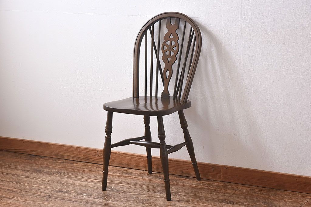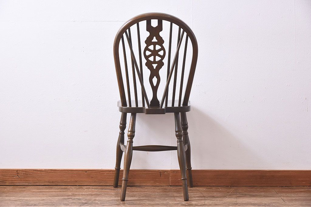 ラフジュ工房> 椅子・ベンチ> ウィンザーチェア > ヴィンテージ家具 【T様ご決済分】イギリスビンテージ シックな雰囲気のホイールバックチェア(ウィンザーチェア、ダイニングチェア、ウインザーチェア)(2)