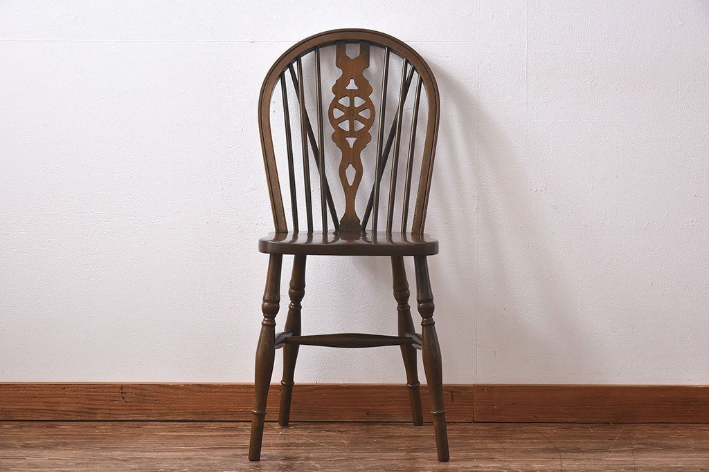 ヴィンテージ家具 【T様ご決済分】イギリスビンテージ シックな雰囲気のホイールバックチェア(ウィンザーチェア、ダイニングチェア、ウインザーチェア)(2)