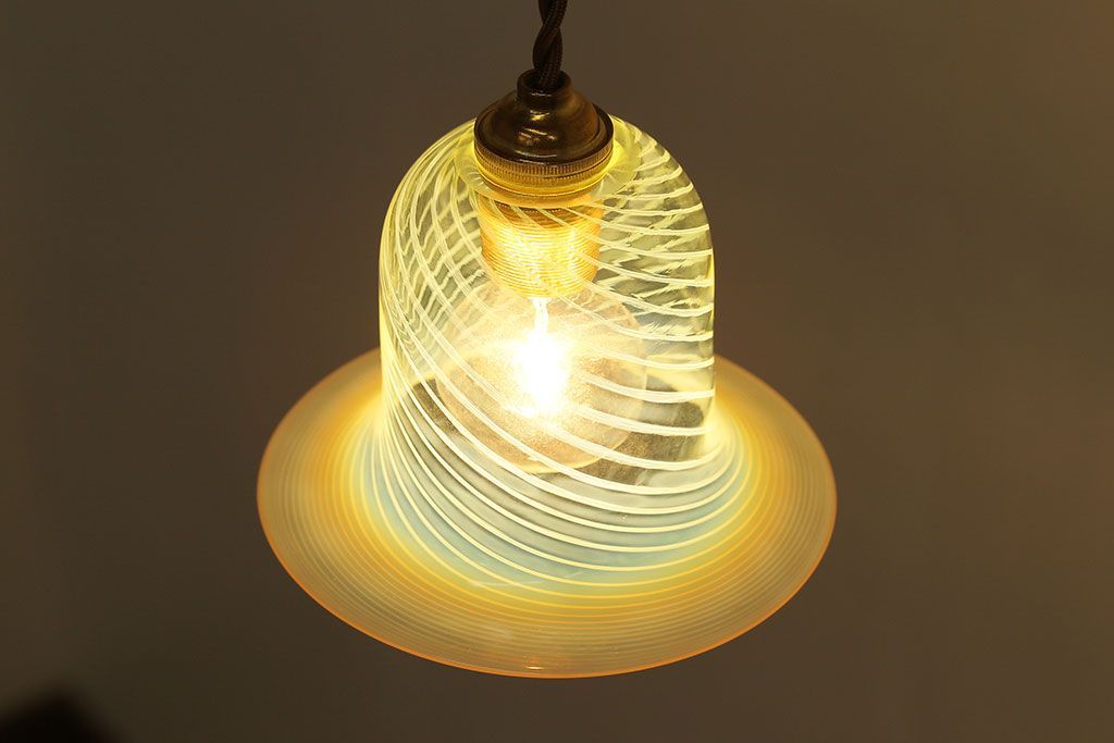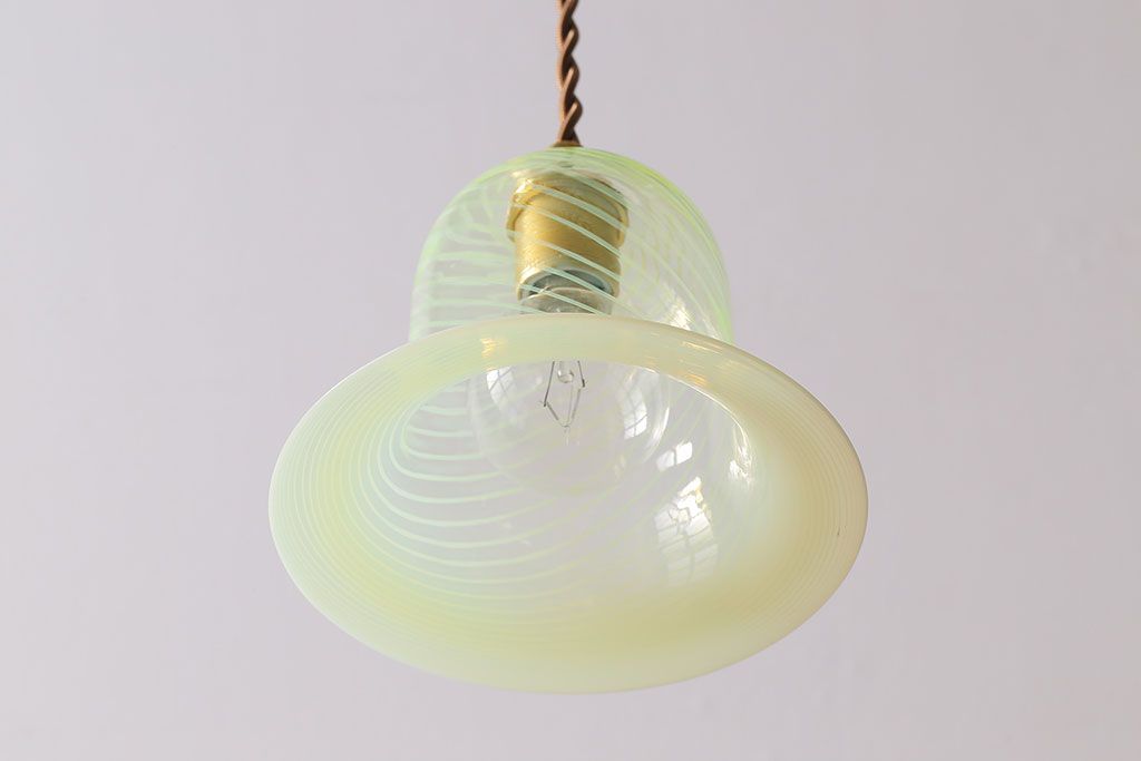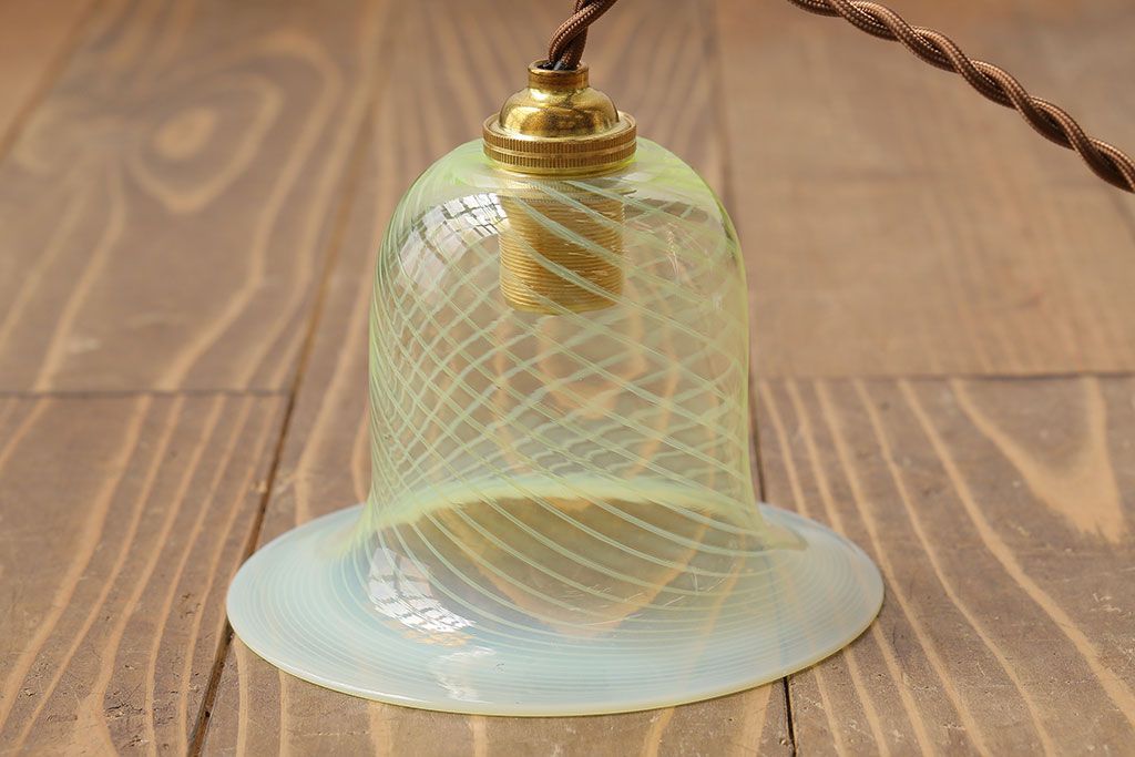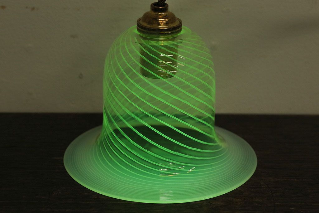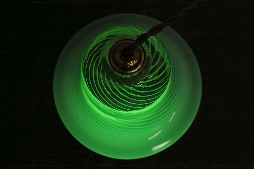 浮かび上がる模様がおしゃれなウランガラス製シェード(天井照明、電笠)