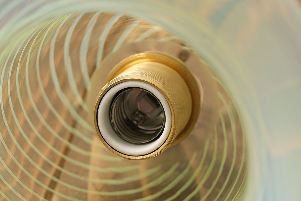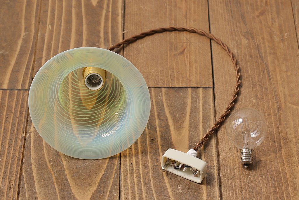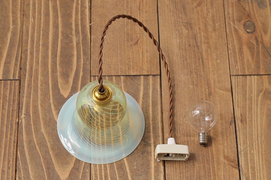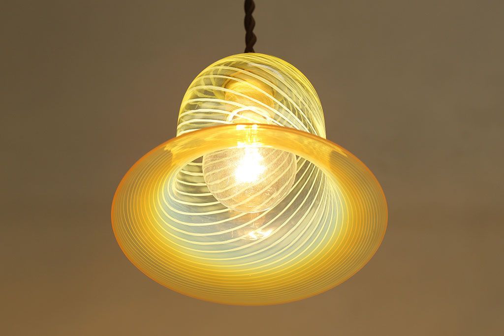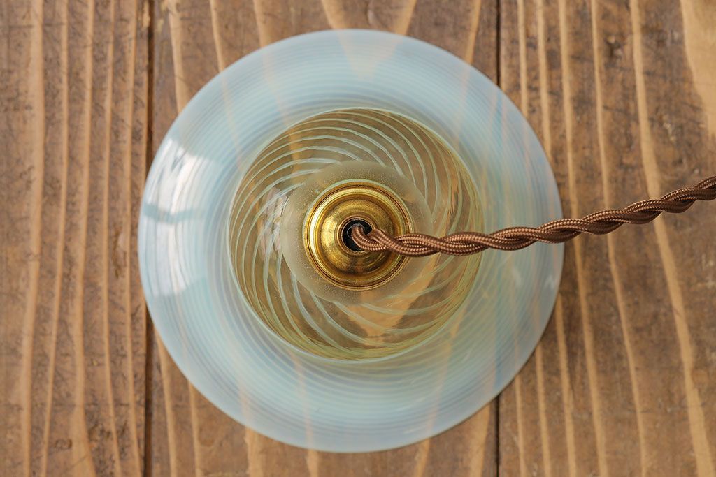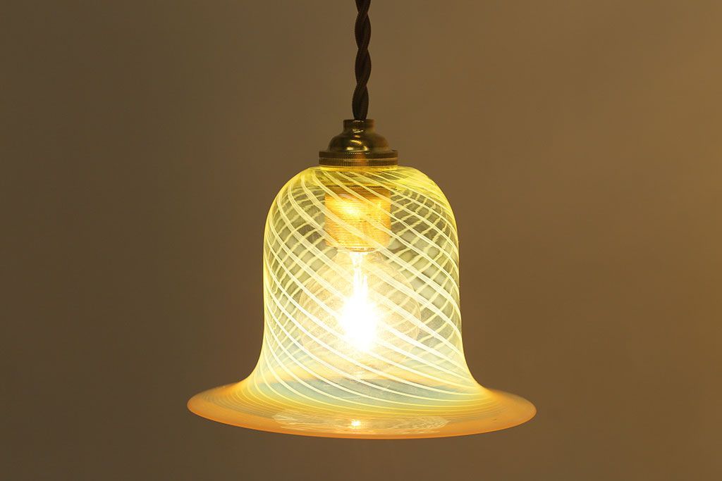 浮かび上がる模様がおしゃれなウランガラス製シェード(天井照明、電笠)