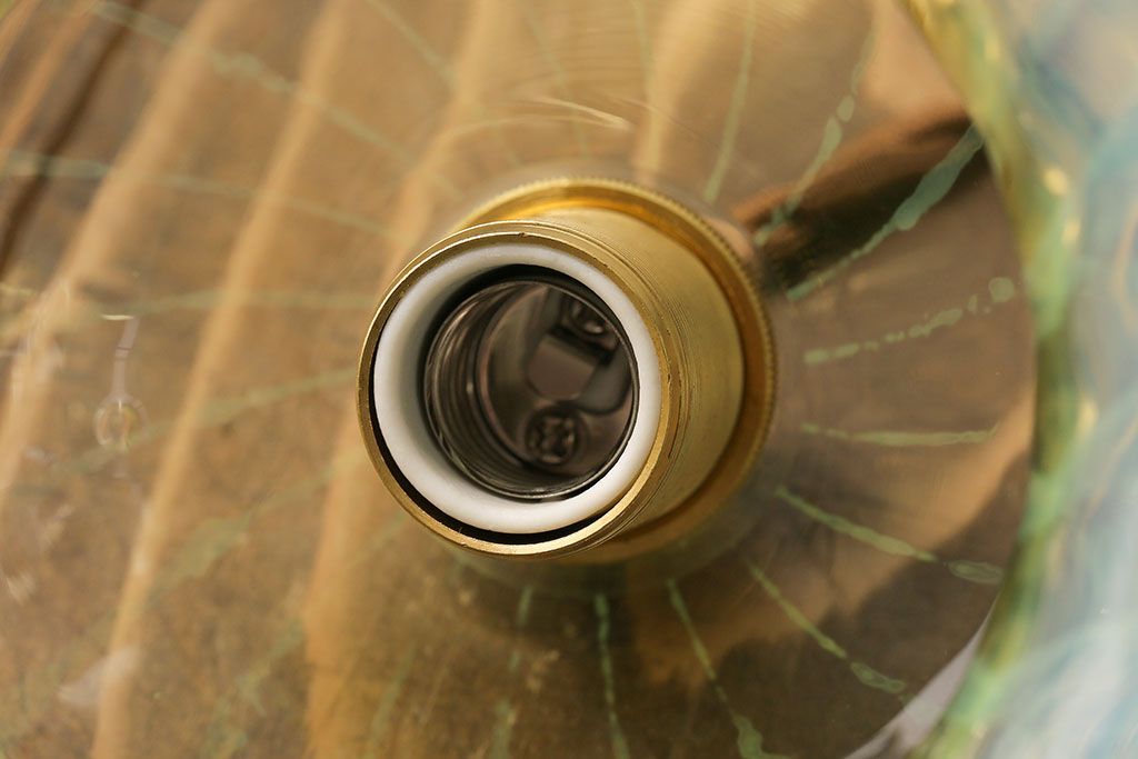 ストライプが浮かび上がるおしゃれなウランガラス製フリルシェード(天井照明、ペンダントライト)です。