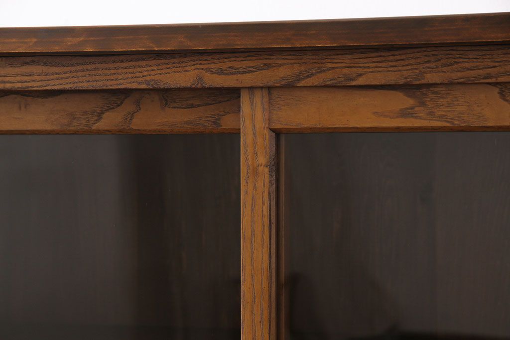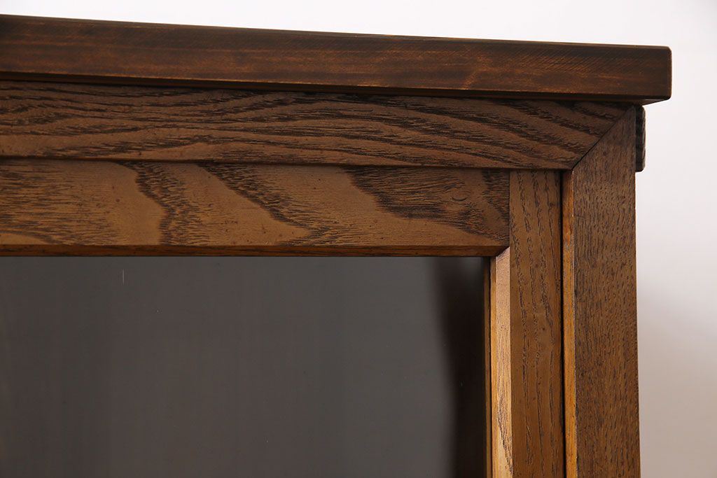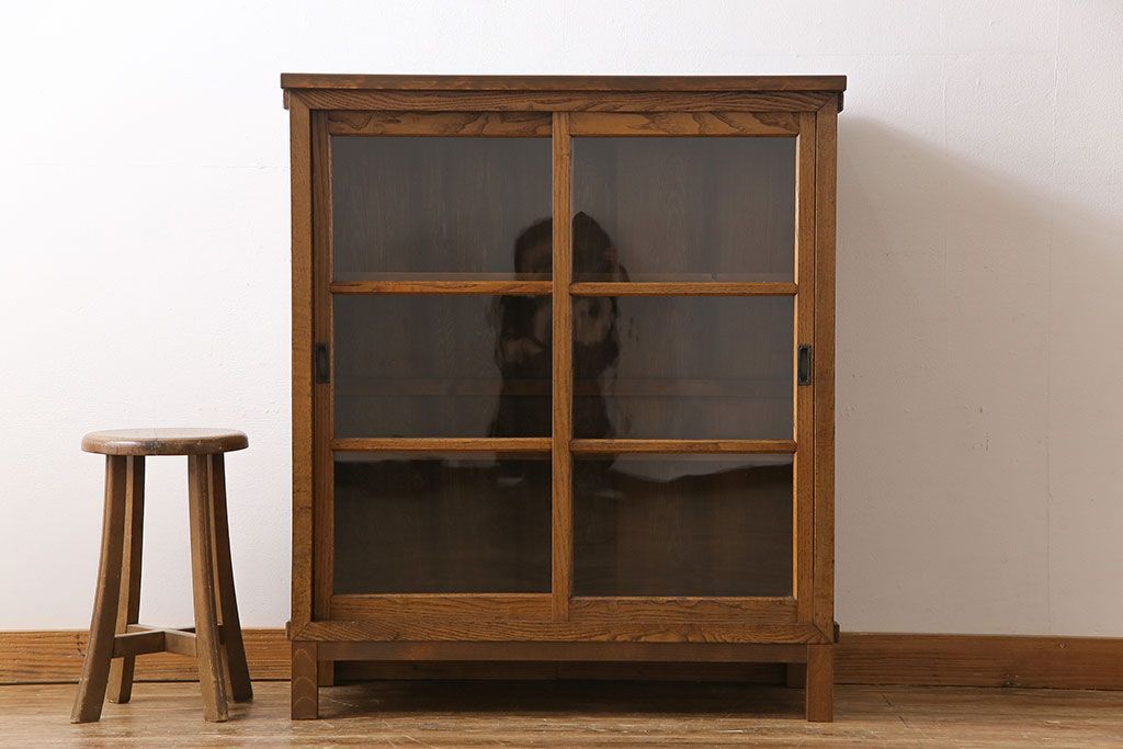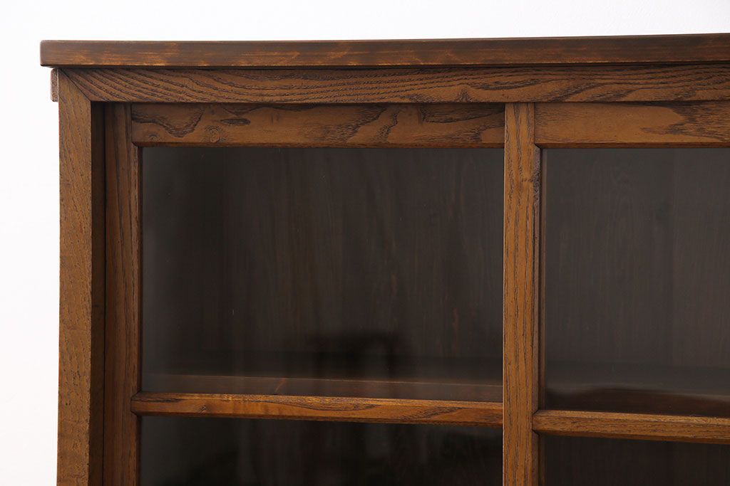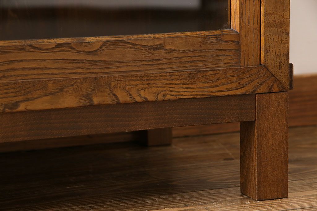レトロ家具 昭和レトロ 前面タモ材 懐かしさ漂う脚付きキャビネット(ガラス戸棚、飾り棚)