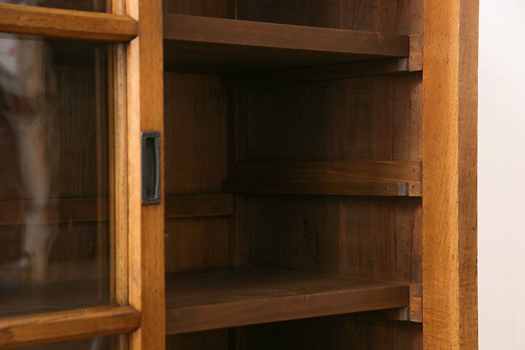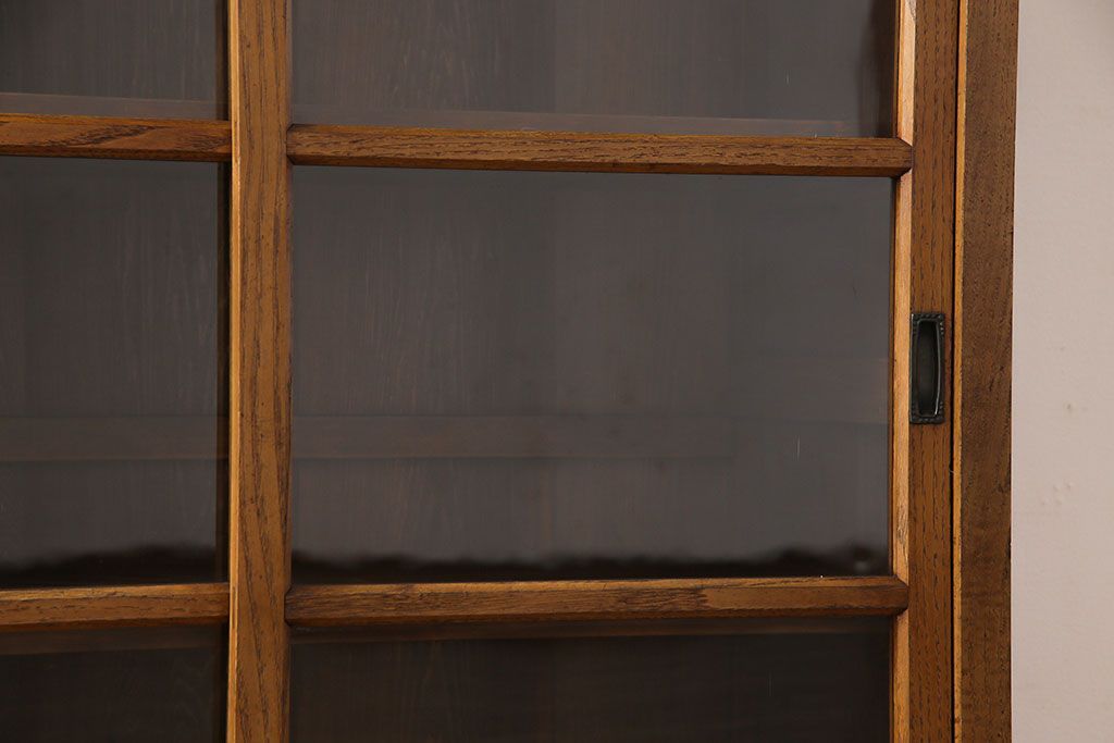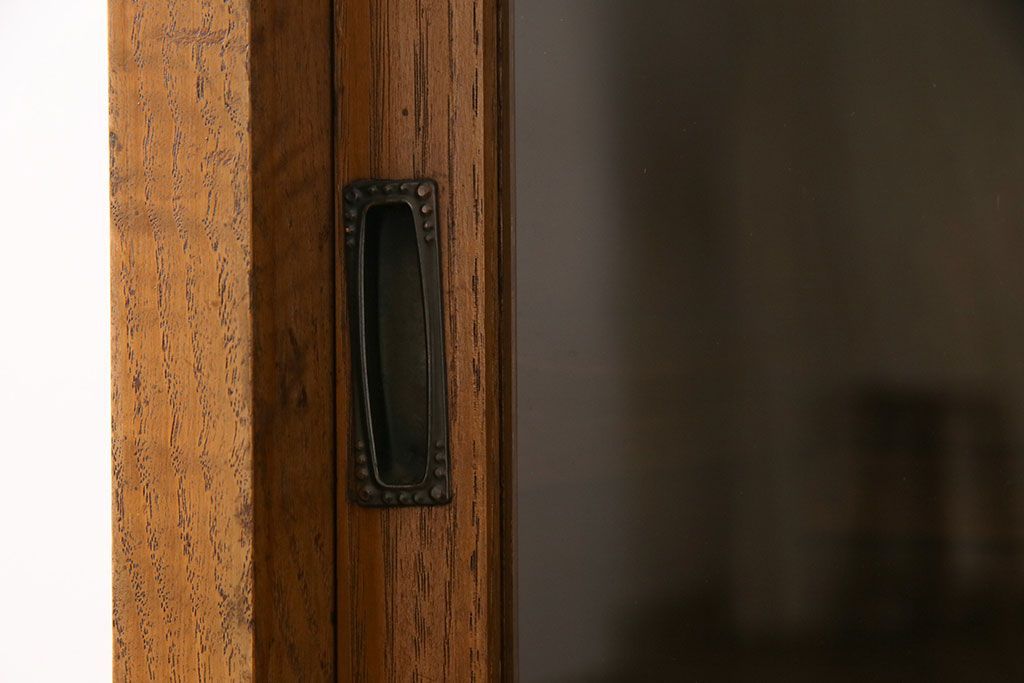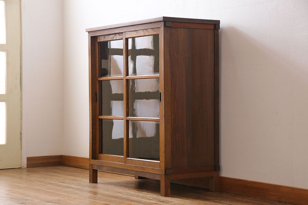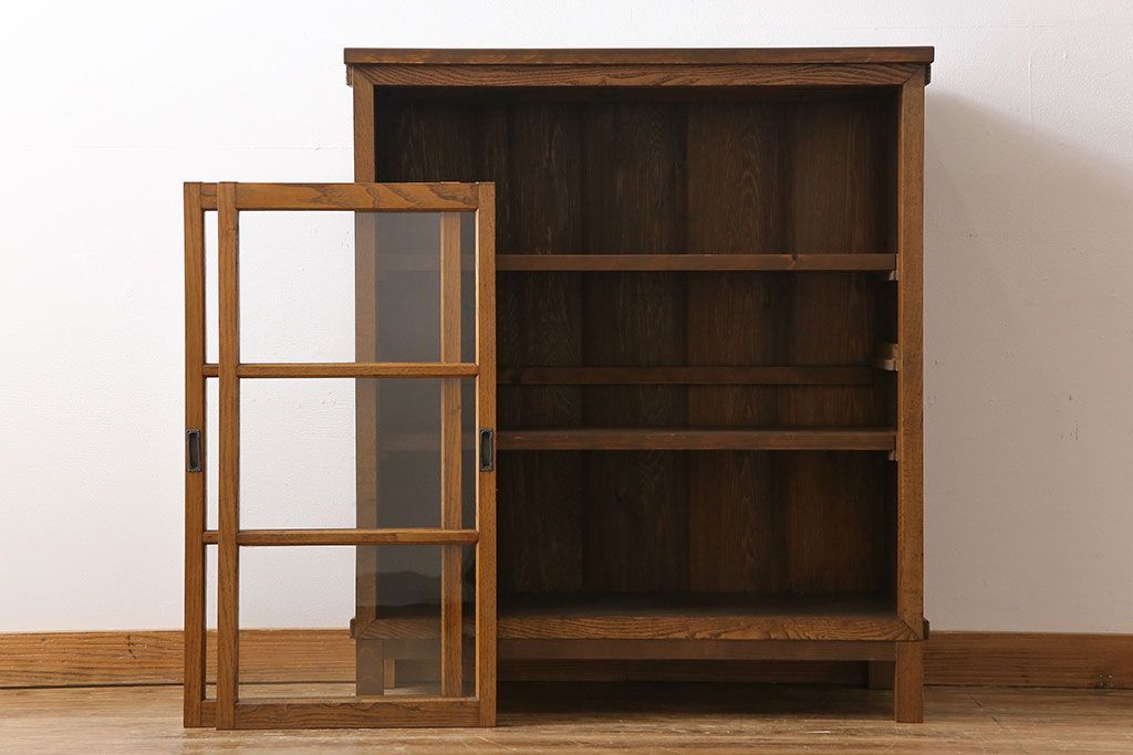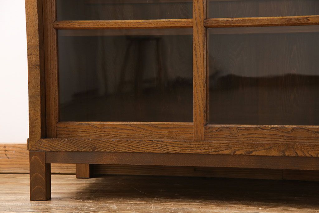 レトロ家具 昭和レトロ 前面タモ材 懐かしさ漂う脚付きキャビネット(ガラス戸棚、飾り棚)