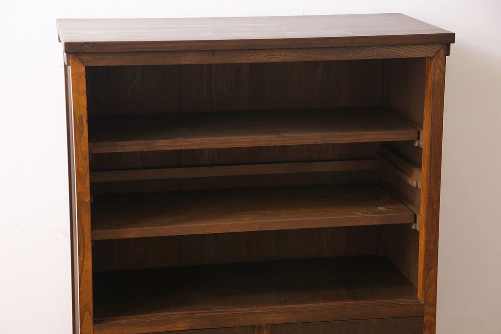 棚板は取り外しできます。100mm毎に調整できます。棚幅サイズのものが1枚の作りです。
