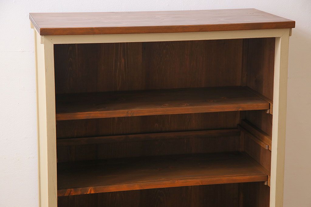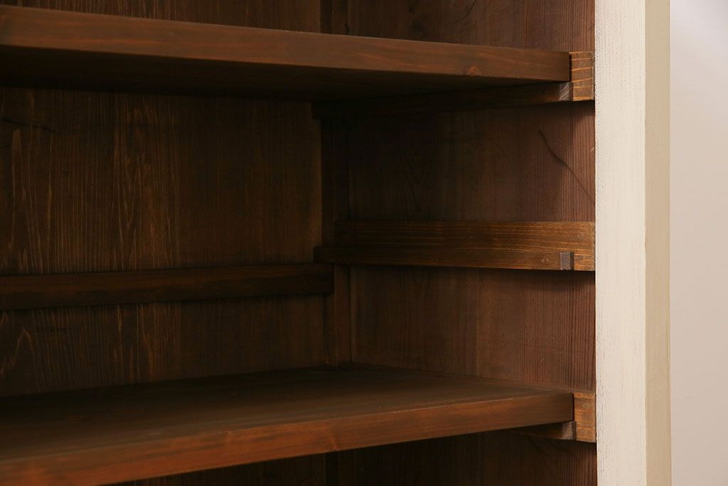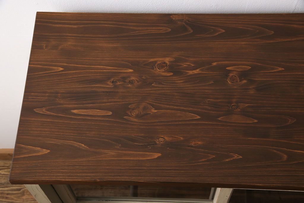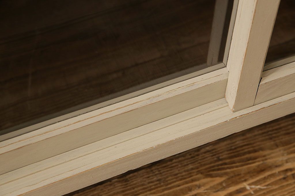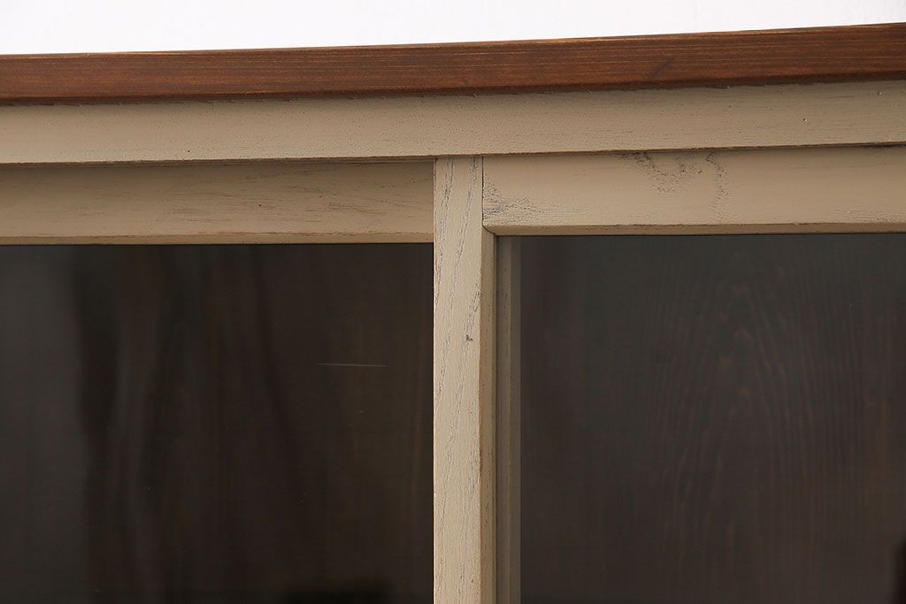 ラフジュ工房> キャビネット・戸棚> 食器棚・カップボード > ペイント家具 ゆらゆらガラスが懐かしさ漂う鉄脚付キャビネット(ガラス戸棚、飾り棚)