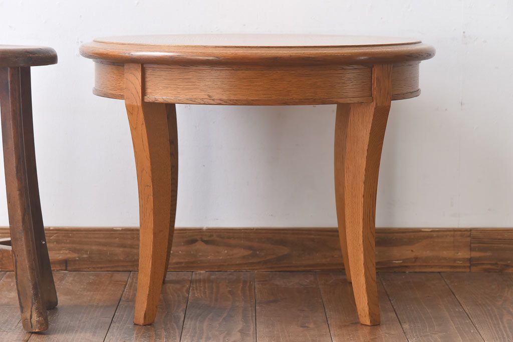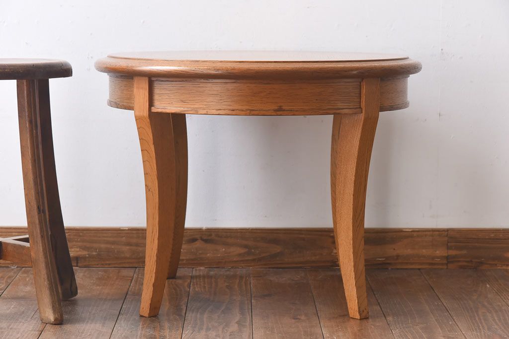 アンティーク雑貨 中古 天童木工 シンプルなラウンド型サイドテーブル(センターテーブル、コーヒーテーブル、花台)(2)