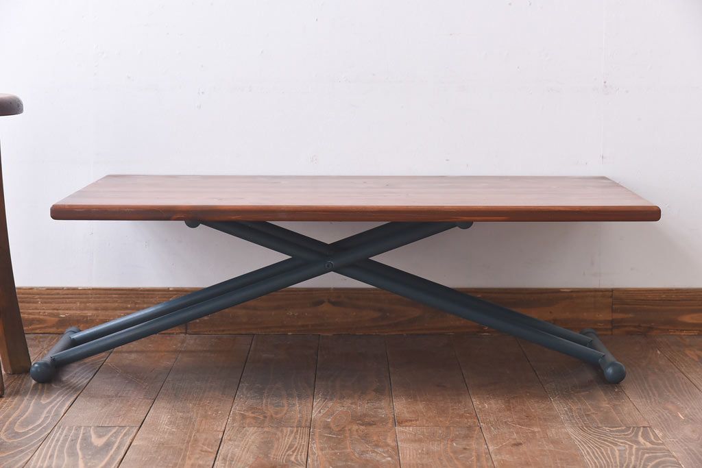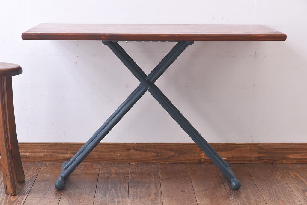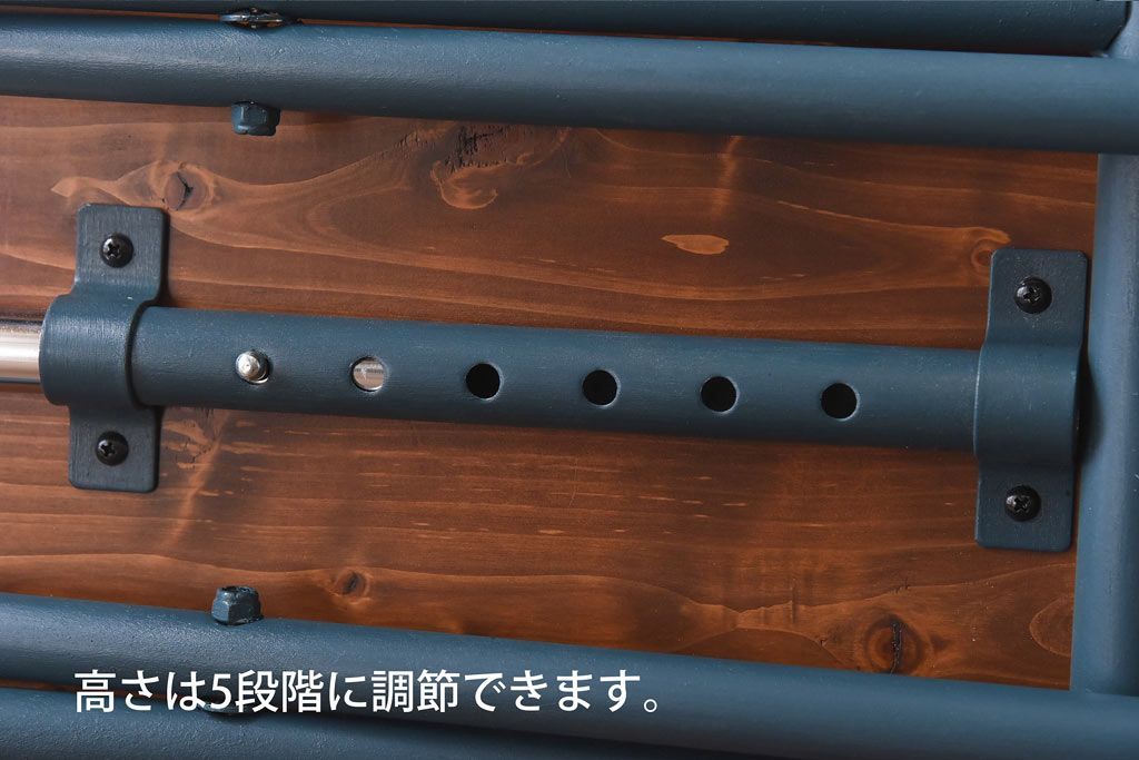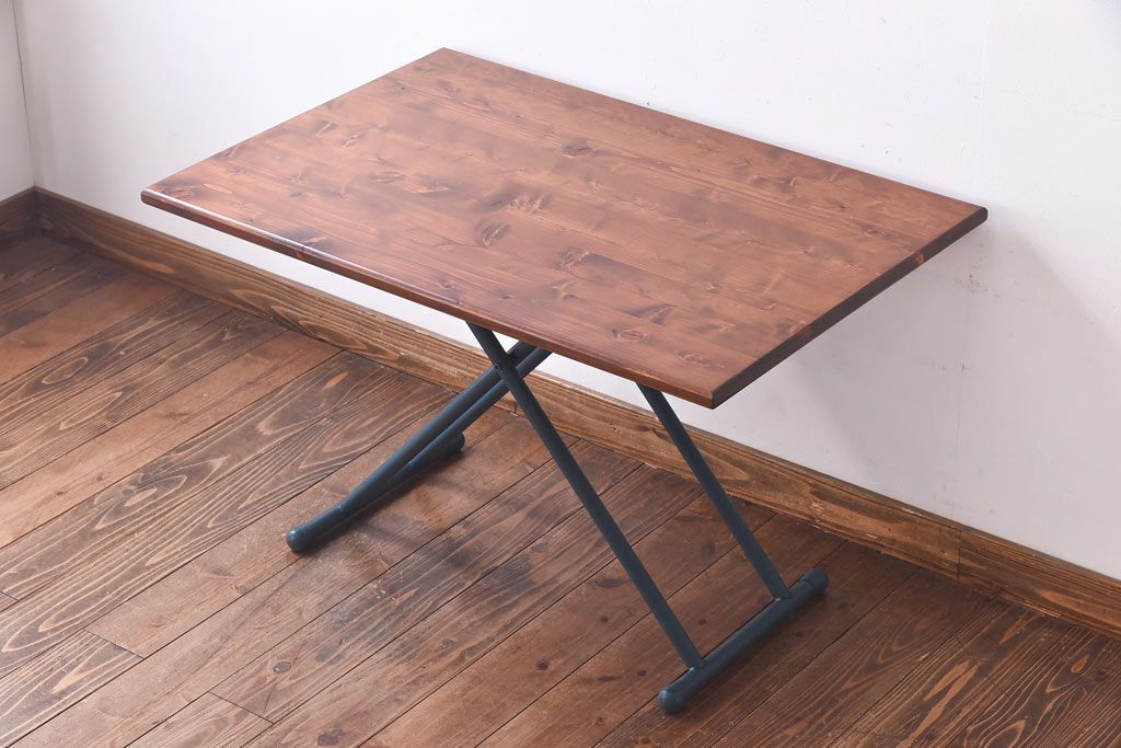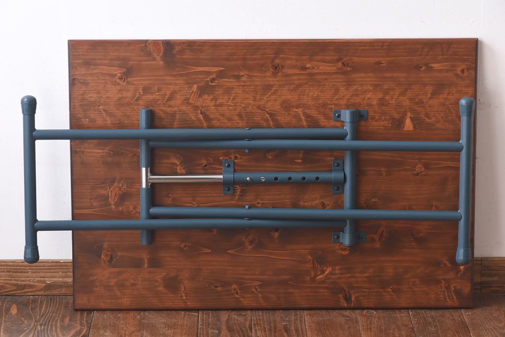 ラフジュ工房> テーブル> 鉄脚テーブル > ラフジュ工房オリジナル ヒノキ材 ネイビーの脚が格好いいリフティングテーブル(サイドテーブル、センターテーブル、作業台)(2)