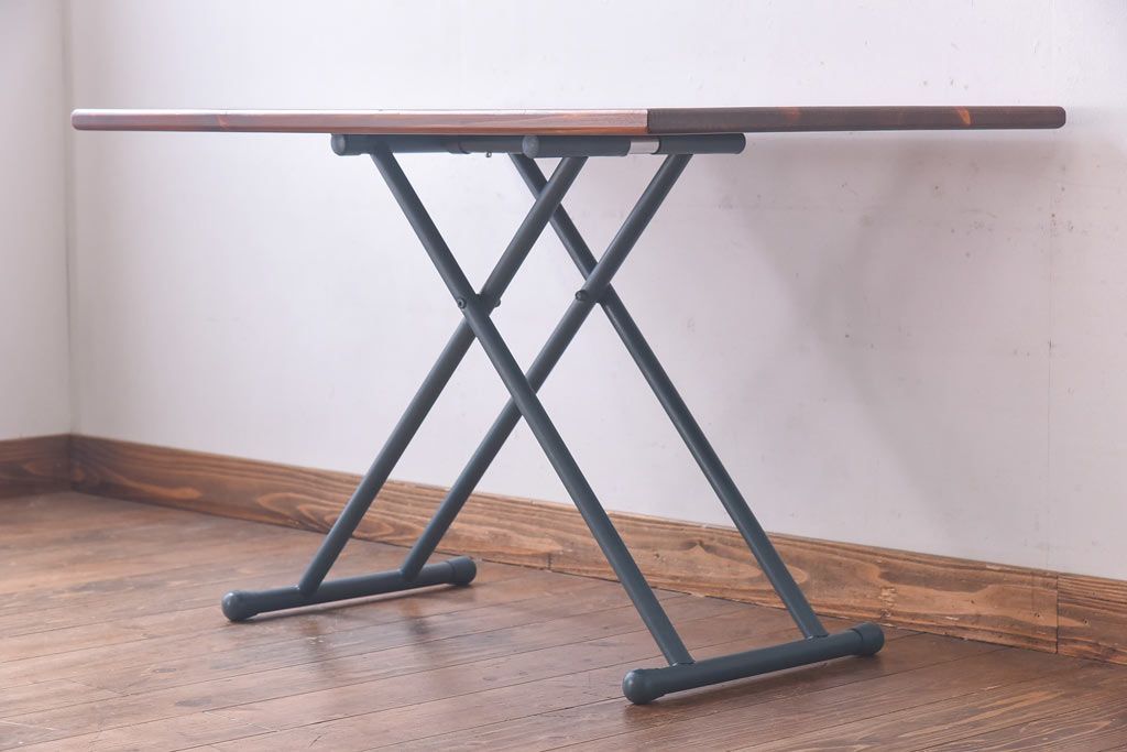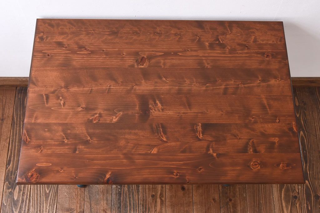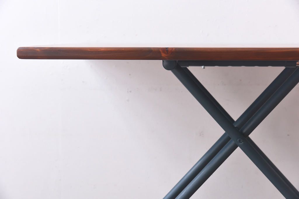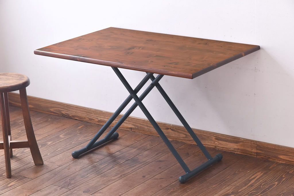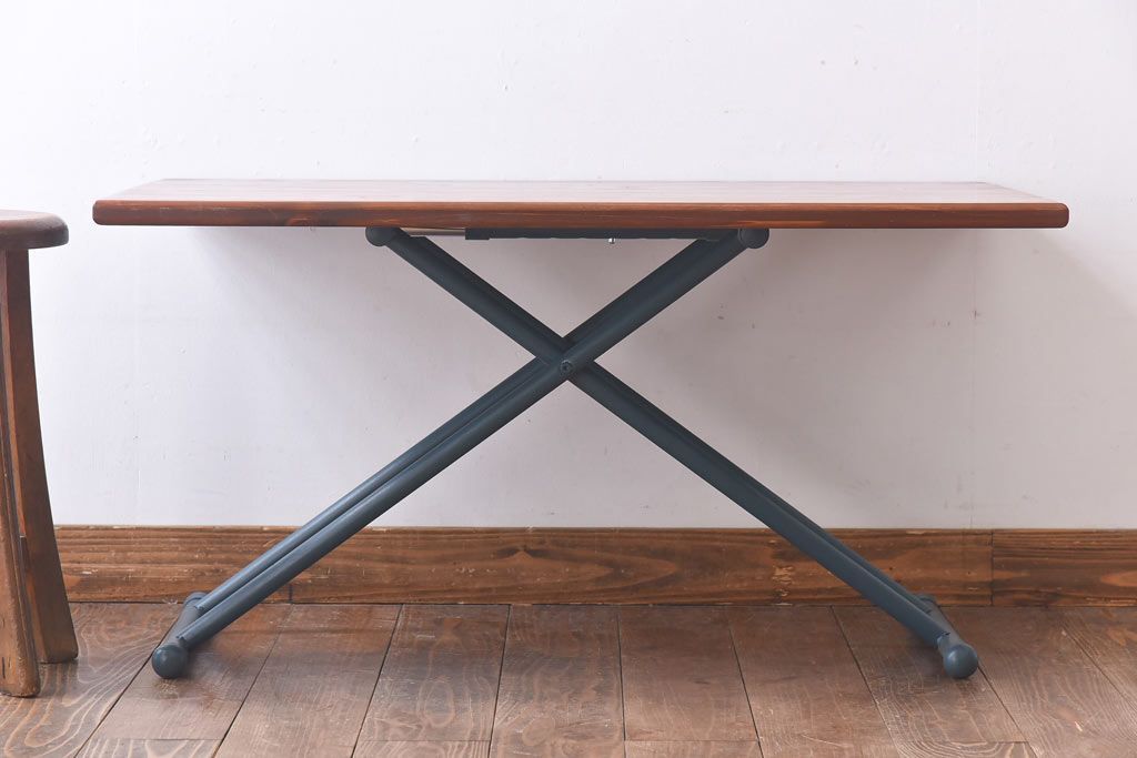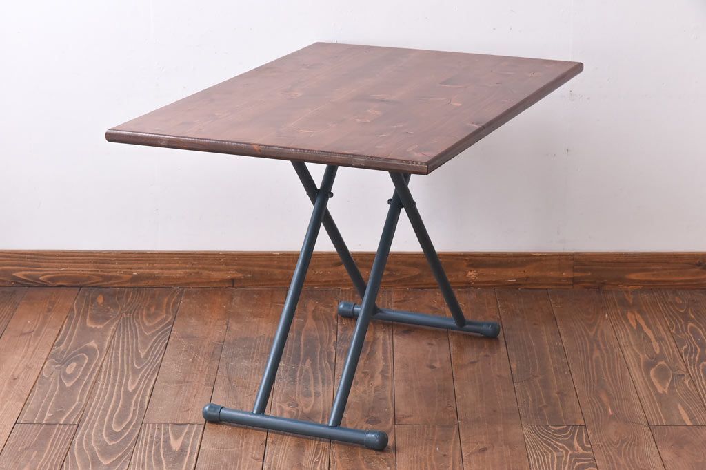 ラフジュ工房> テーブル> 鉄脚テーブル > ラフジュ工房オリジナル ヒノキ材 ネイビーの脚が格好いいリフティングテーブル(サイドテーブル、センターテーブル、作業台)(2)