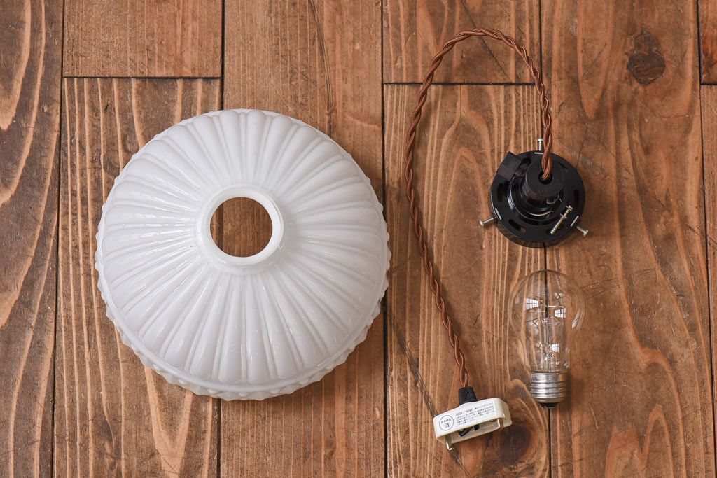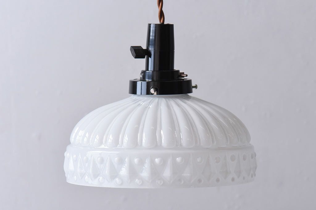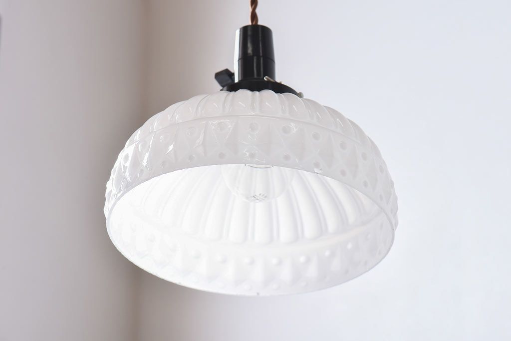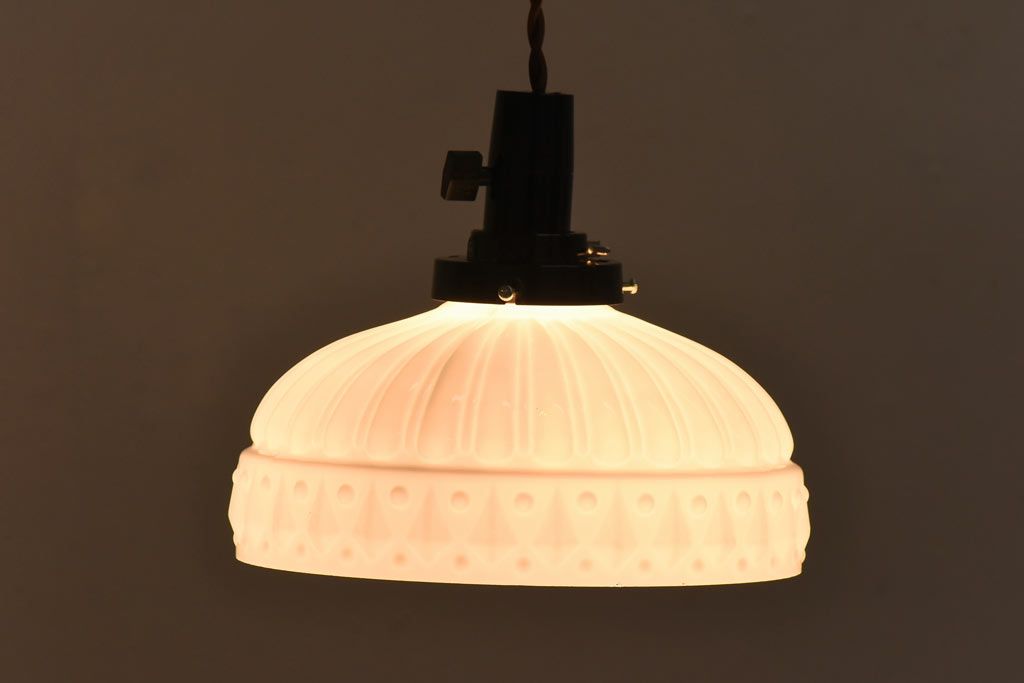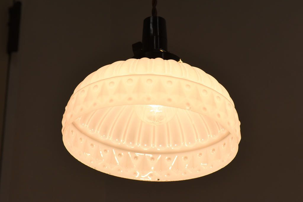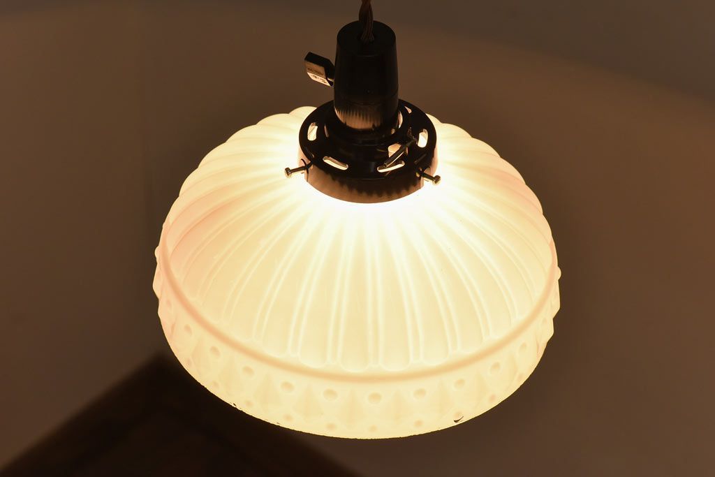 昭和レトロ プレスガラスの模様が愛らしいペンダントライト(天井照明、吊り下げ照明)です。
