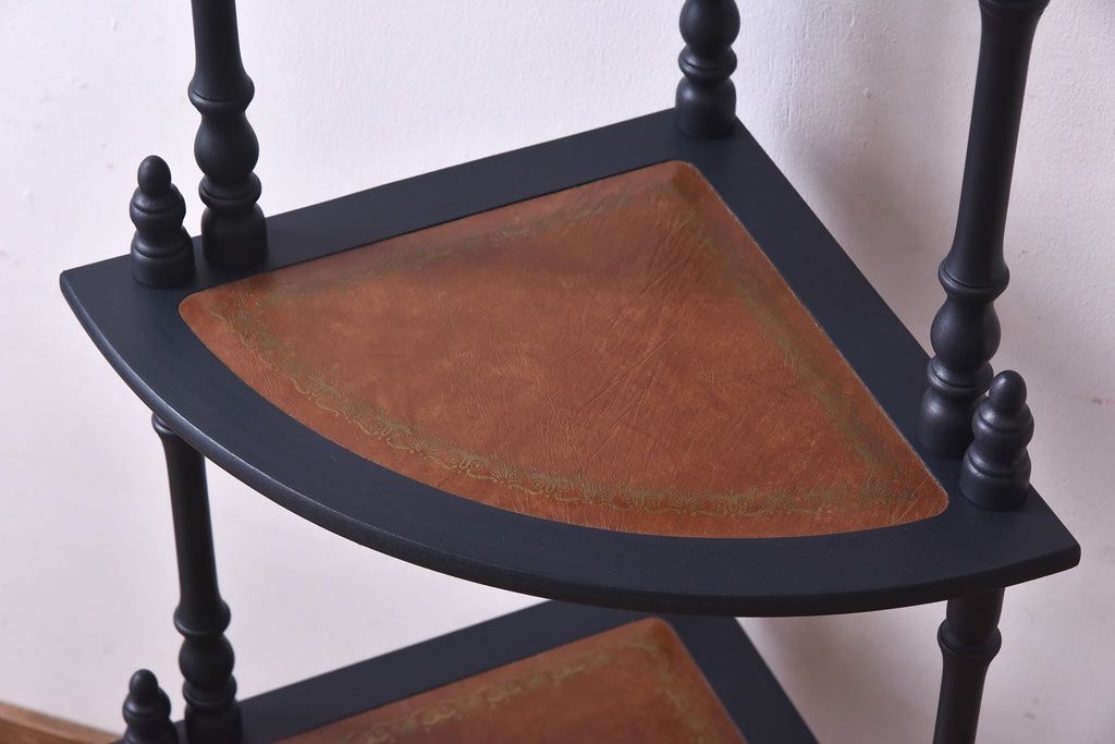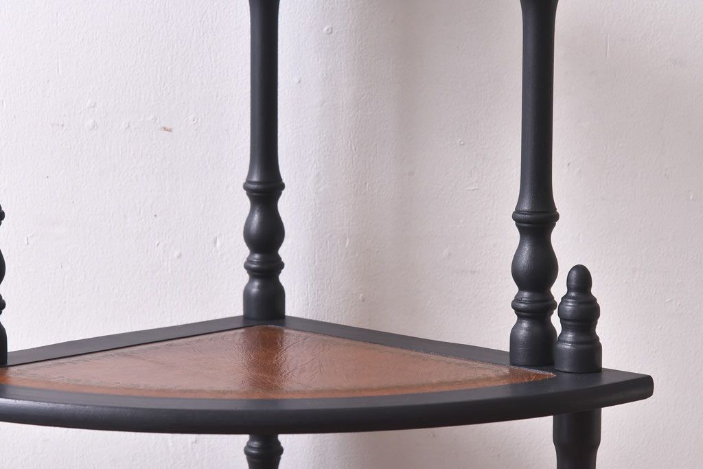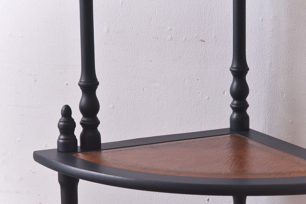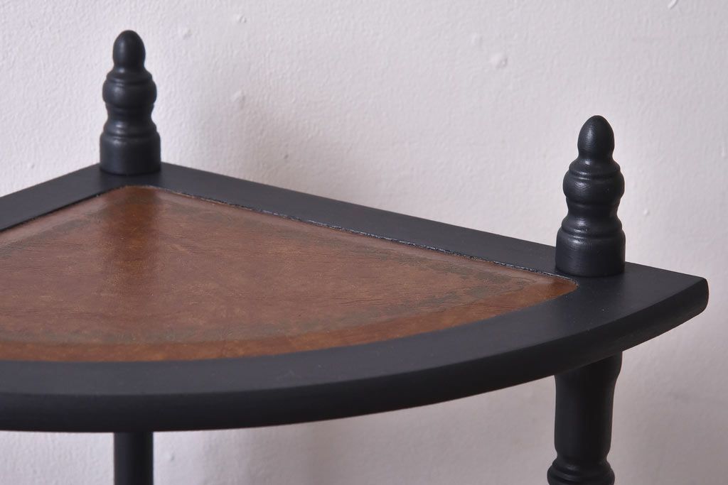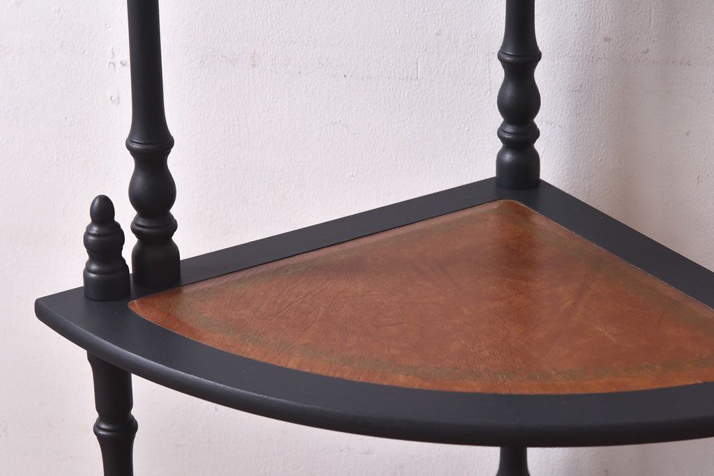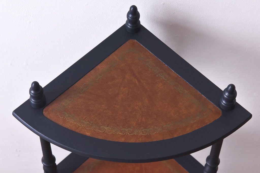 アンティーク雑貨 ペイント家具 シックな雰囲気漂うレザートップのコーナーラック(飾り台、花台)