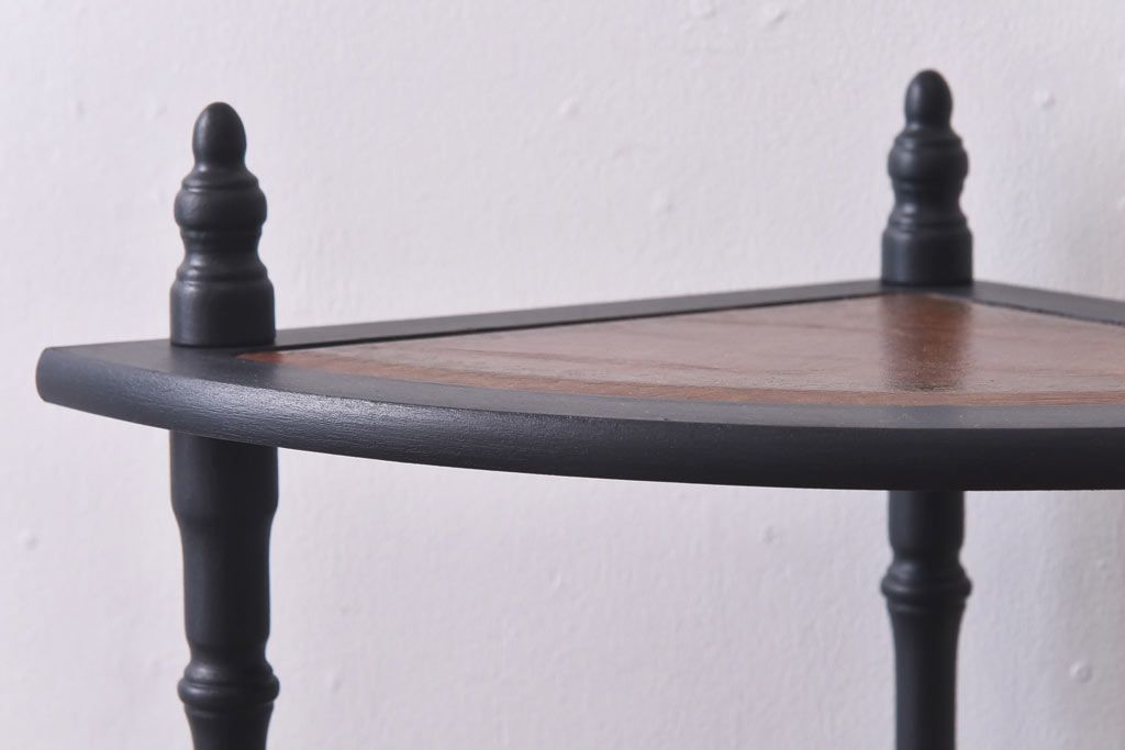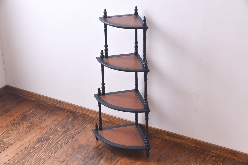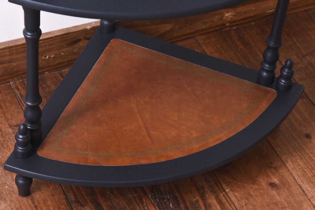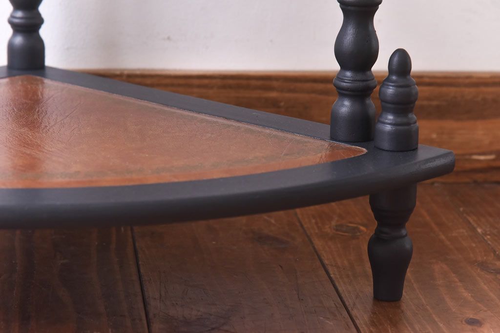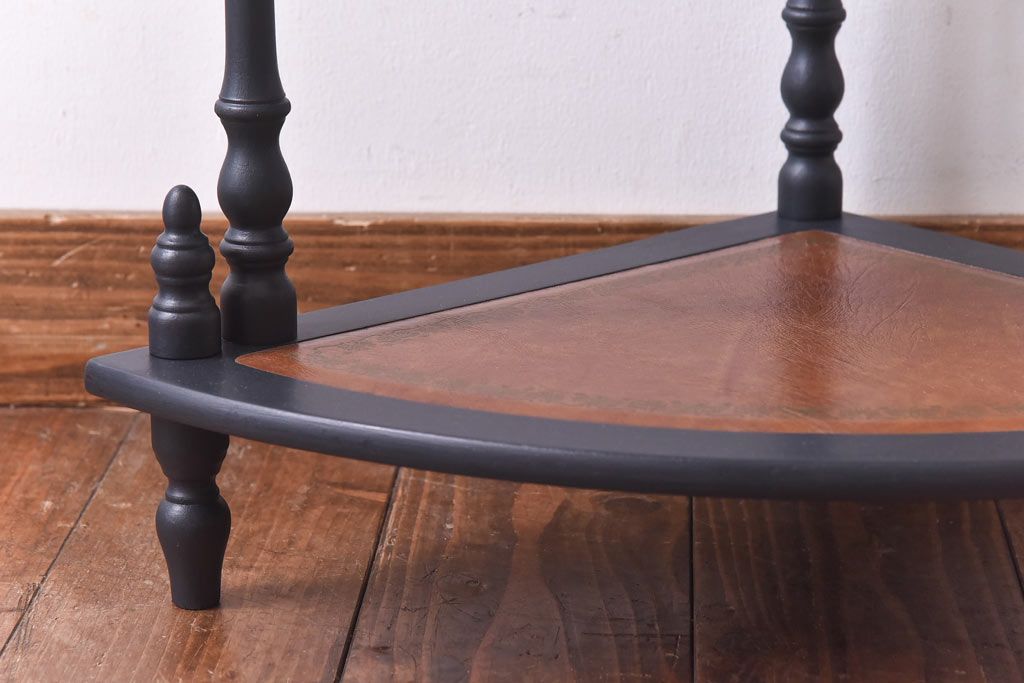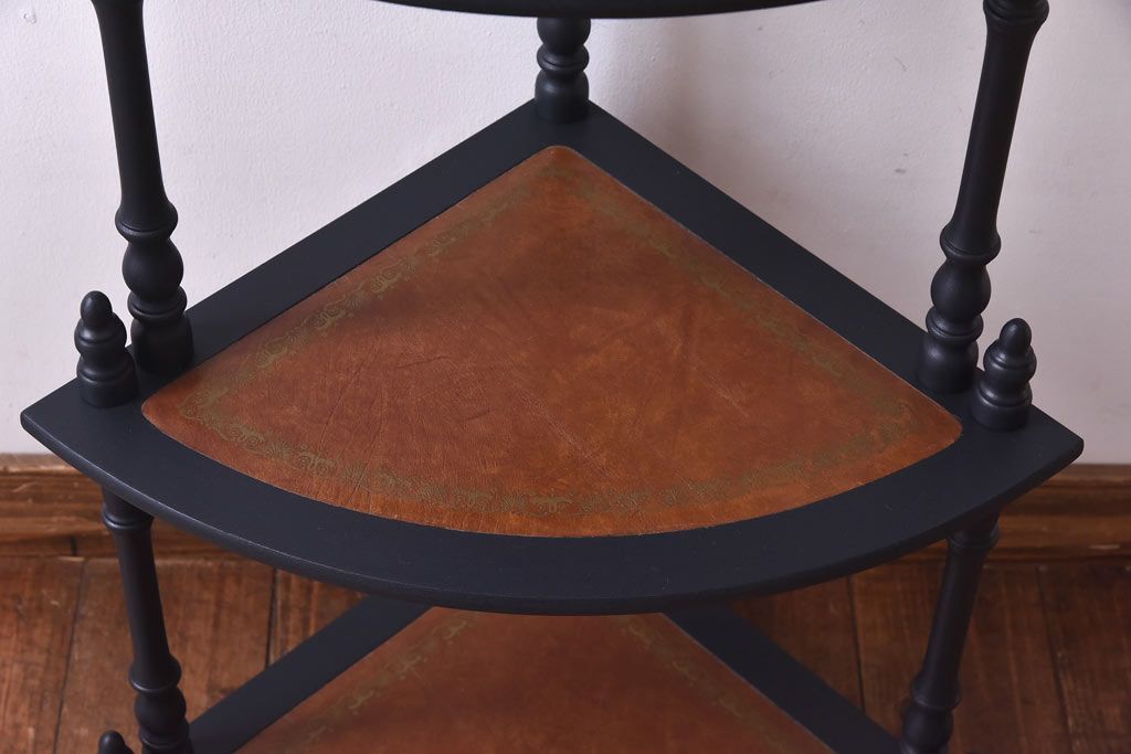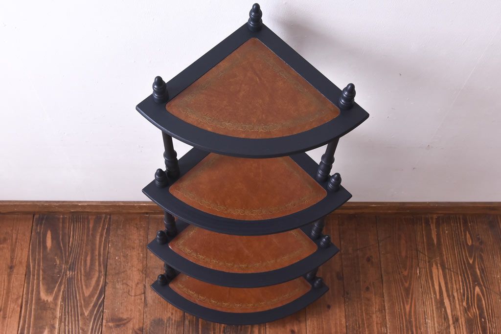 アンティーク雑貨 ペイント家具 シックな雰囲気漂うレザートップのコーナーラック(飾り台、花台)