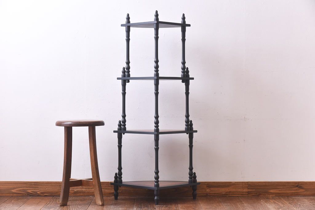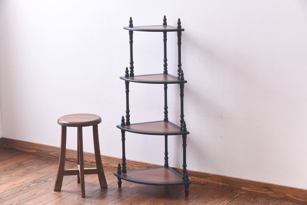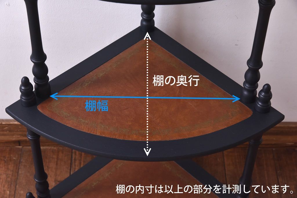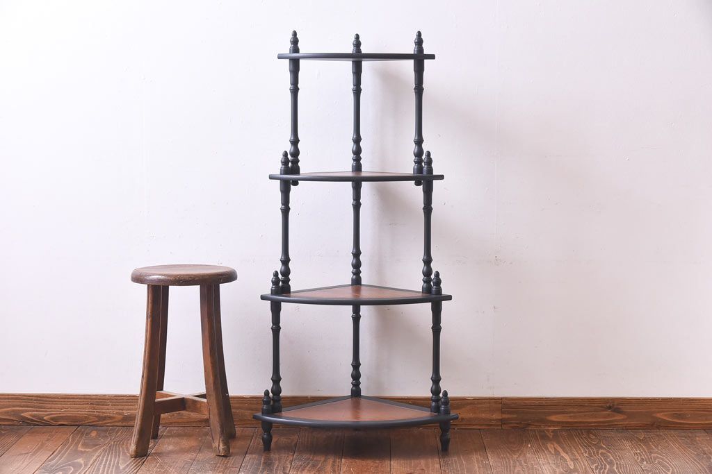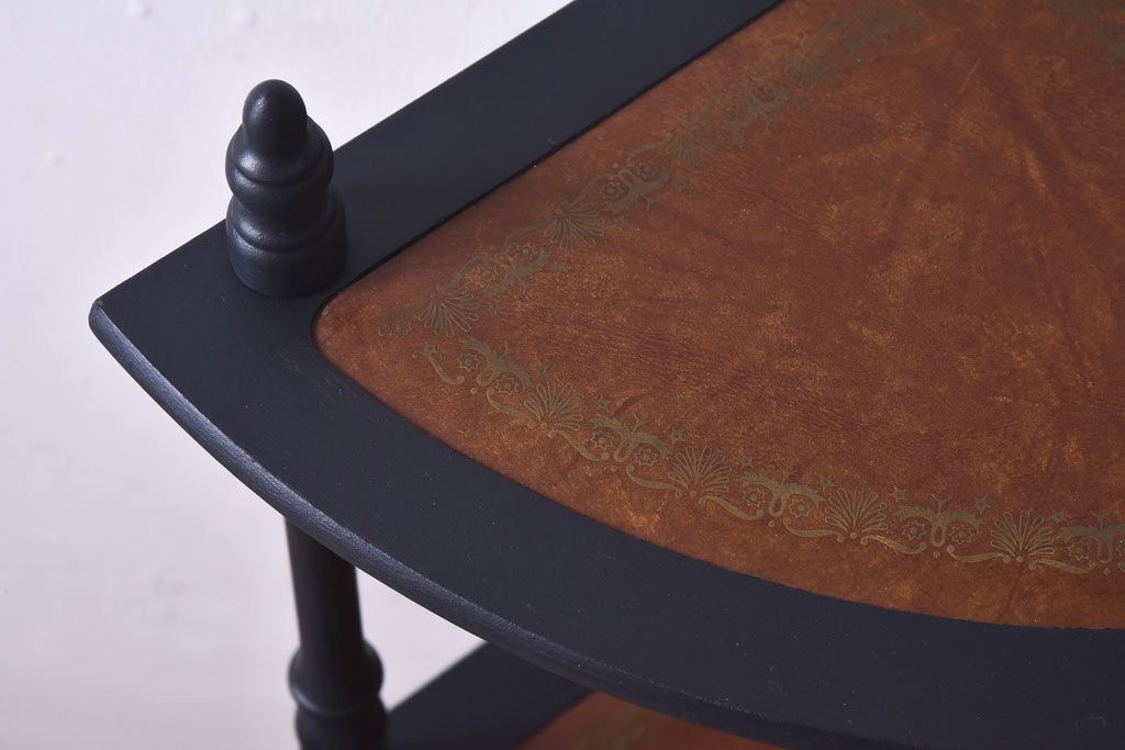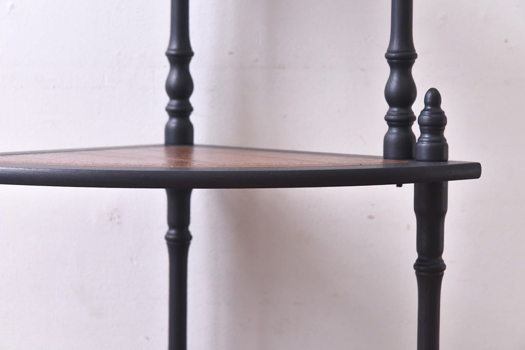アンティーク雑貨 ペイント家具 シックな雰囲気漂うレザートップのコーナーラック(飾り台、花台)