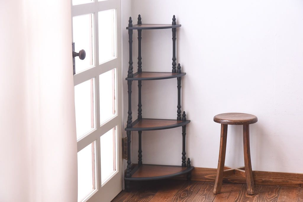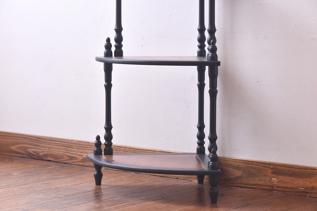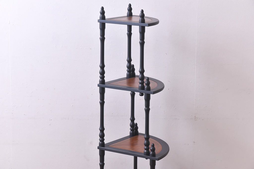ラフジュ工房> オープンラック・シェルフ > アンティーク雑貨 ペイント家具 シックな雰囲気漂うレザートップのコーナーラック(飾り台、花台)
