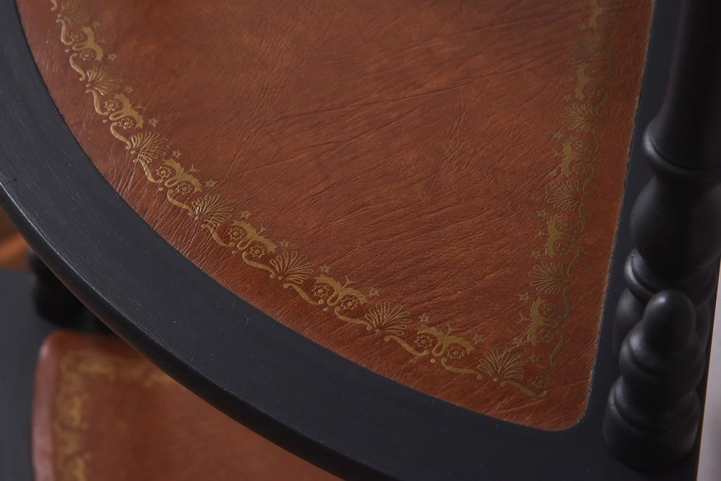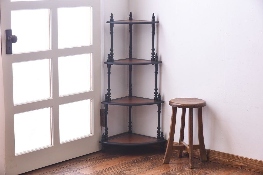 ラフジュ工房> 花台・飾り台 > アンティーク雑貨 ペイント家具 シックな雰囲気漂うレザートップのコーナーラック(飾り台、花台)