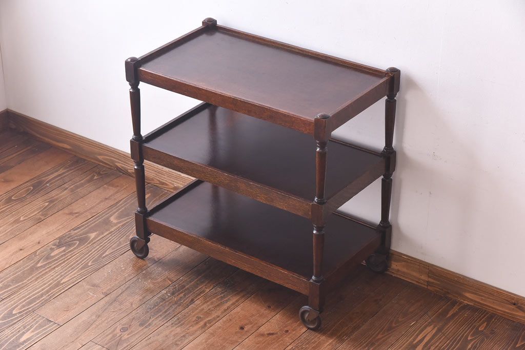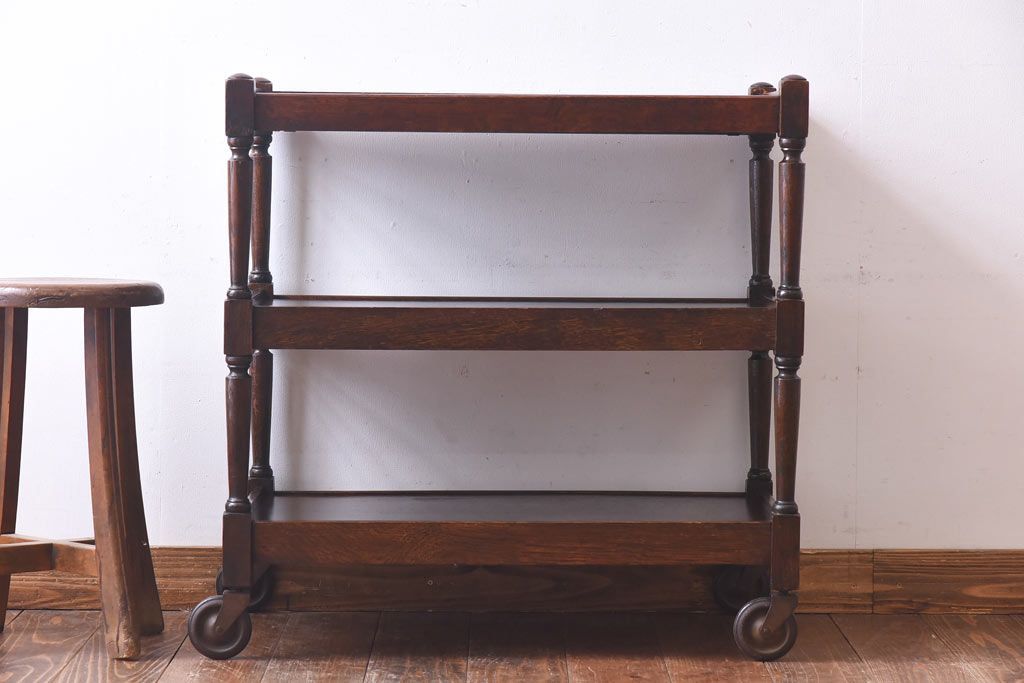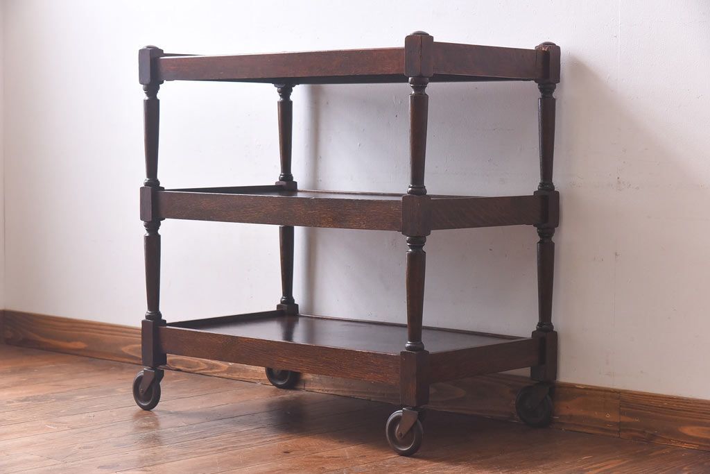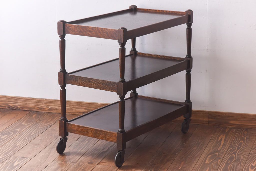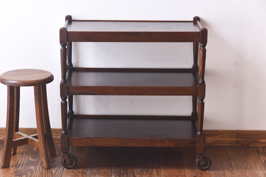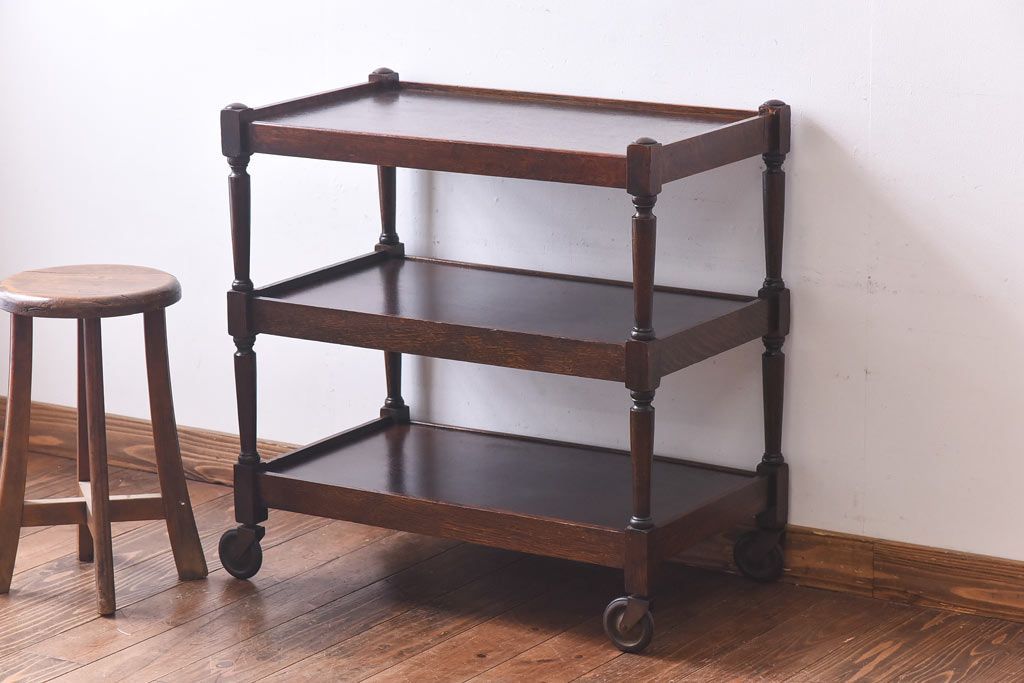 アンティーク雑貨 イギリスアンティーク オーク材 シンプルで使い勝手の良いトロリー(キッチンワゴン、サイドワゴン)