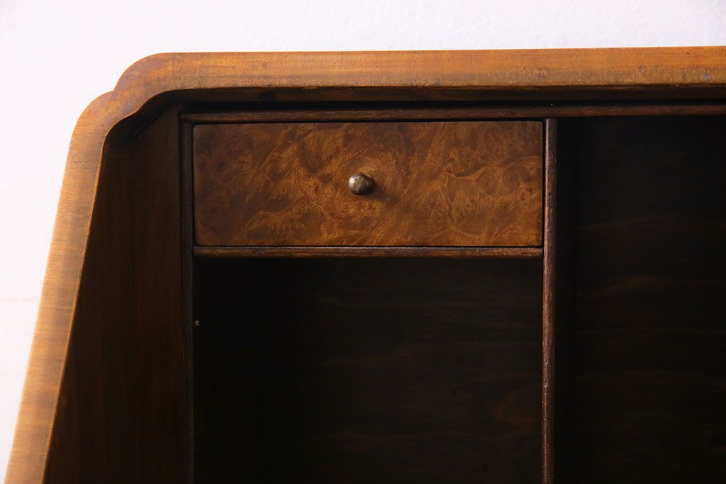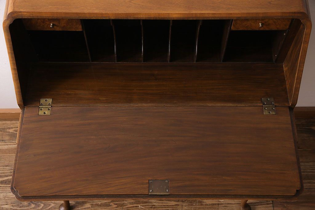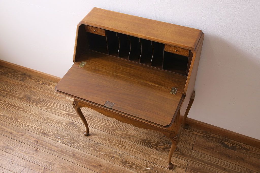 ラフジュ工房> デスク> ワークデスク > アンティーク家具 イギリスアンティーク ウォールナット バーズアイの杢目が高級感漂う猫脚ライティングビューロー(簿記机)