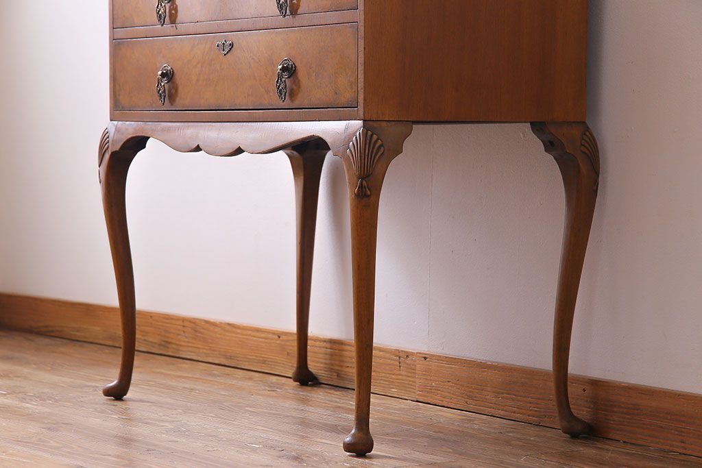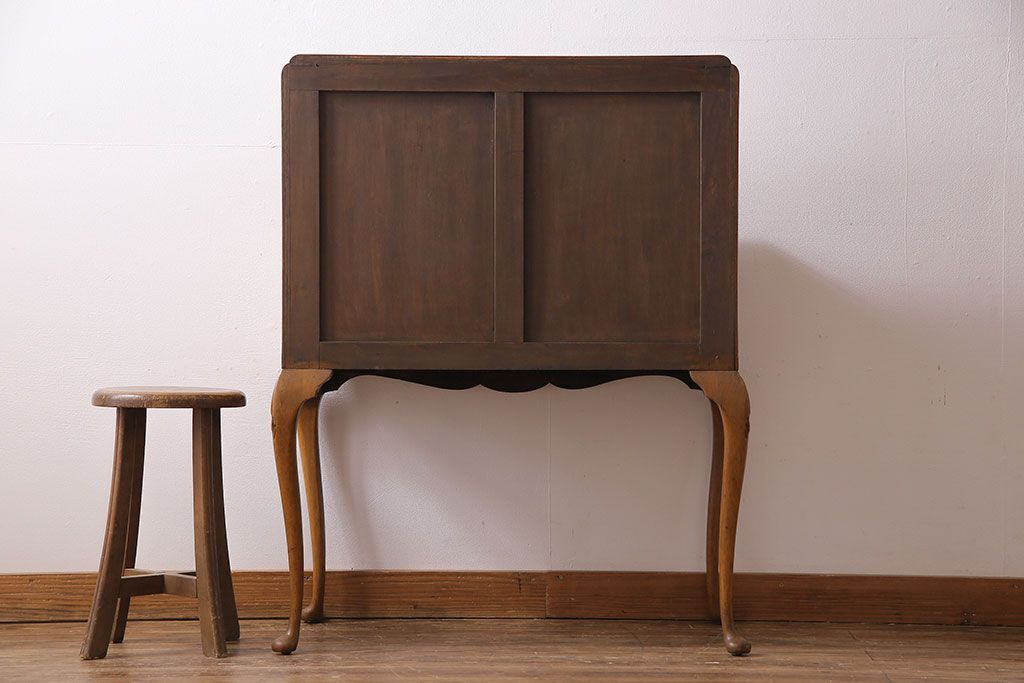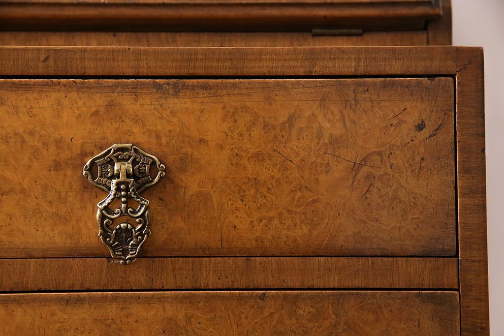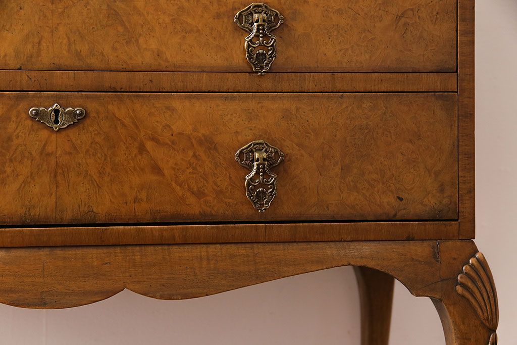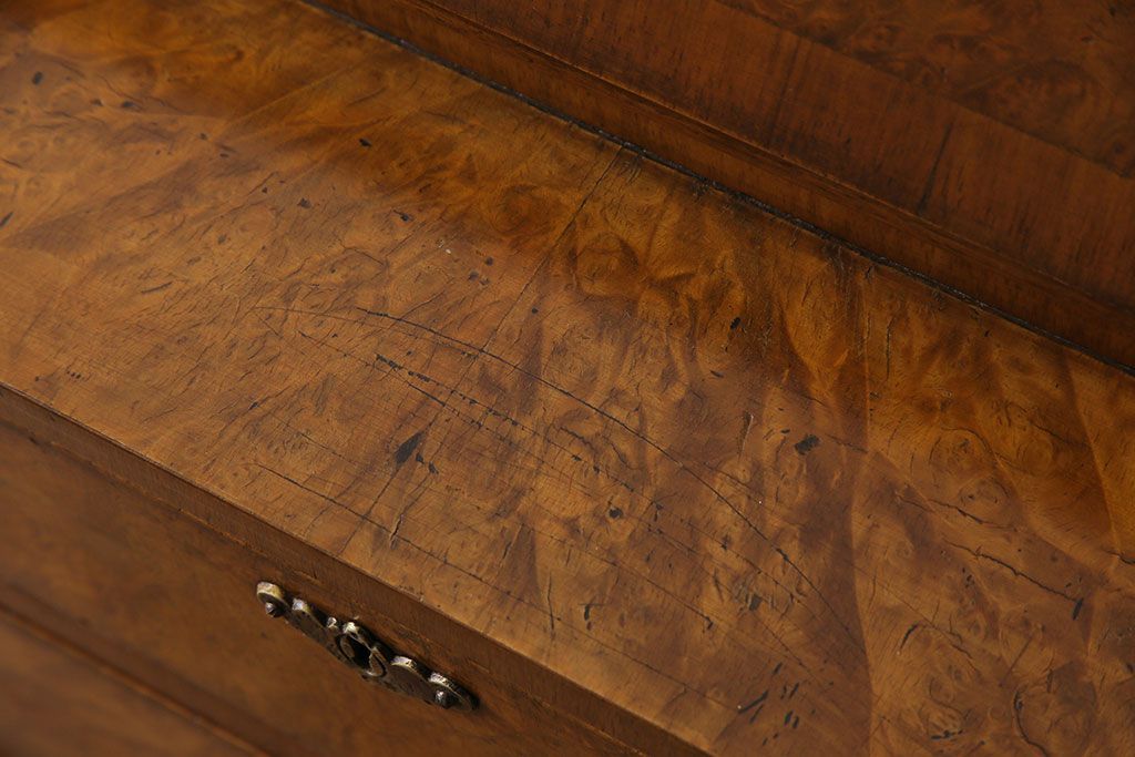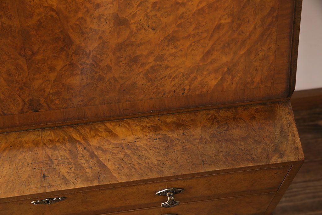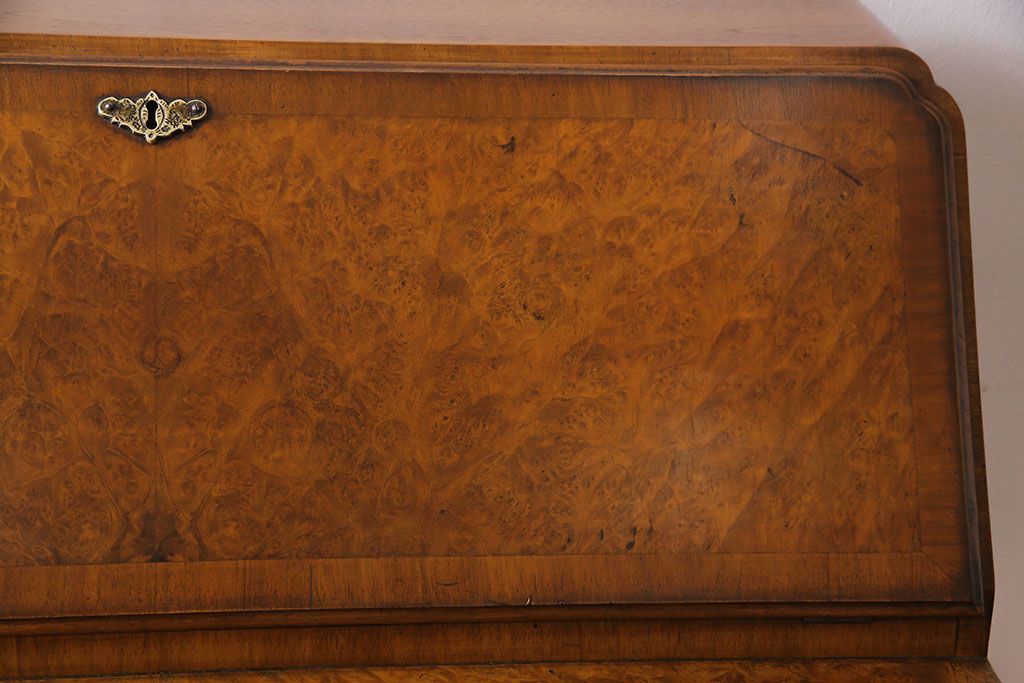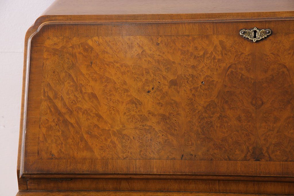 ラフジュ工房> デスク> ライティングビューロー・簿記机 > アンティーク家具 イギリスアンティーク ウォールナット バーズアイの杢目が高級感漂う猫脚ライティングビューロー(簿記机)