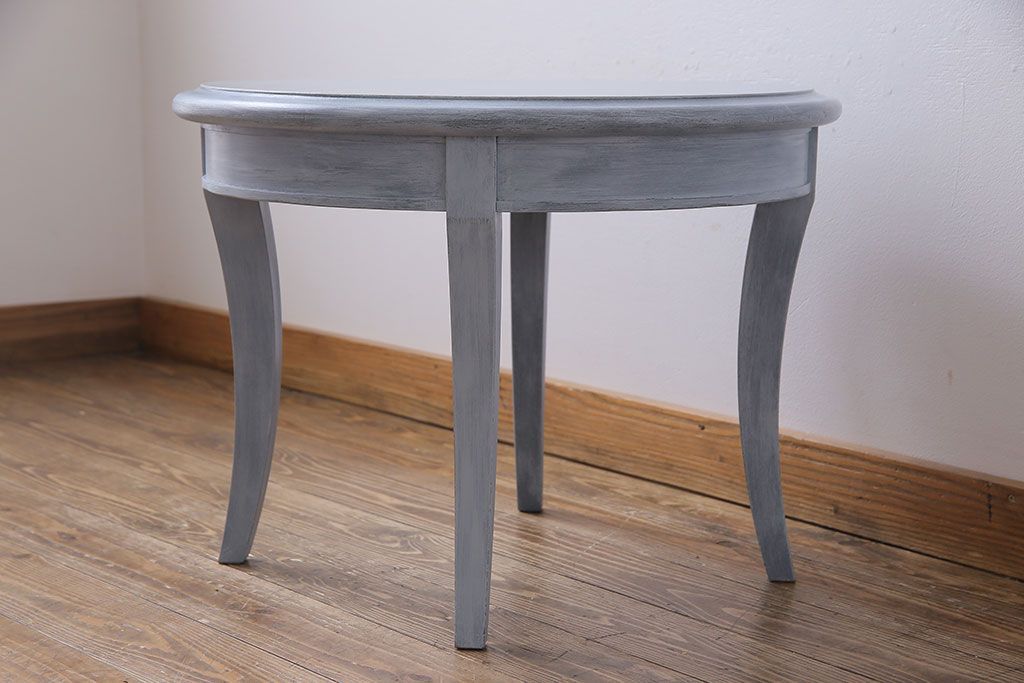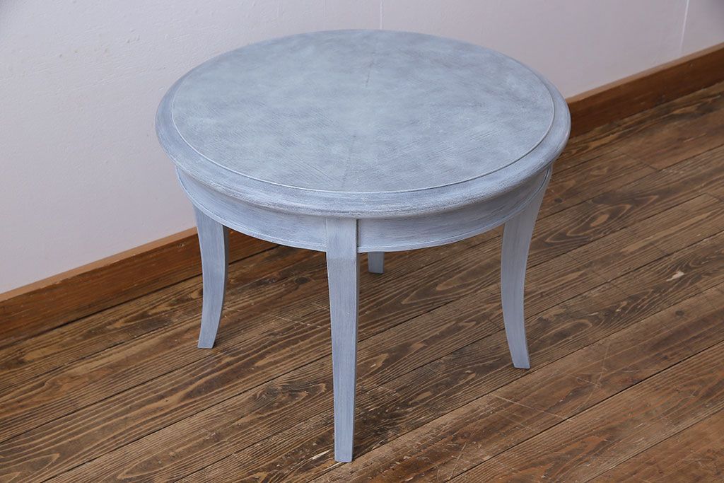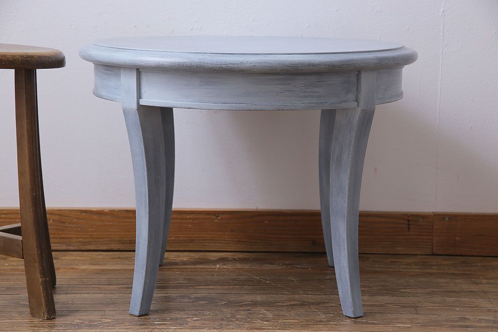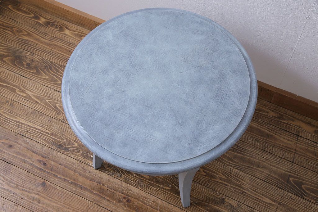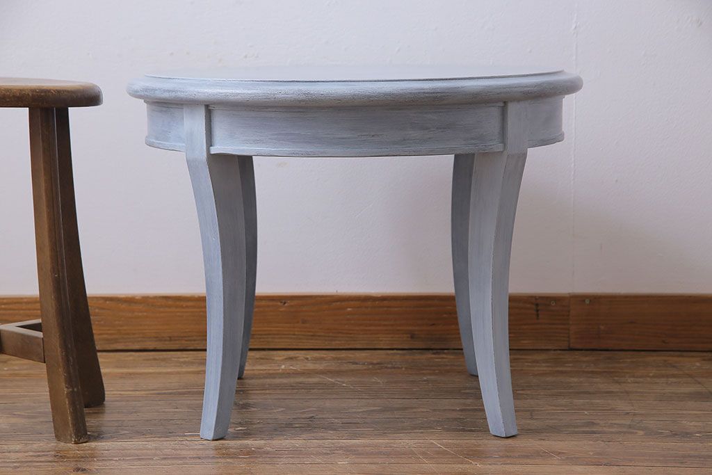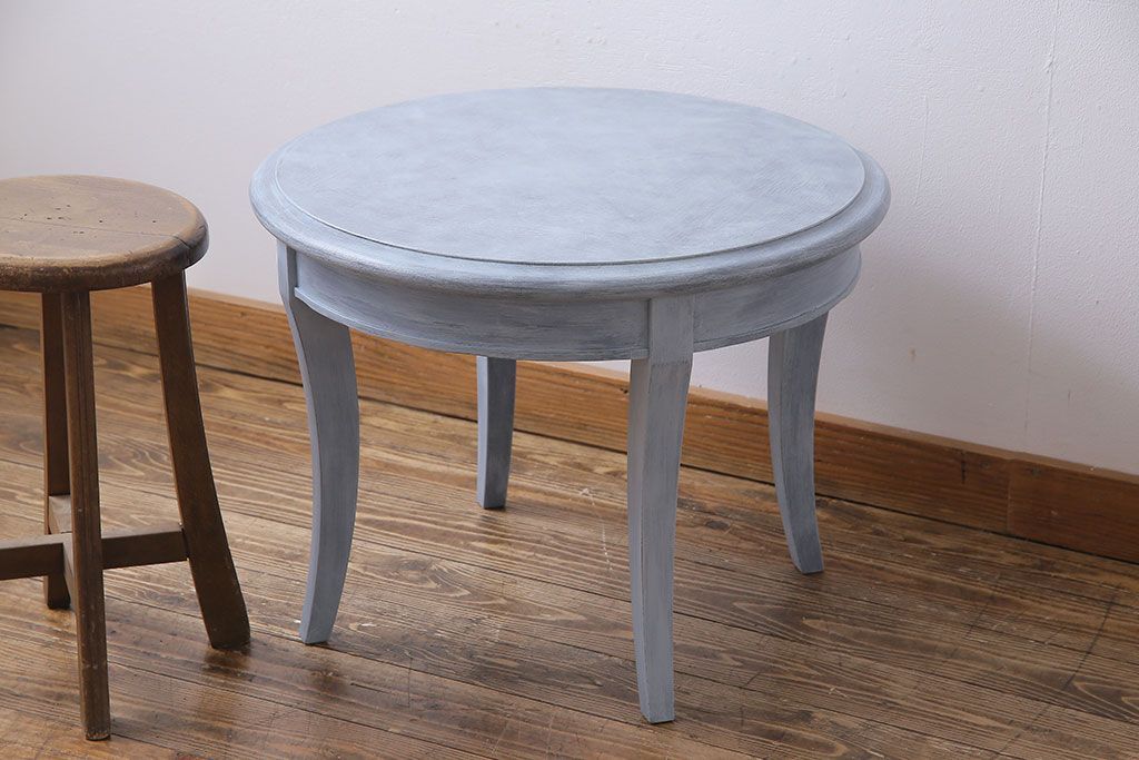 ラフジュ工房> テーブル > アンティーク雑貨 ペイント家具 天童木工 シンプルなラウンド型サイドテーブル(センターテーブル、コーヒーテーブル、花台)(1)
