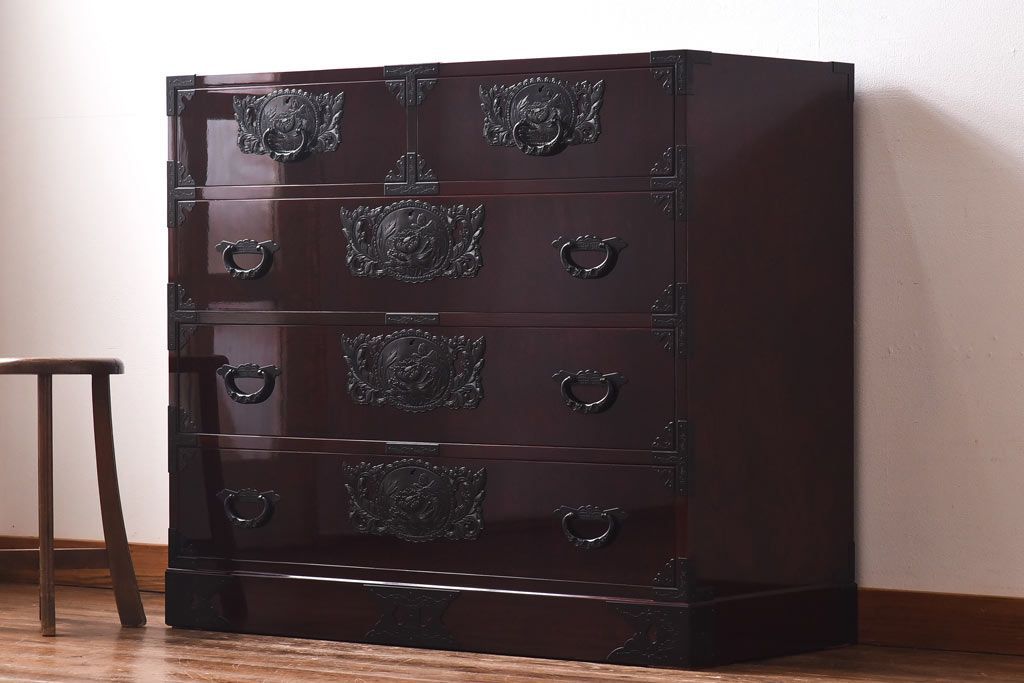 ラフジュ工房> 和箪笥 > 中古 仙台民芸箪笥(仙台箪笥) 欅産業 前面ケヤキ玉杢材 KB-3MD 三・五尺箪笥90(整理箪笥、衣装箪笥、引き出し)(定価約83万円)