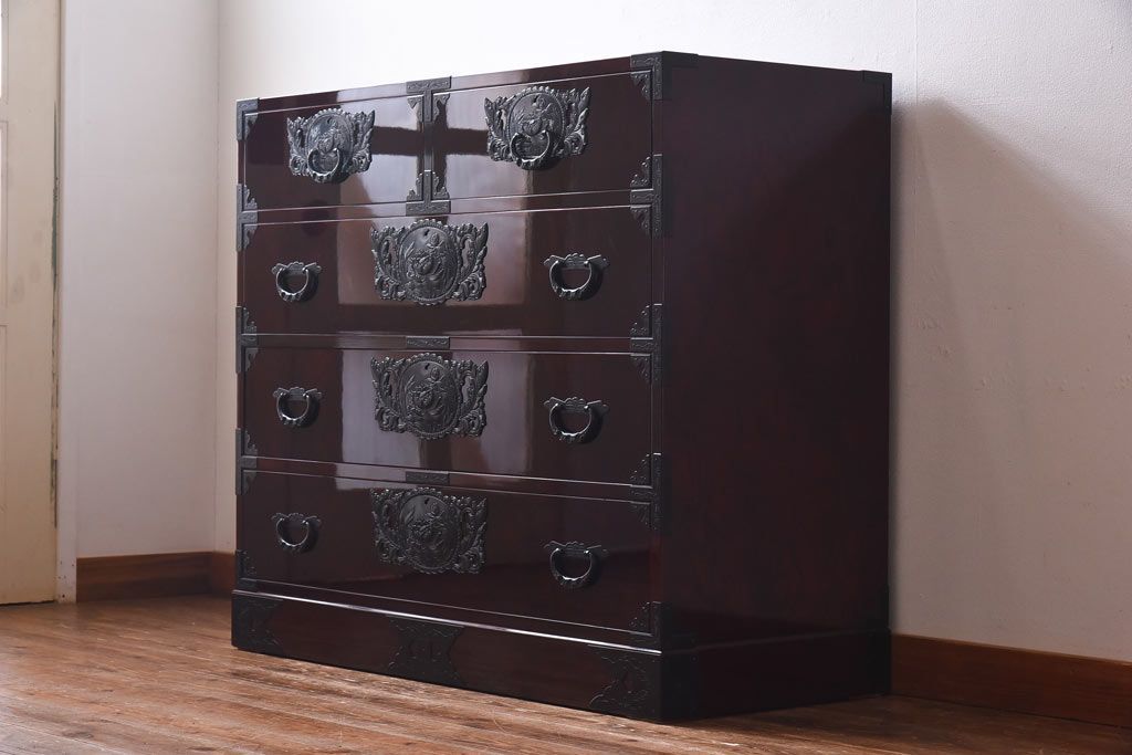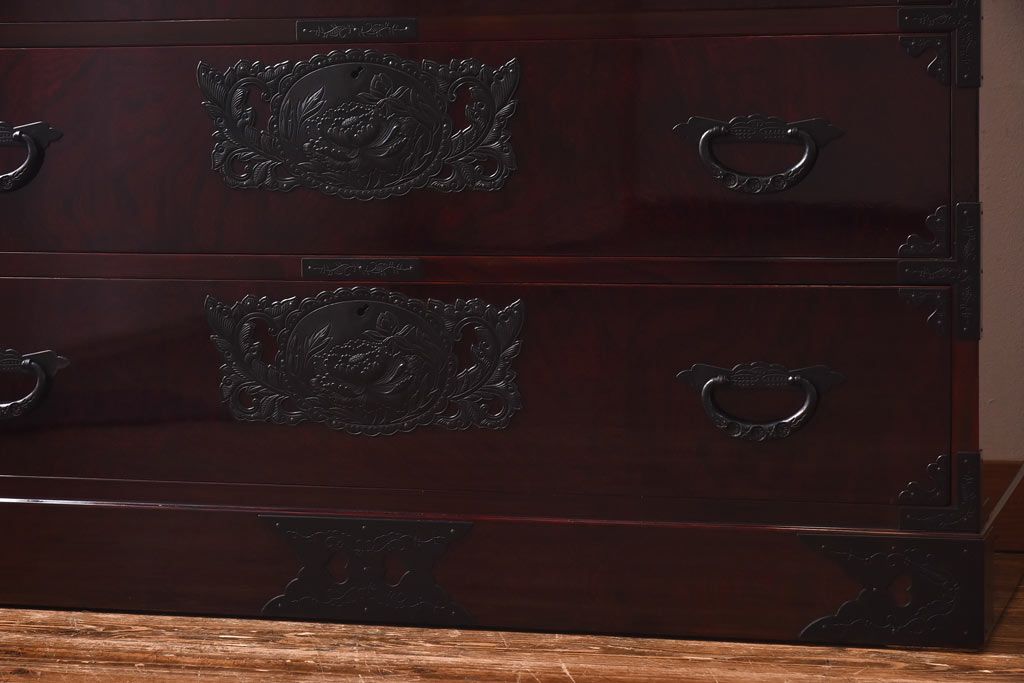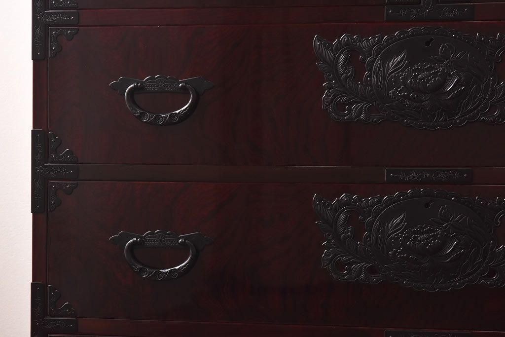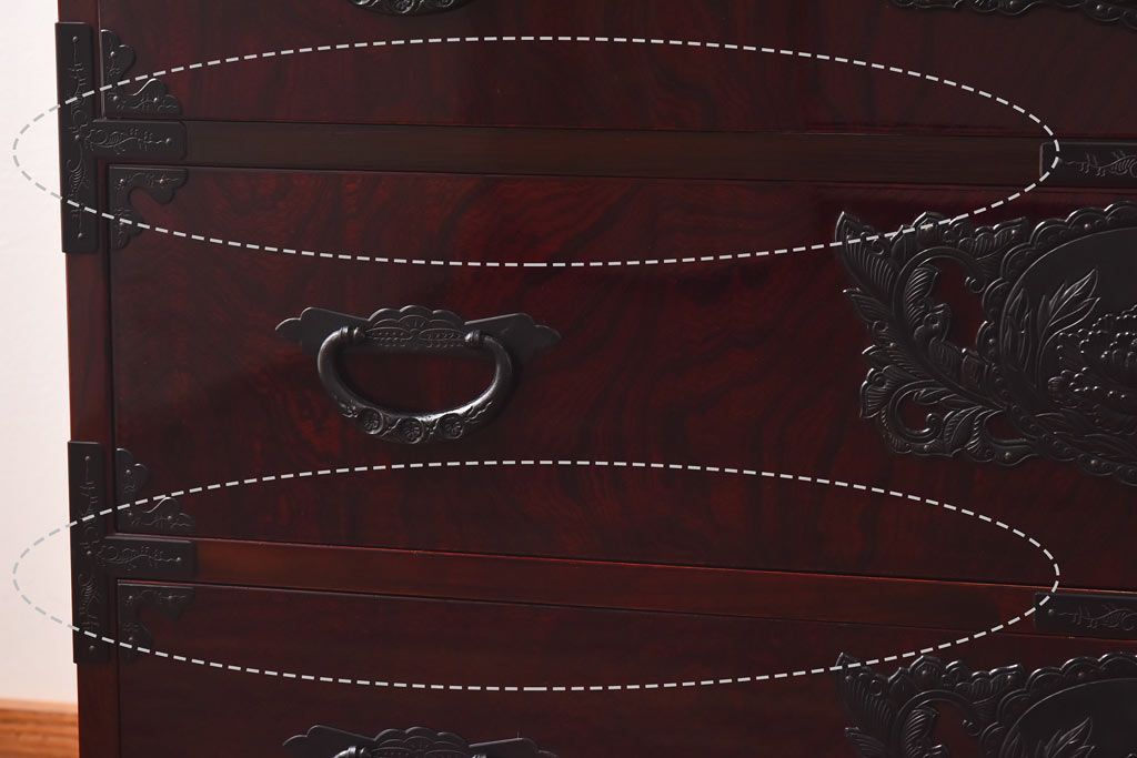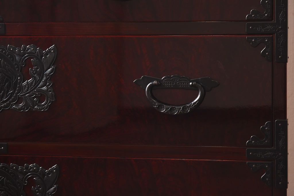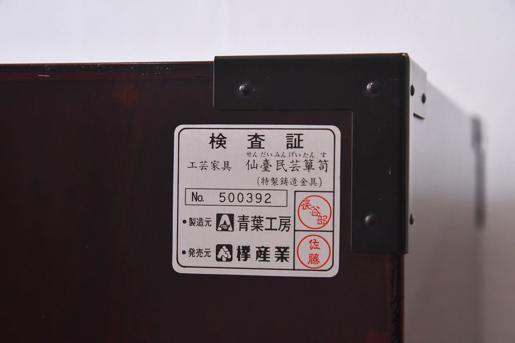 ラフジュ工房> 民芸家具 > 中古 仙台民芸箪笥(仙台箪笥) 欅産業 前面ケヤキ玉杢材 KB-3MD 三・五尺箪笥90(整理箪笥、衣装箪笥、引き出し)(定価約83万円)