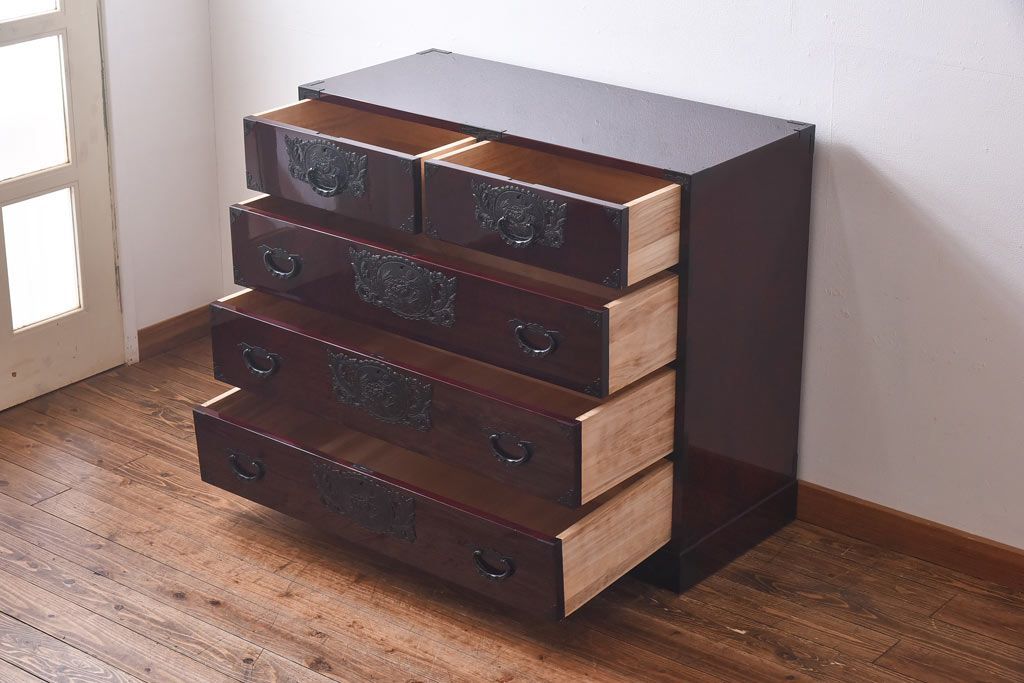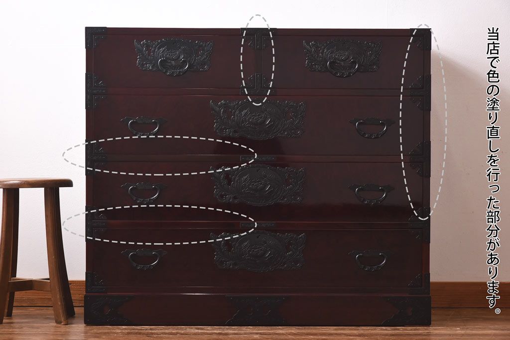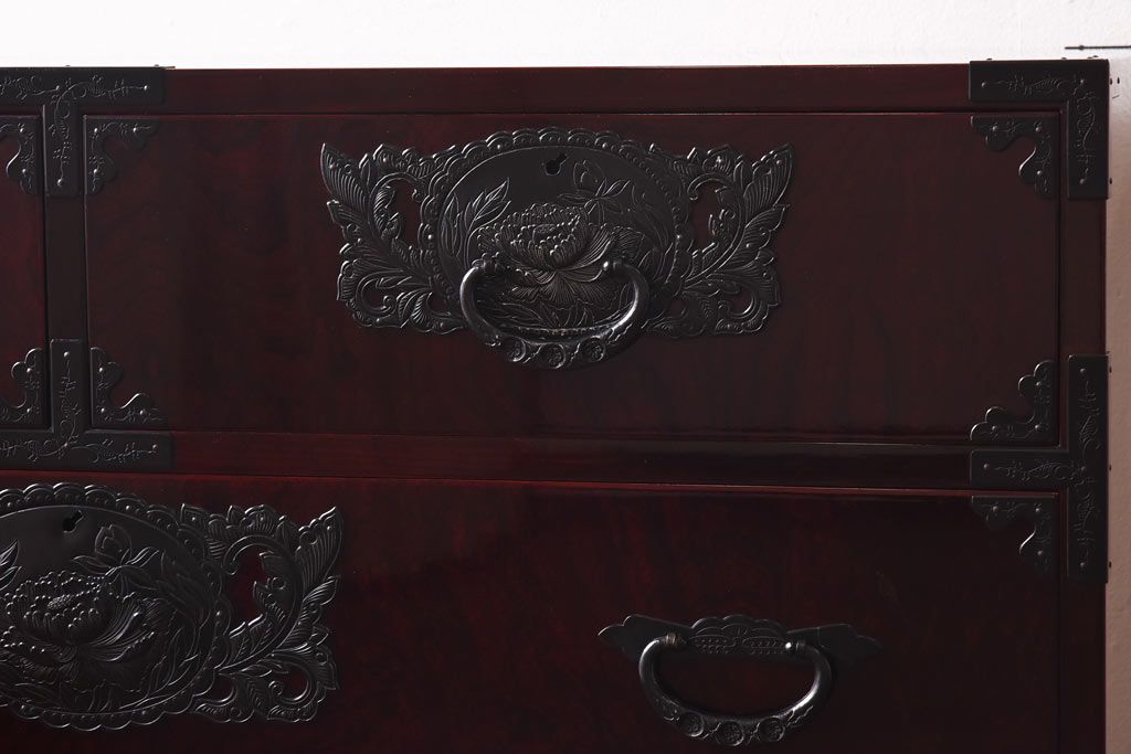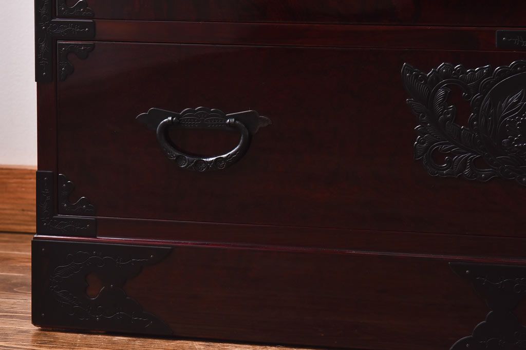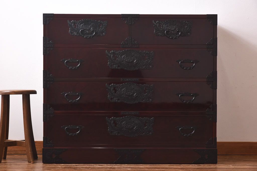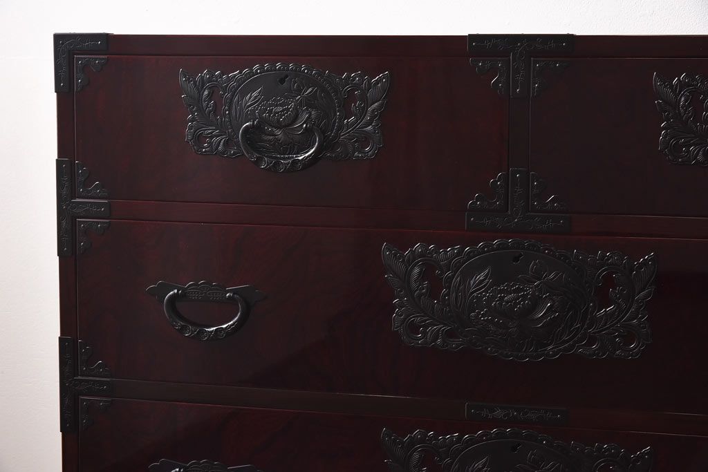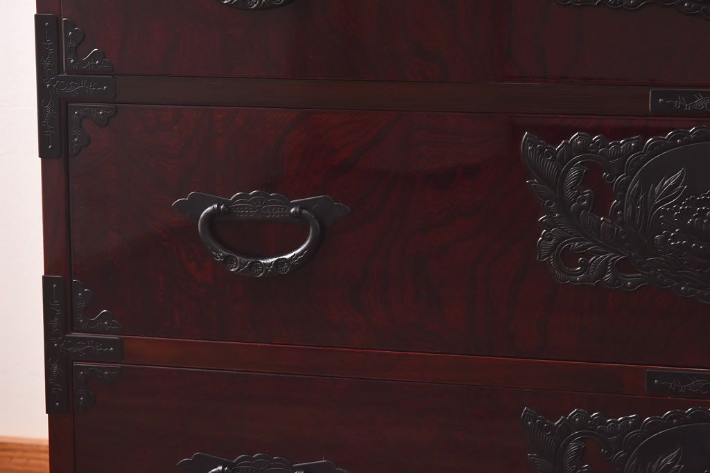 ラフジュ工房> 民芸家具 > 中古 仙台民芸箪笥(仙台箪笥) 欅産業 前面ケヤキ玉杢材 KB-3MD 三・五尺箪笥90(整理箪笥、衣装箪笥、引き出し)(定価約83万円)