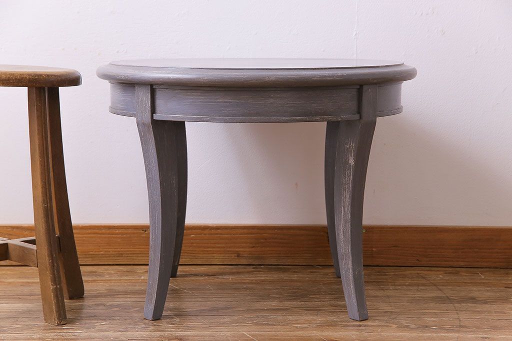 ラフジュ工房> テーブル> サイドテーブル > アンティーク雑貨 ペイント家具 天童木工 シンプルなラウンド型サイドテーブル(センターテーブル、コーヒーテーブル、花台)(3)