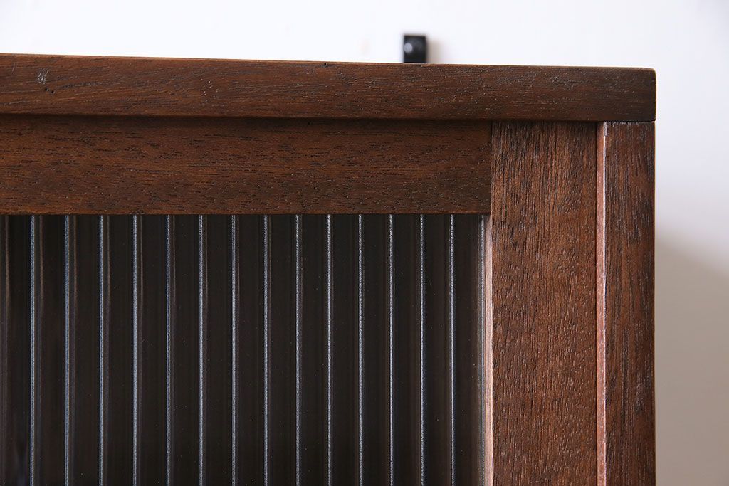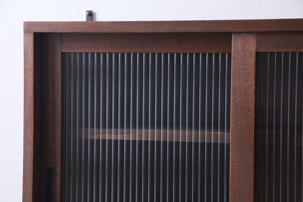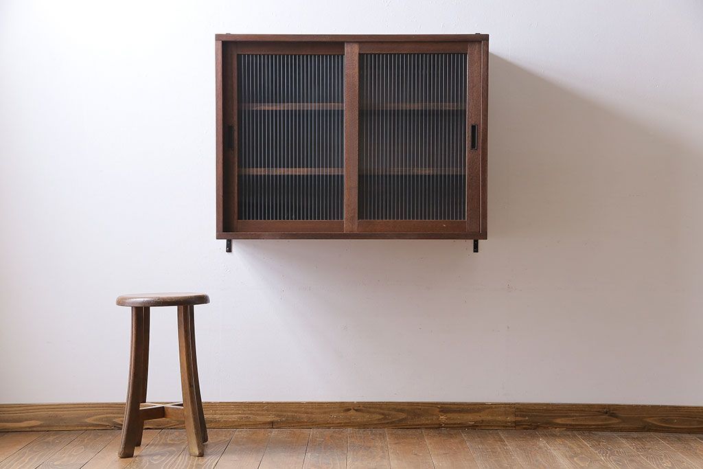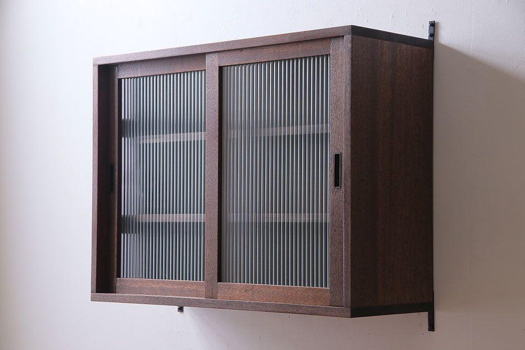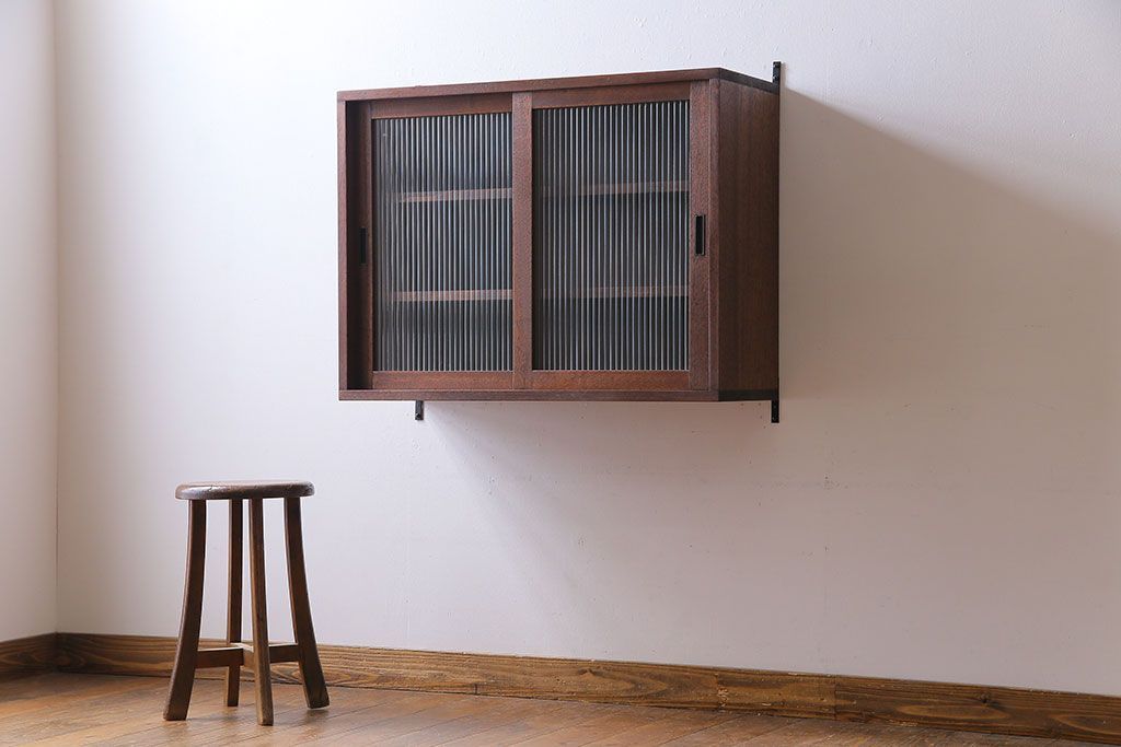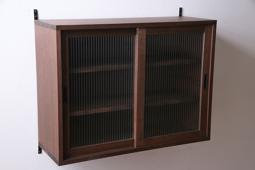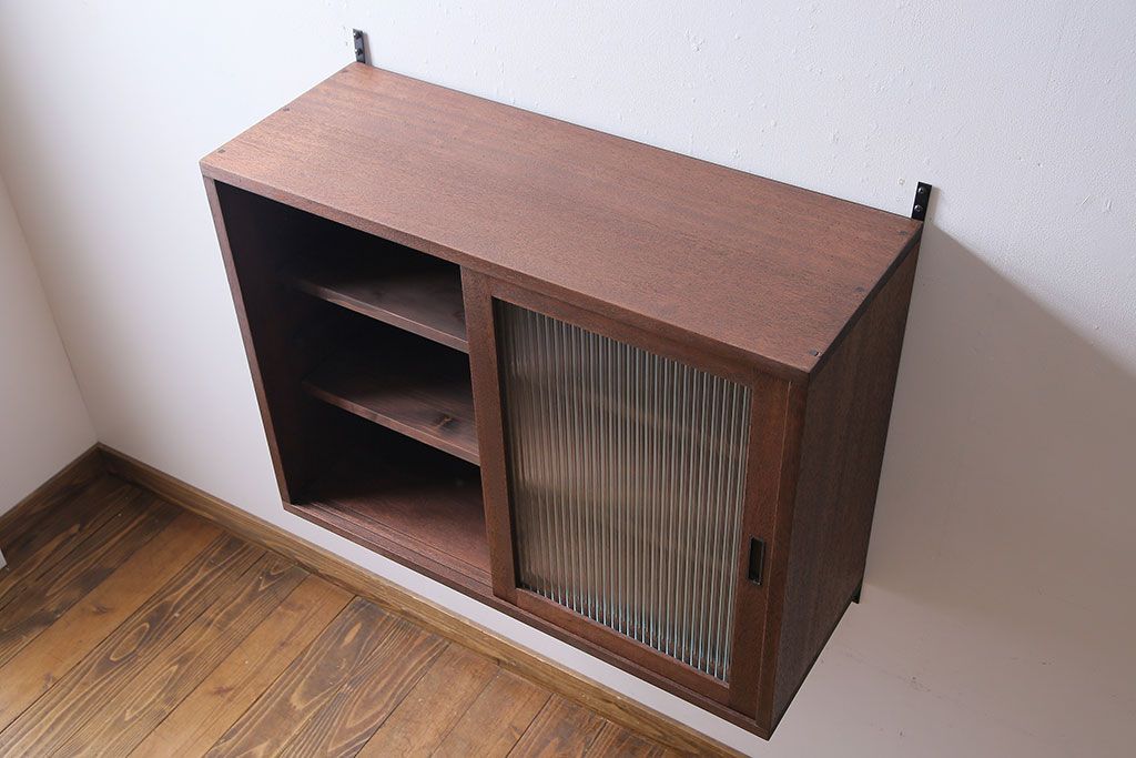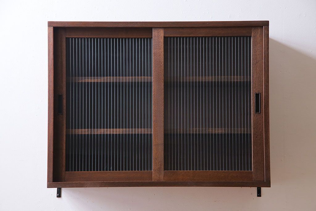 ラフジュ工房オリジナル モールガラス入り 古材を活かしたウォールシェルフ(ウォールキャビネット、壁掛け収納棚、戸棚)です。