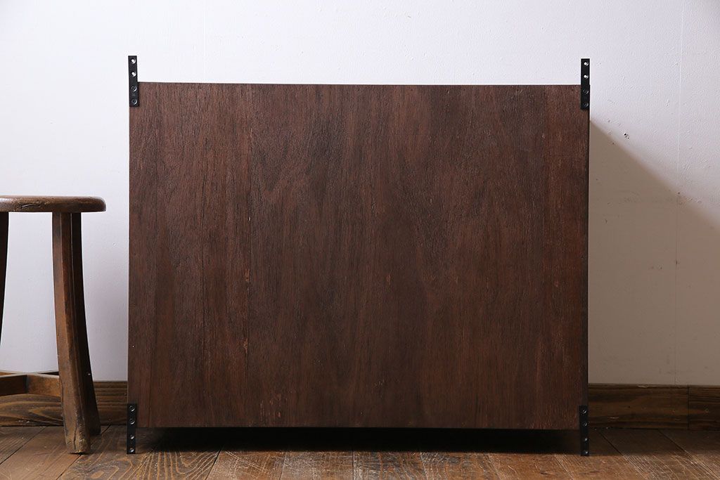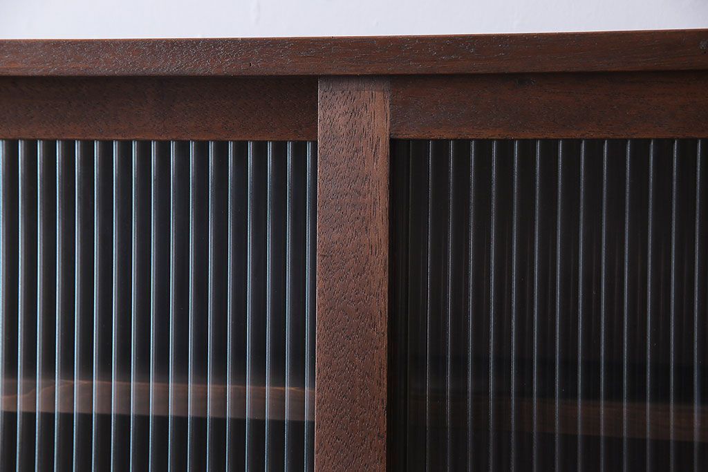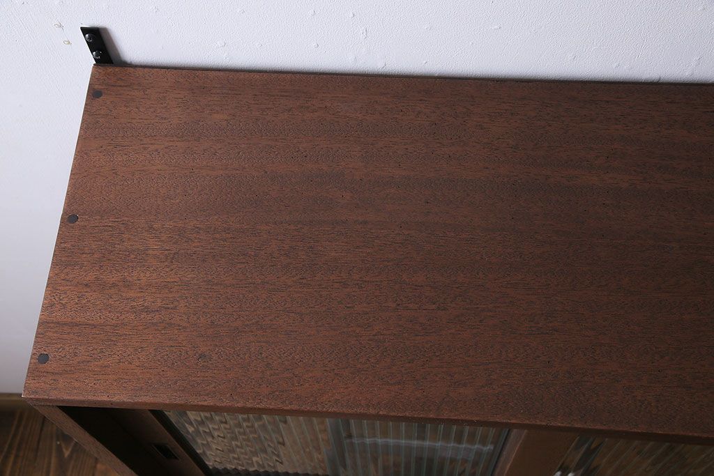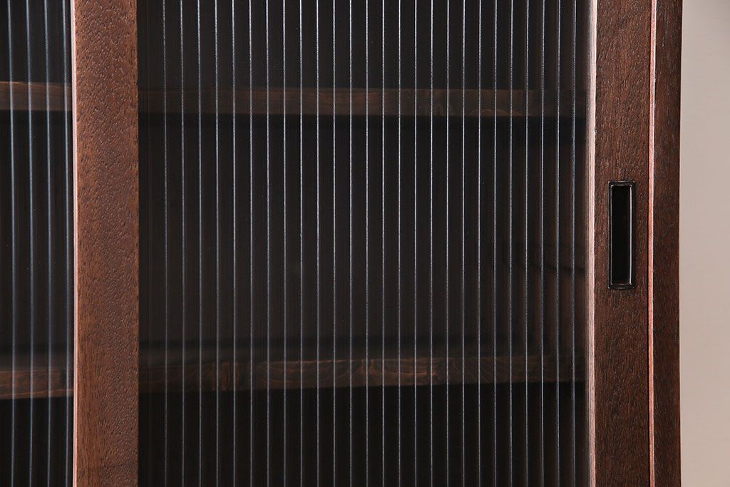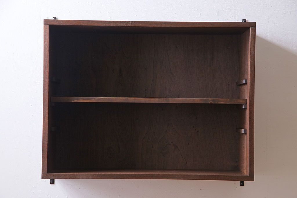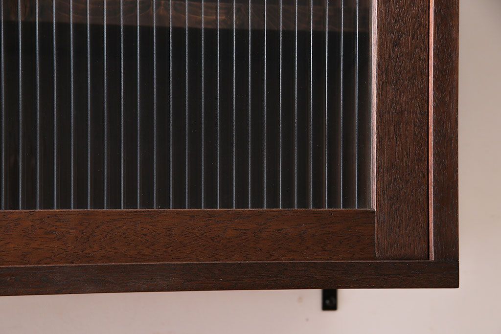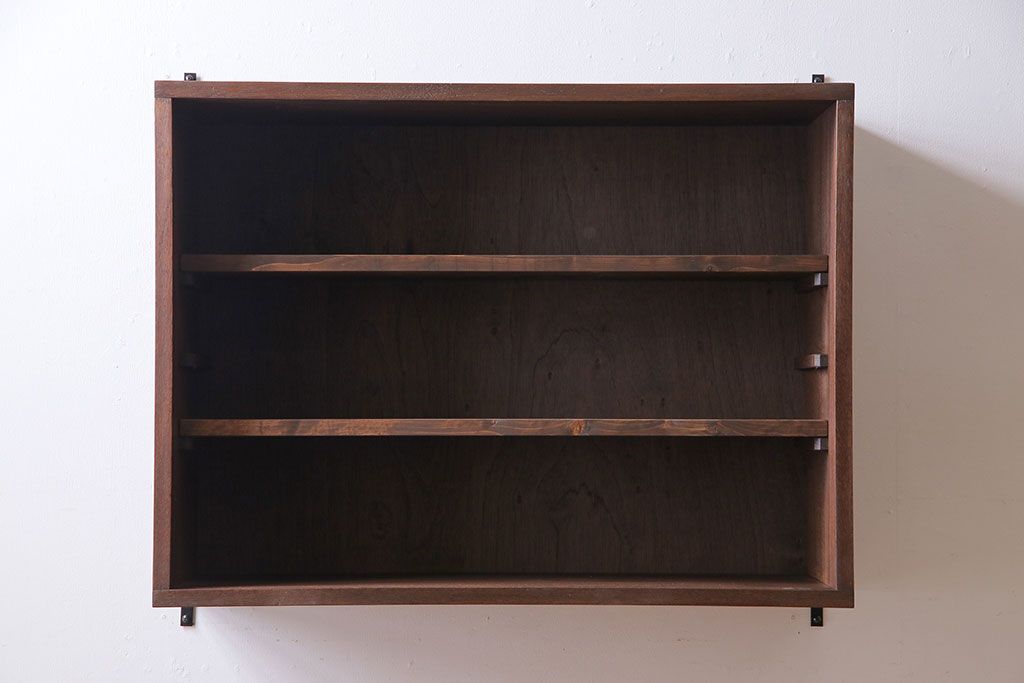 ラフジュ工房オリジナル モールガラス入り 古材を活かしたウォールシェルフ(ウォールキャビネット、壁掛け収納棚、戸棚)