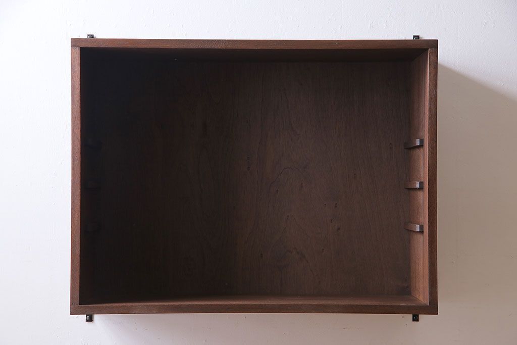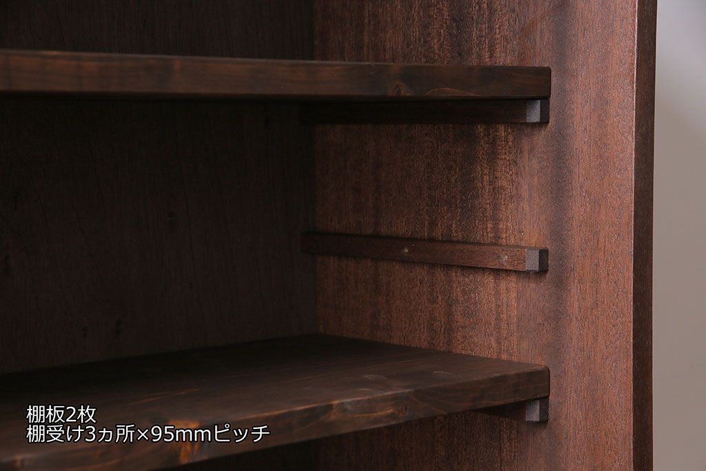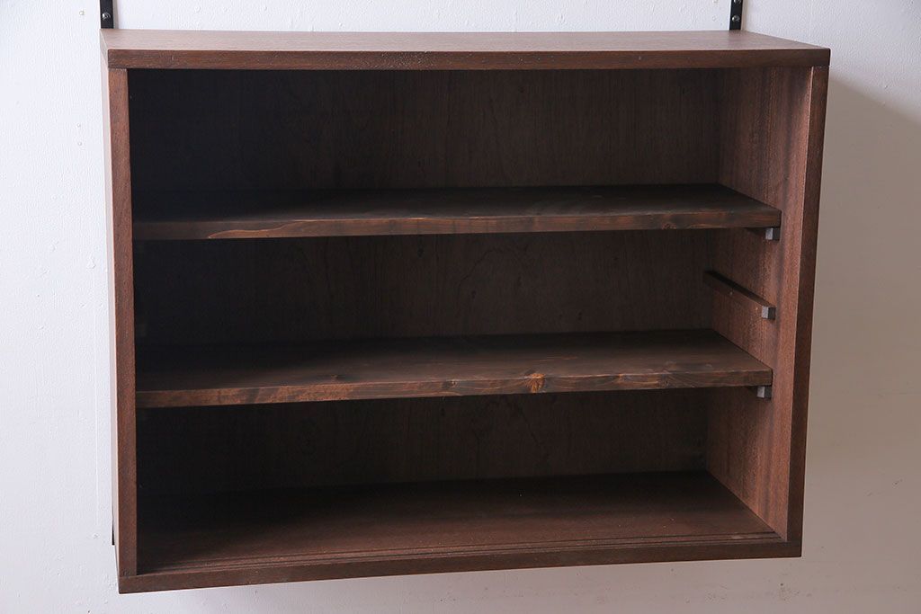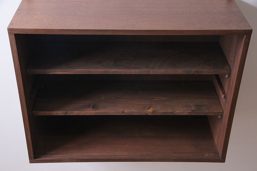 棚板は取り外しできます。95mm毎に調整できます。棚幅サイズのものが1枚の作りです。